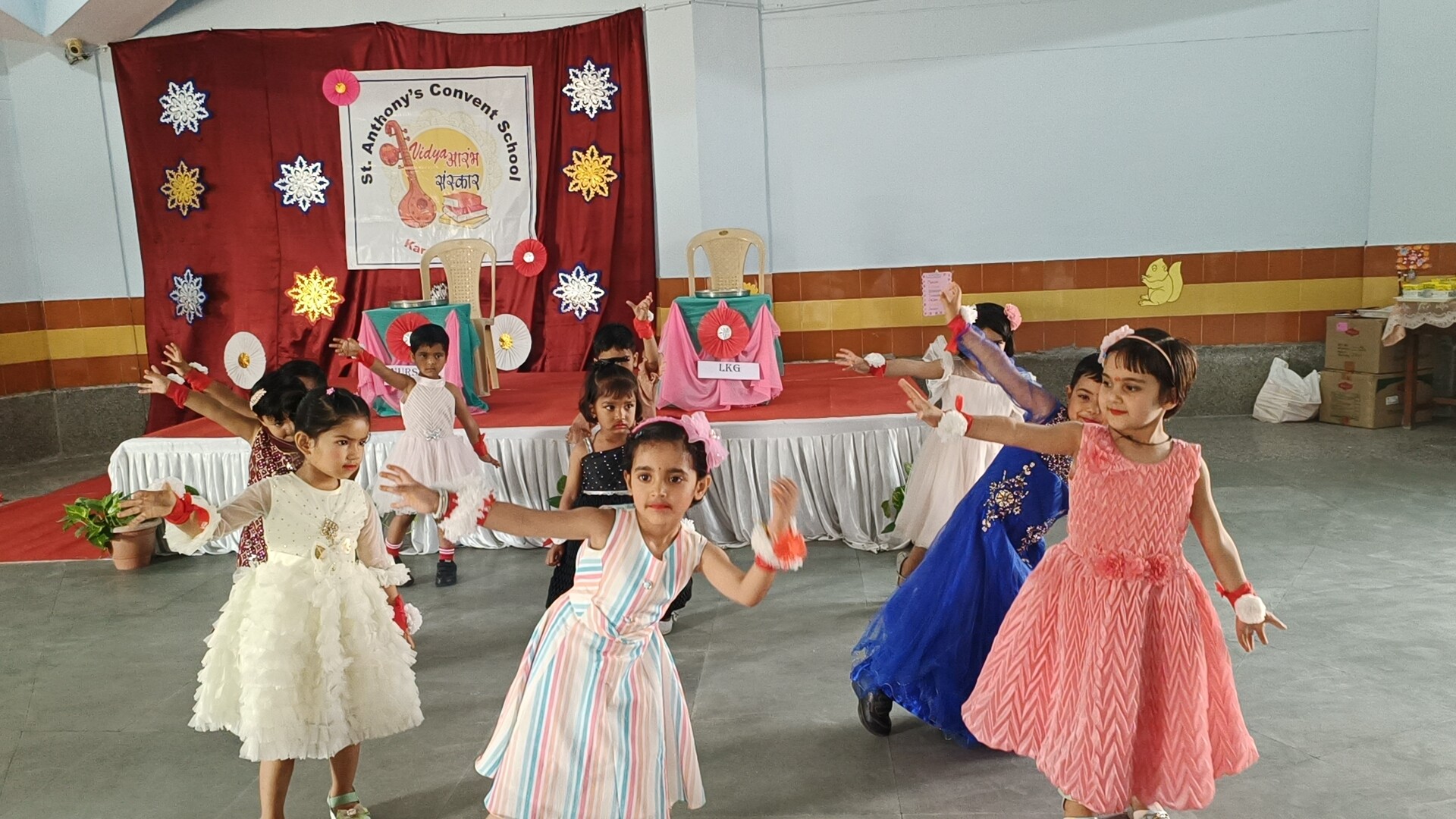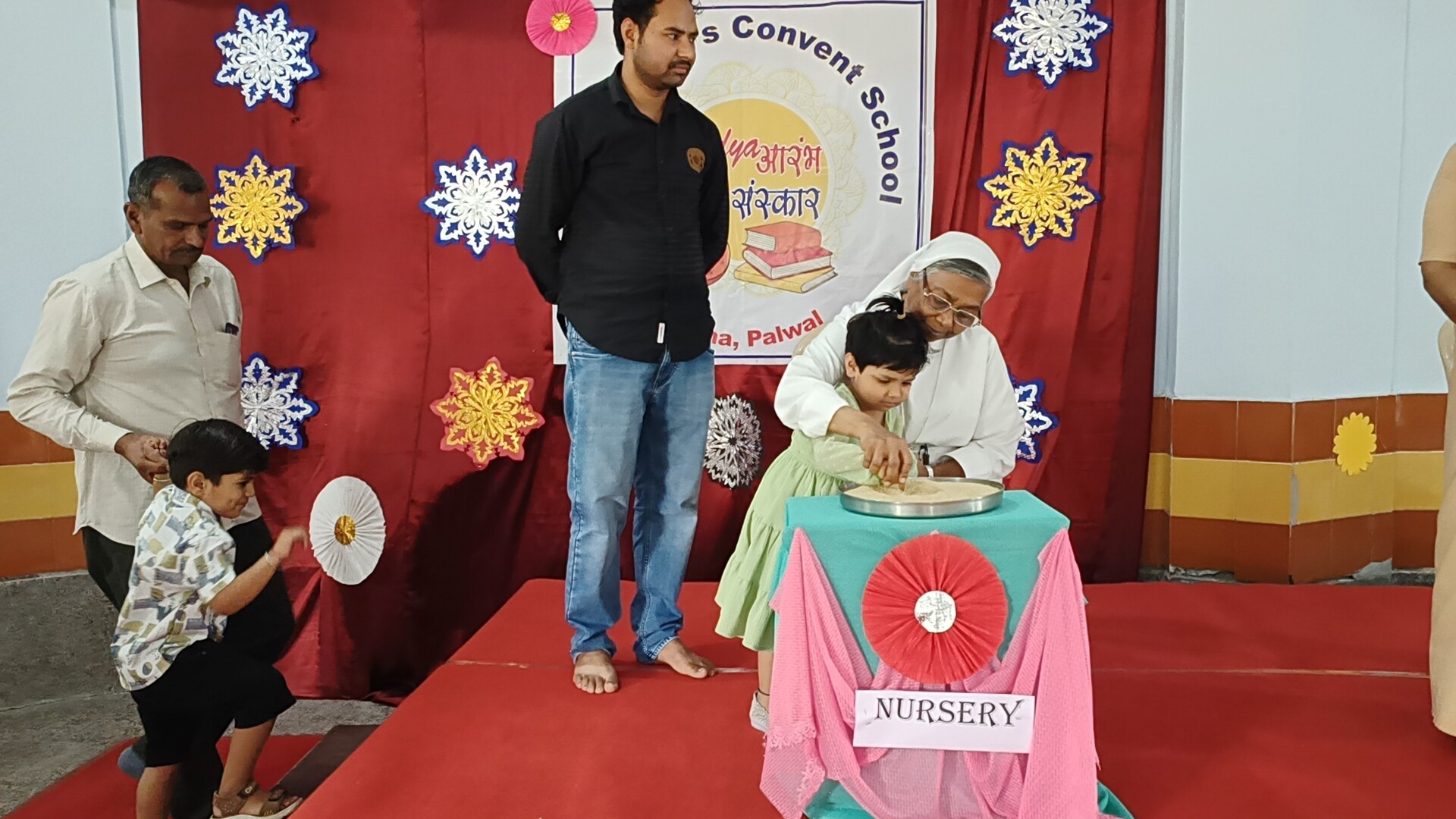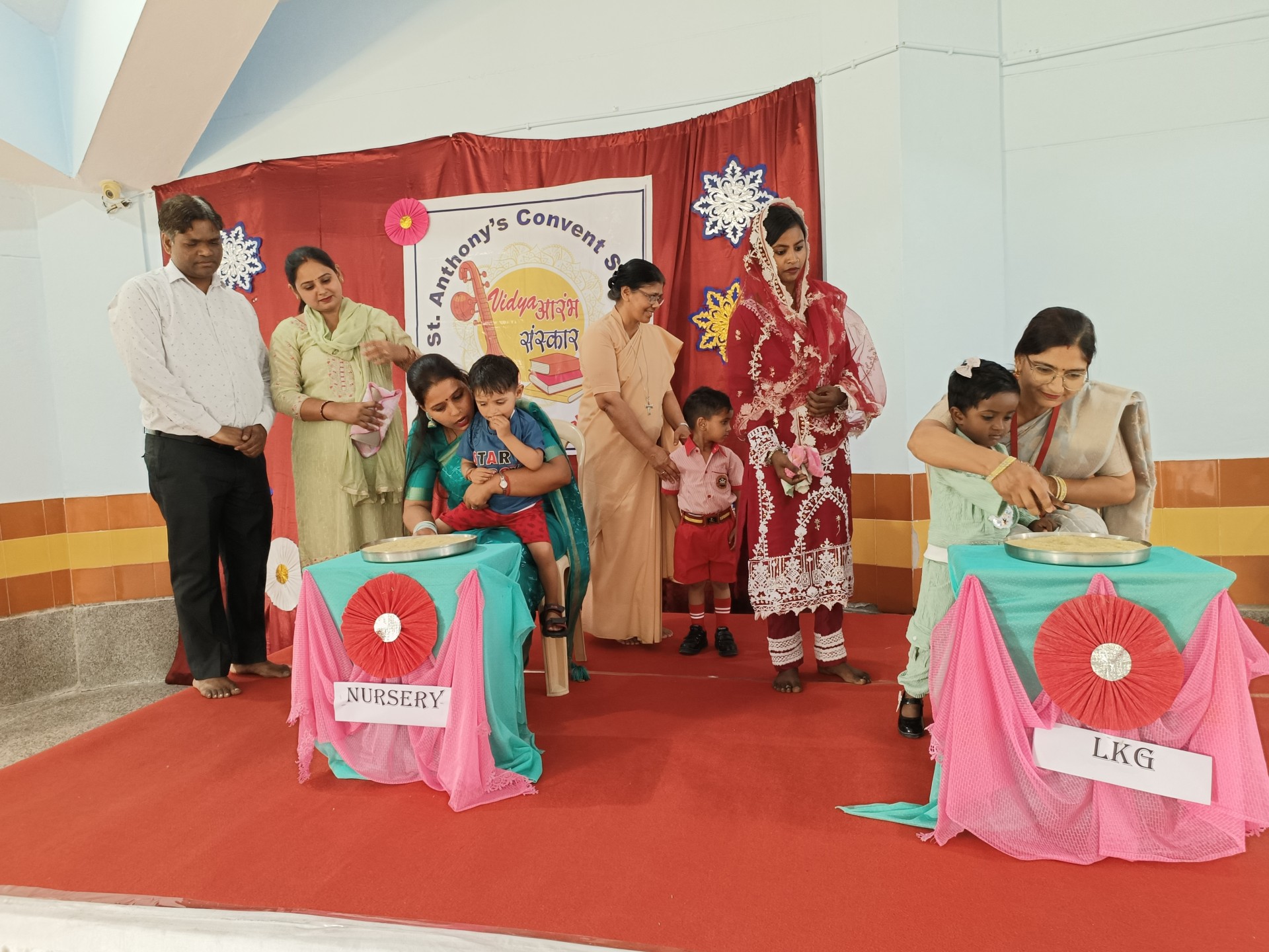 Description: The Vidyaarambh Ceremony was held on 7th April 2025 with great enthusiasm. The event began with a ribbon cutting followed by a traditional welcome with Tilak and band. A brief introduction was given leading to the lighting of the lamp and prayer reading from the Holy Book. Class-1 girls presented a melodious prayer song and an introduction about CFMSS and Mother Seraphina was shared. Energetic dance performances by UKG and Class-1 students added joy to the event. Information about the significance of Vidyaarambh was explained followed by teachers sharing rules and guidelines for parents. The highlight of the day was the Vidyaarambh ceremony where children were guided to write their first letters. The program concluded with a vote of thanks and the National Anthem. The ceremony was a beautiful blend of tradition culture and the joy oflearning.