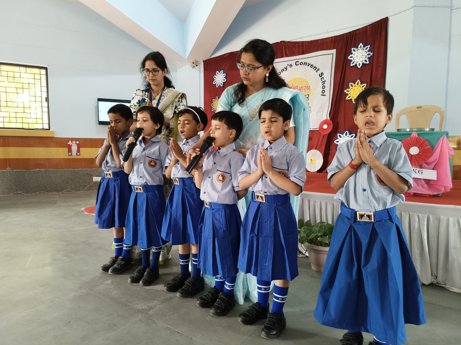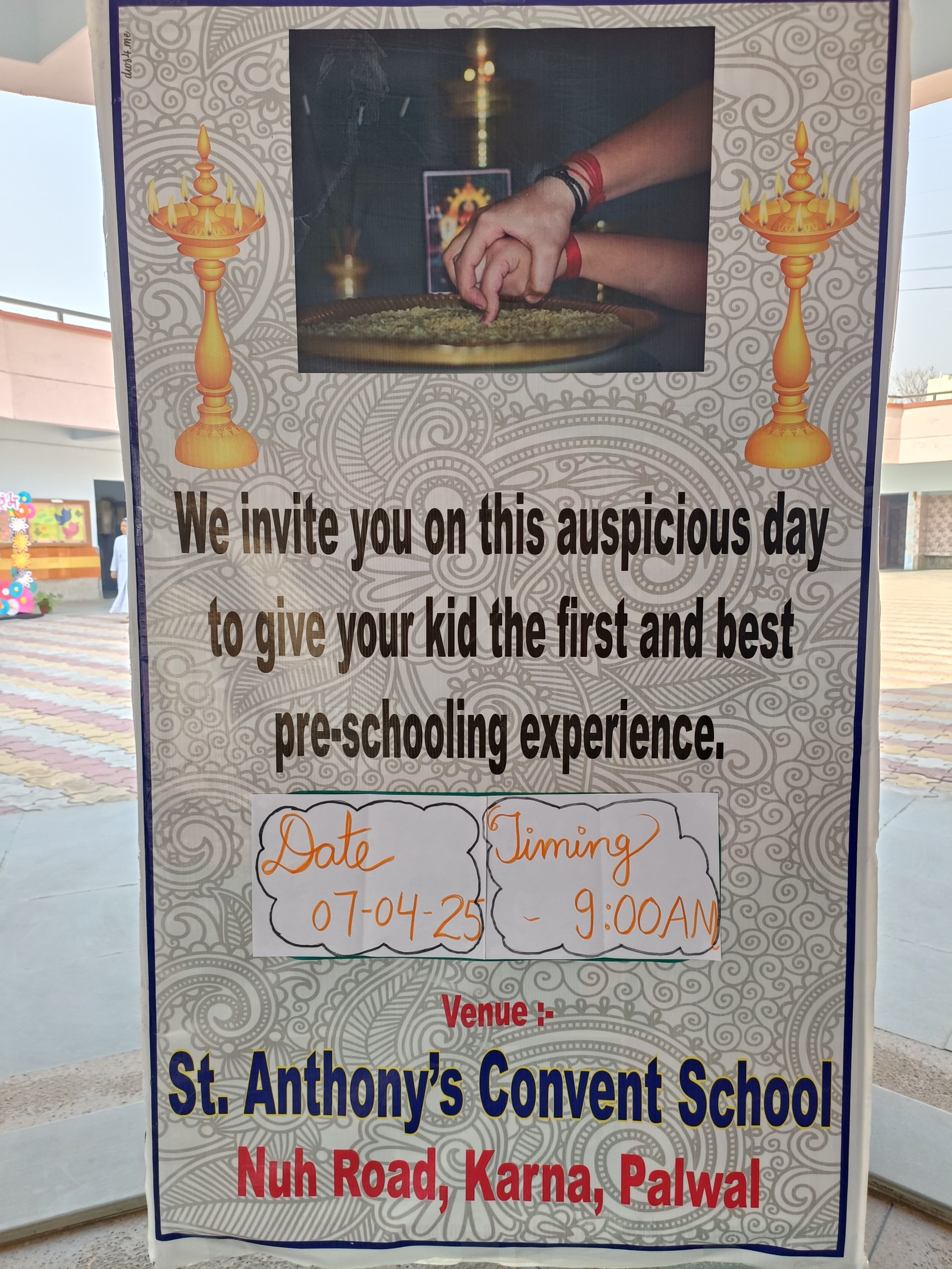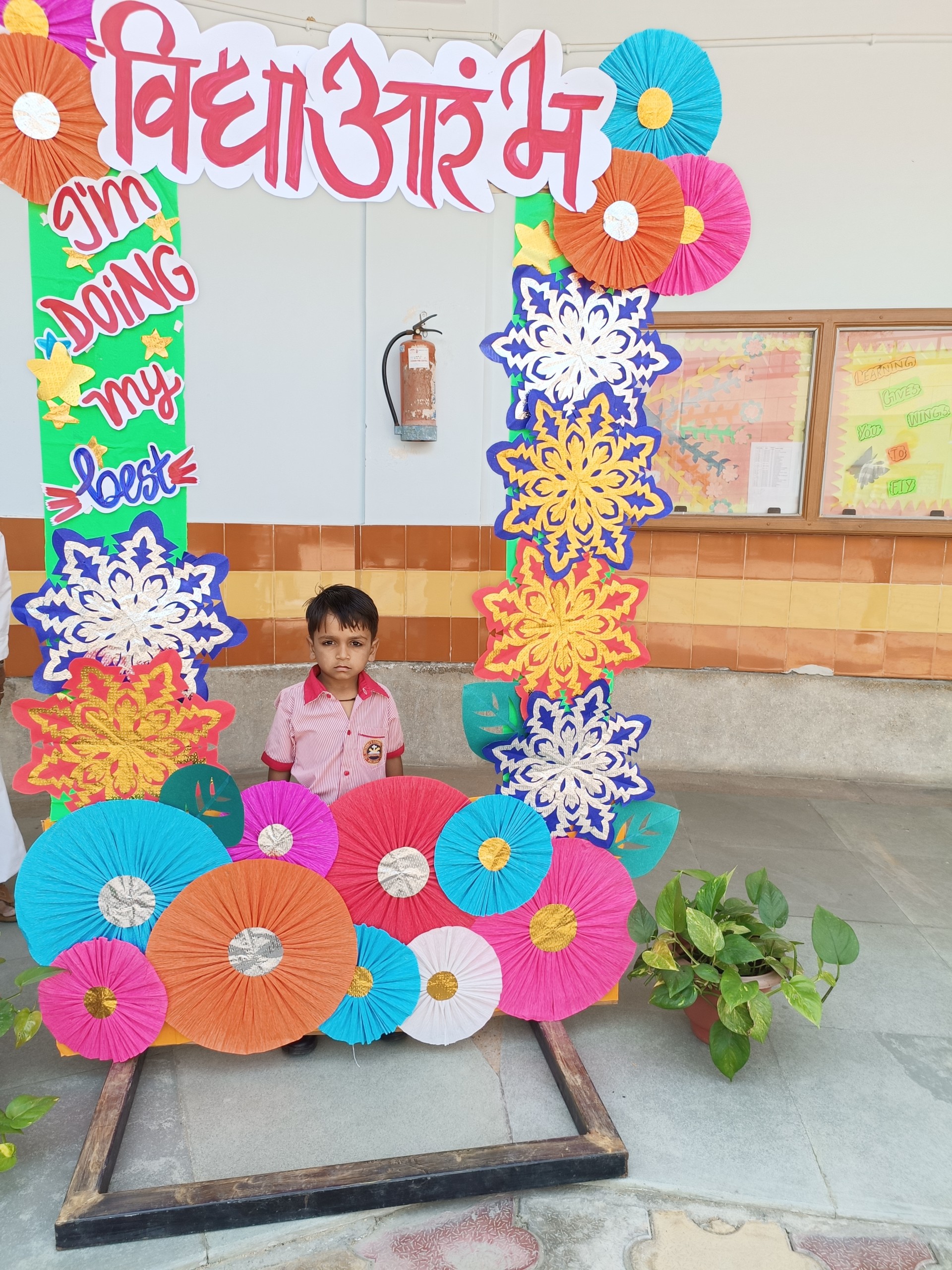 Description: The Vidyaarambh Ceremony was held on 7th April 2025 with great enthusiasm. The event began with a ribbon cutting followed by a traditional welcome with Tilak and band. A brief introduction was given leading to the lighting of the lamp and prayer reading from the Holy Book. Class-1 girls presented a melodious prayer song and an introduction about CFMSS and Mother Seraphina was shared. Energetic dance performances by UKG and Class-1 students added joy to the event. Information about the significance of Vidyaarambh was explained followed by teachers sharing rules and guidelines for parents. The highlight of the day was the Vidyaarambh ceremony where children were guided to write their first letters. The program concluded with a vote of thanks and the National Anthem. The ceremony was a beautiful blend of tradition culture and the joy oflearning.