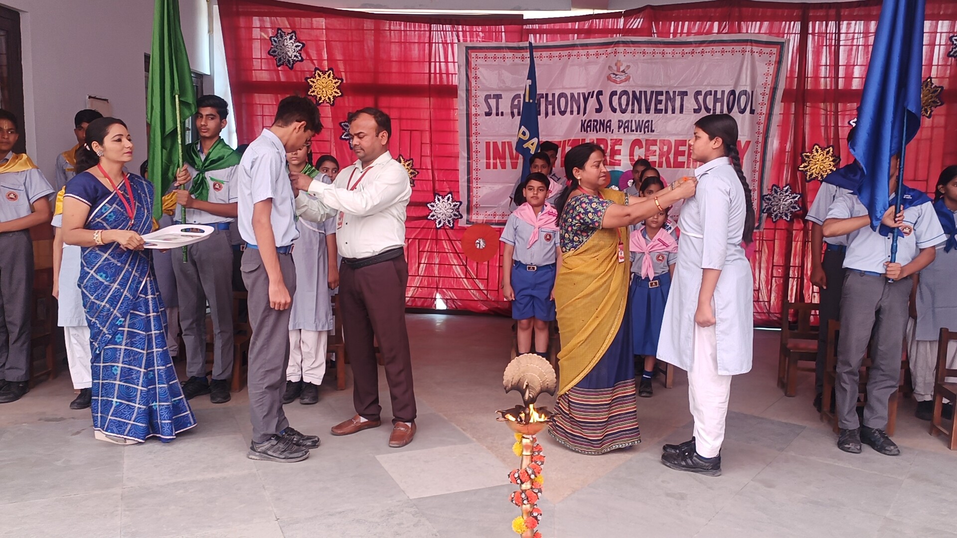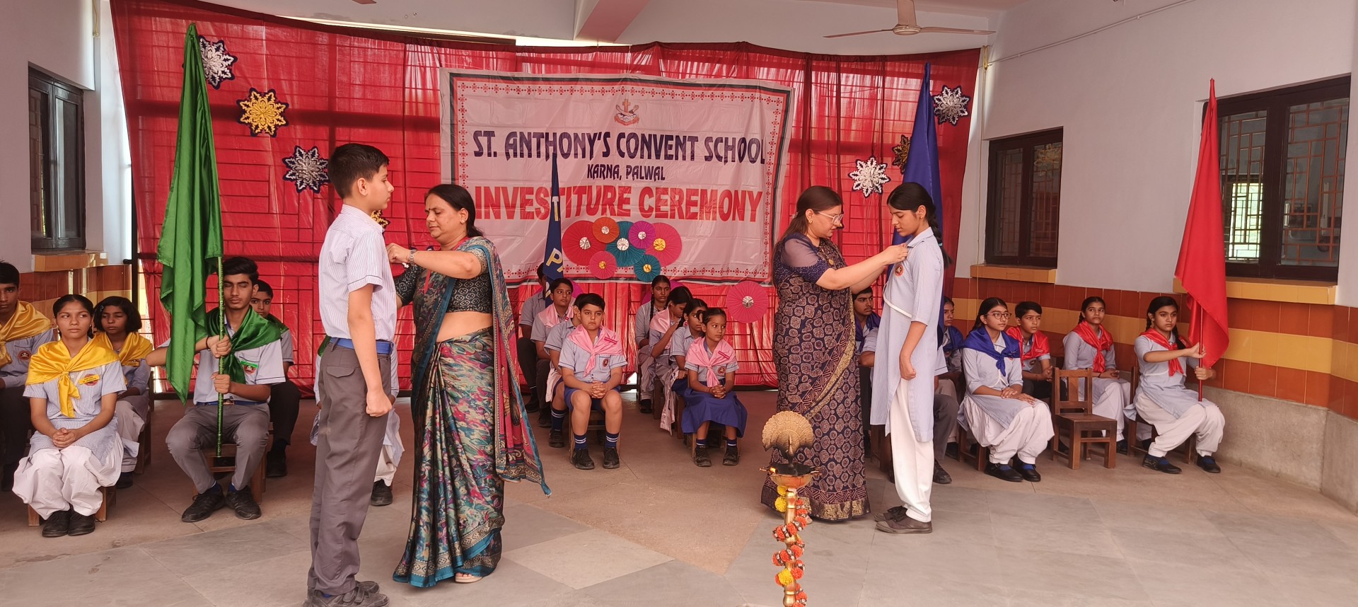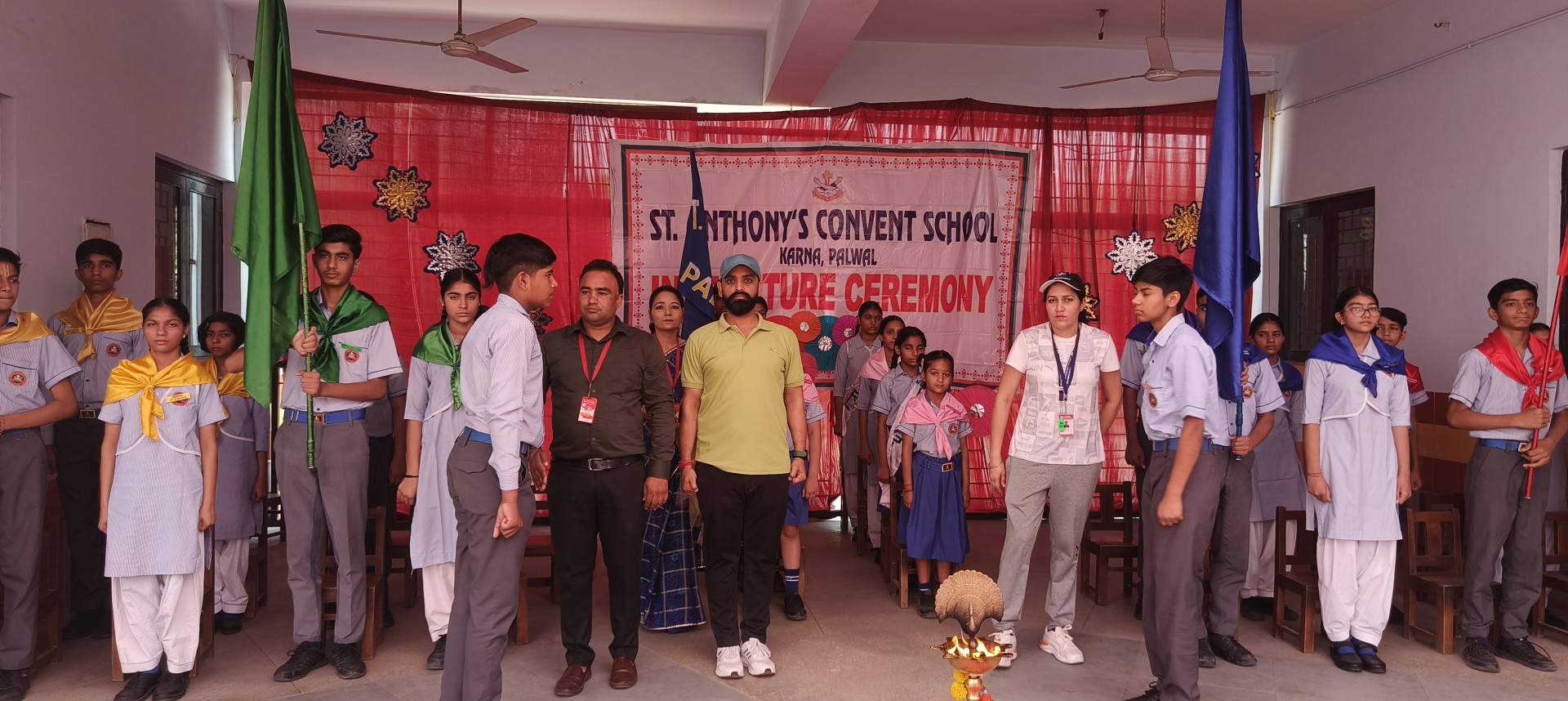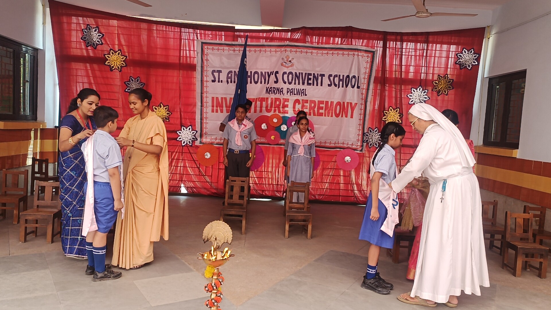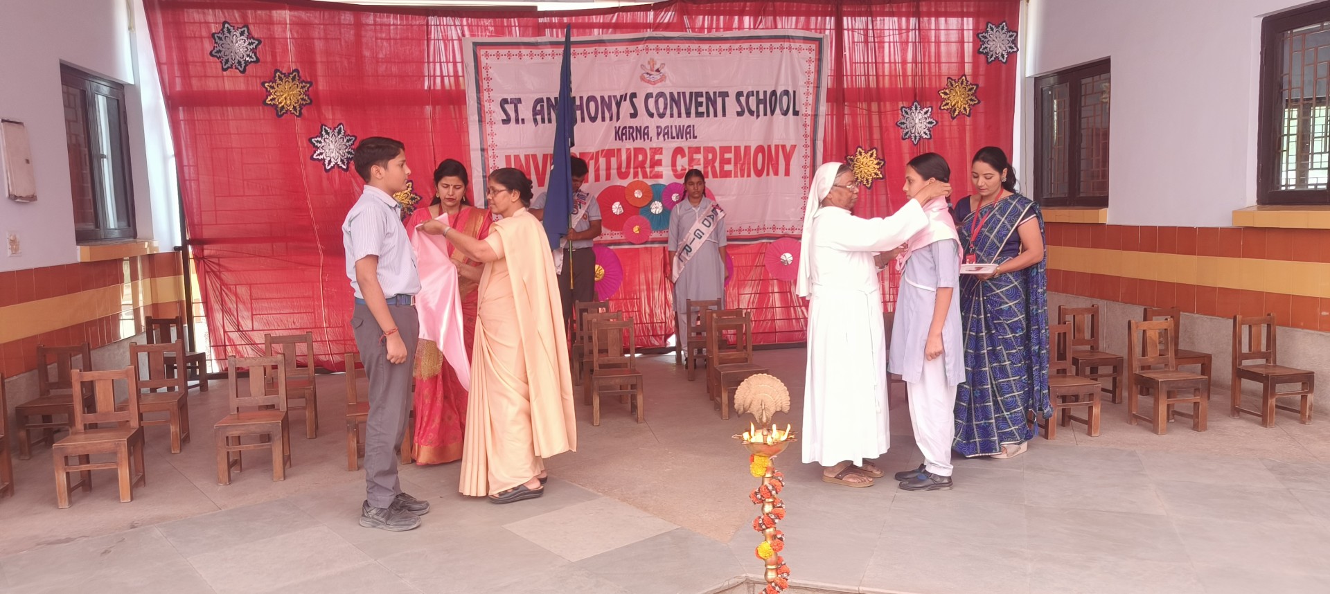 Description: The Investiture Ceremony of St. Anthony Convent School for the academic year 2025-26 was held with solemnity and pride. The event commenced with a grand entry of the pupil leaders led by the school band. This was followed by the ceremonial lamp lighting a heartfelt prayer and a graceful prayer dance invoking divine blessings for the occasion. A reading from the Holy Book emphasized the values of leadership and service. The young students of Class 4 energized the gathering with a colorful dance drill. The Leaders March showcased the confidence and unity of the newly elected council members. The highlight of the ceremony was the pinning of badges by the dignitaries officially bestowing responsibilities on the leaders followed by a solemn oath-taking pledging loyalty and service. The pupil leaders expressed their gratitude and vision through motivating speeches. Reverend Principal Sr. Abha addressed the gathering with inspiring words encouraging the young leaders to fulfill their duties with honesty and commitment. The program concluded with a vote of thanks by a pupil leader and the singing of the National Anthem marking the end of a memorable and inspiringevent.