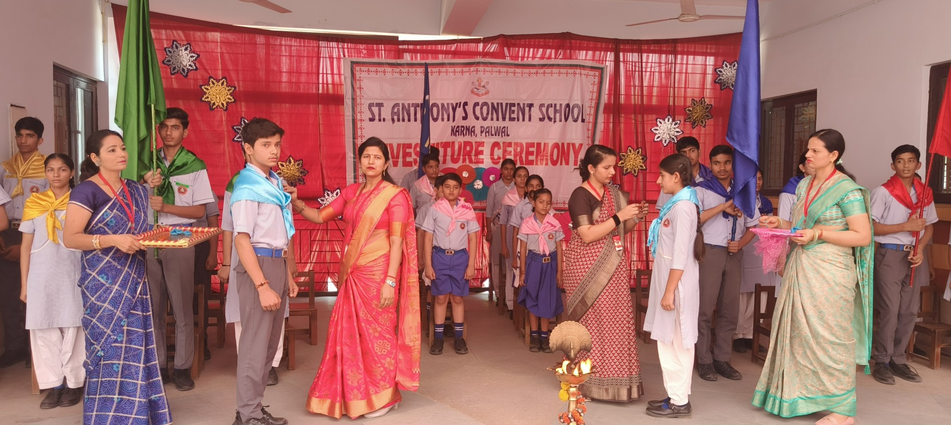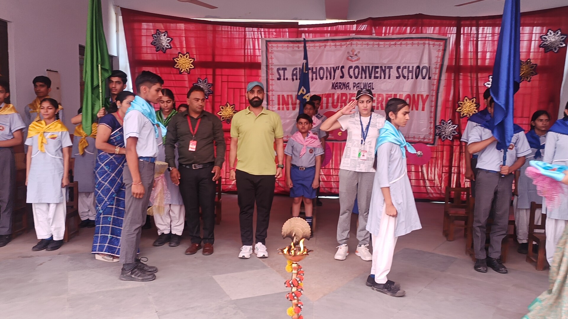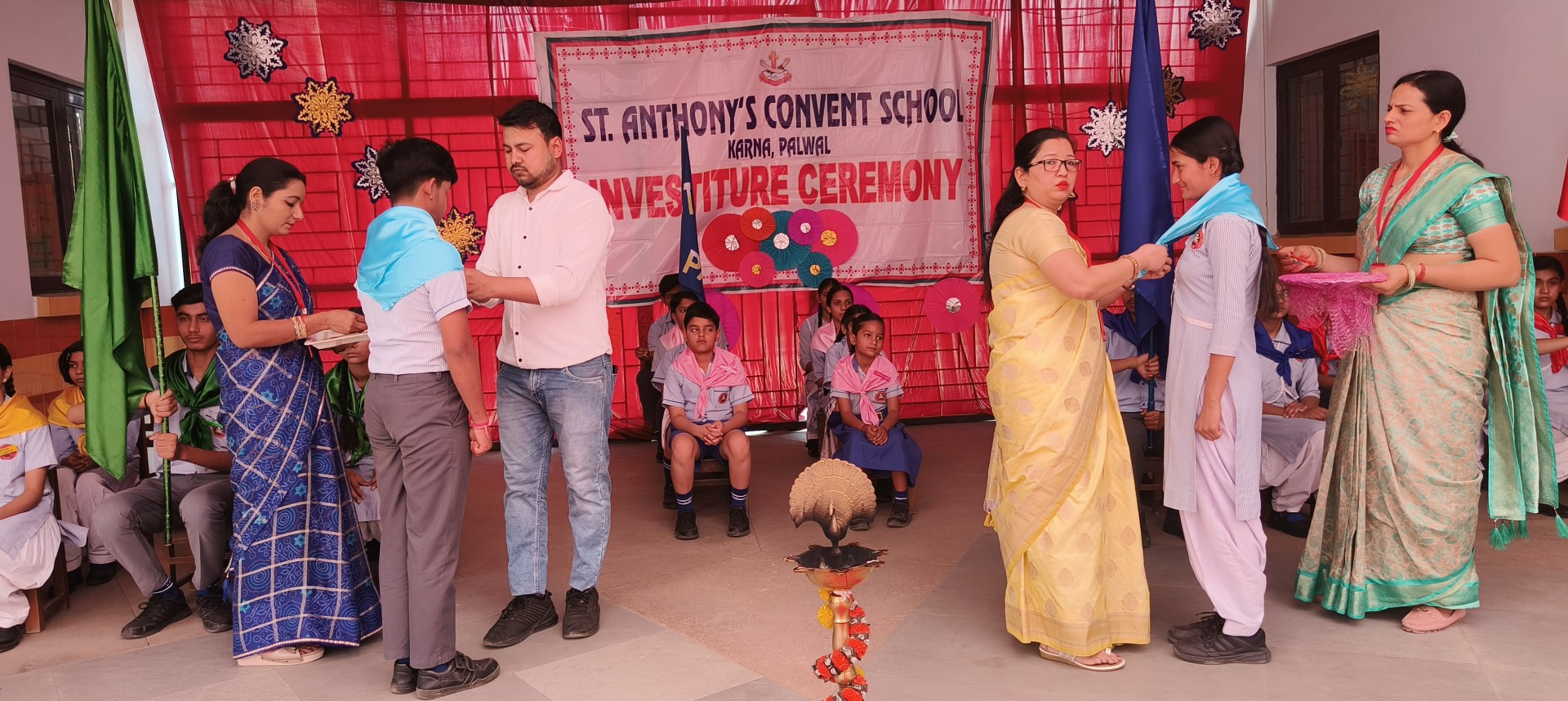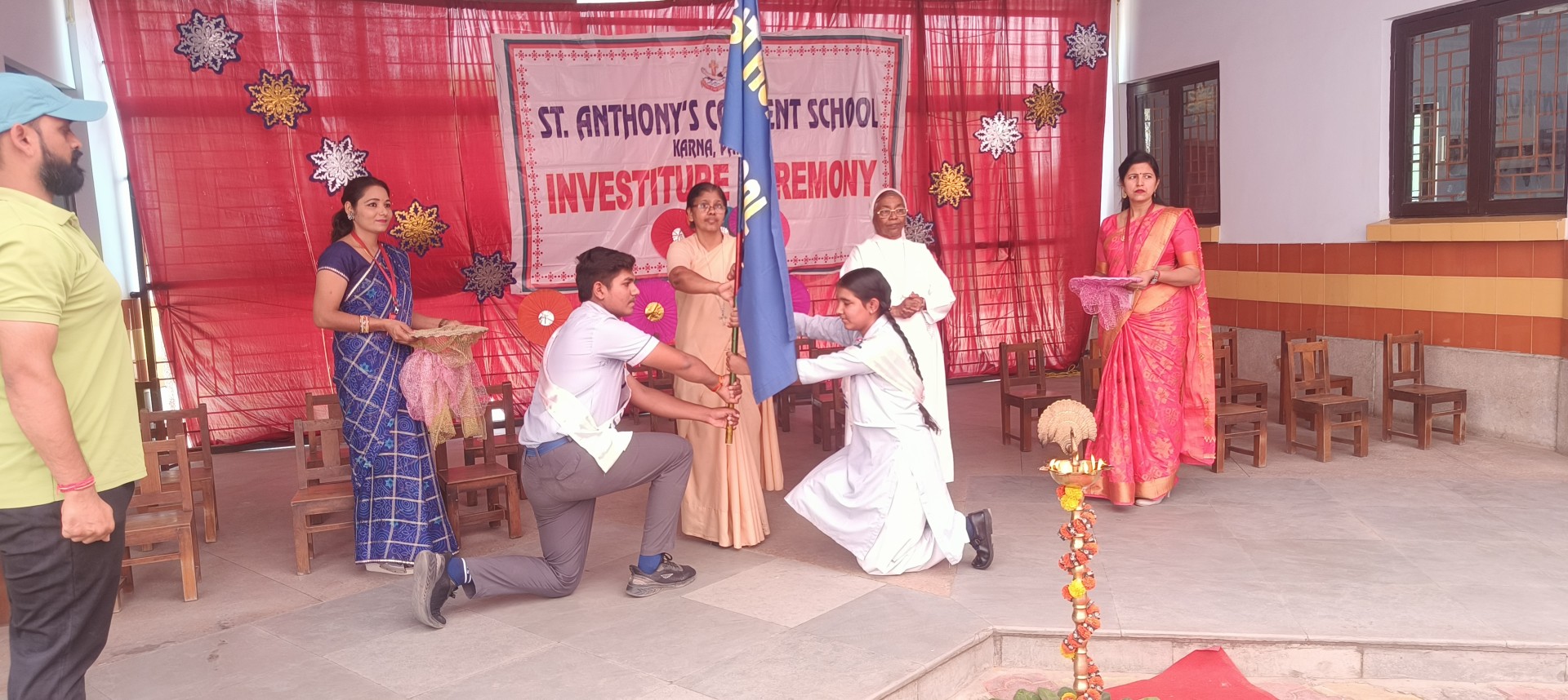 Description: The Investiture Ceremony of St. Anthony Convent School for the academic year 2025-26 was held with solemnity and pride. The event commenced with a grand entry of the pupil leaders led by the school band. This was followed by the ceremonial lamp lighting a heartfelt prayer and a graceful prayer dance invoking divine blessings for the occasion. A reading from the Holy Book emphasized the values of leadership and service. The young students of Class 4 energized the gathering with a colorful dance drill. The Leaders March showcased the confidence and unity of the newly elected council members. The highlight of the ceremony was the pinning of badges by the dignitaries officially bestowing responsibilities on the leaders followed by a solemn oath-taking pledging loyalty and service. The pupil leaders expressed their gratitude and vision through motivating speeches. Reverend Principal Sr. Abha addressed the gathering with inspiring words encouraging the young leaders to fulfill their duties with honesty and commitment. The program concluded with a vote of thanks by a pupil leader and the singing of the National Anthem marking the end of a memorable and inspiringevent.