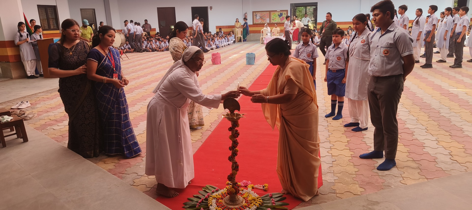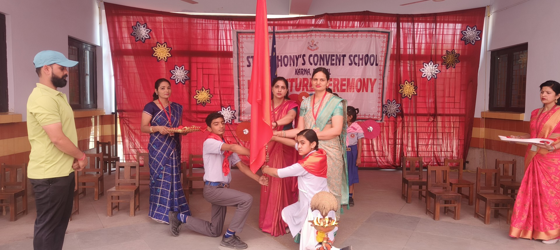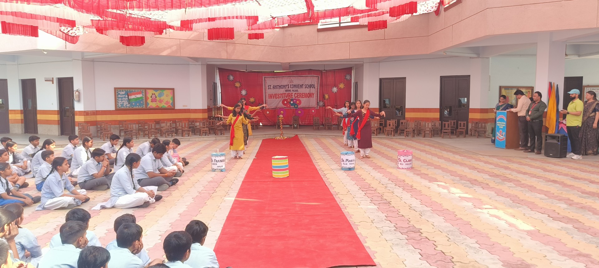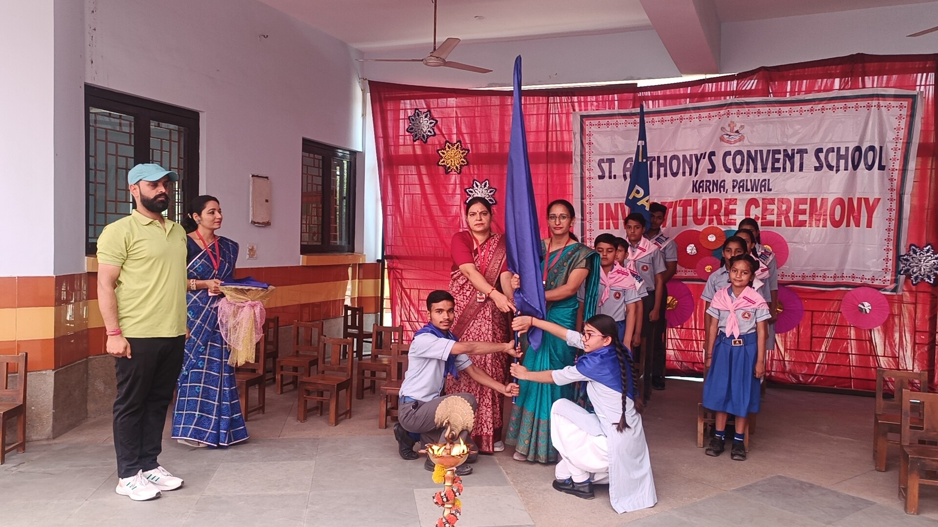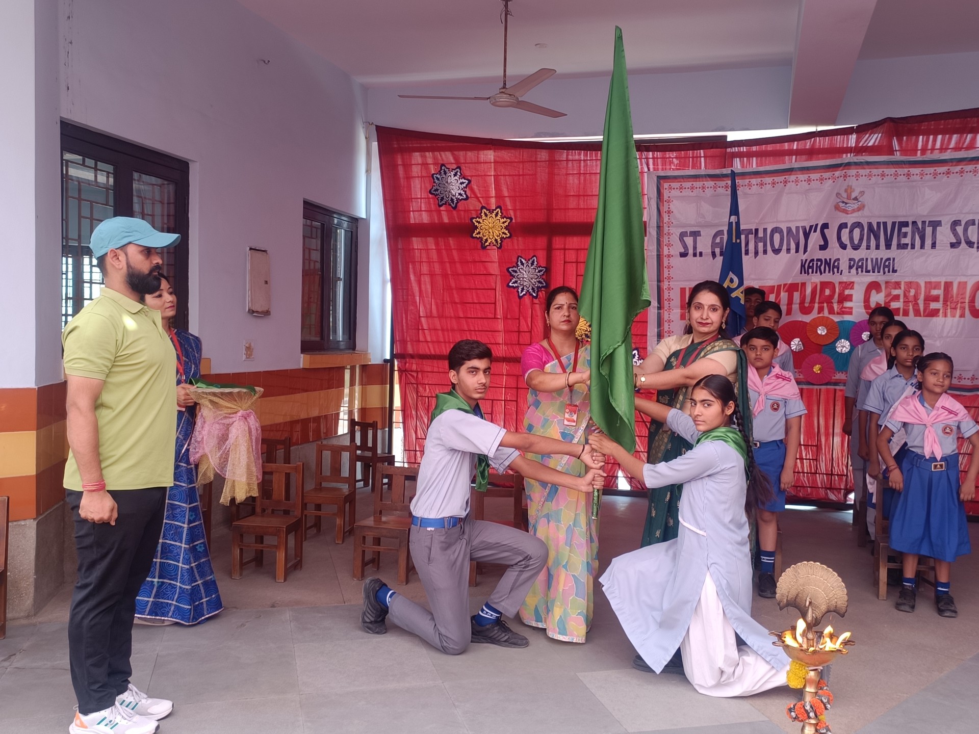 Description: The Investiture Ceremony of St. Anthony Convent School for the academic year 2025-26 was held with solemnity and pride. The event commenced with a grand entry of the pupil leaders led by the school band. This was followed by the ceremonial lamp lighting a heartfelt prayer and a graceful prayer dance invoking divine blessings for the occasion. A reading from the Holy Book emphasized the values of leadership and service. The young students of Class 4 energized the gathering with a colorful dance drill. The Leaders March showcased the confidence and unity of the newly elected council members. The highlight of the ceremony was the pinning of badges by the dignitaries officially bestowing responsibilities on the leaders followed by a solemn oath-taking pledging loyalty and service. The pupil leaders expressed their gratitude and vision through motivating speeches. Reverend Principal Sr. Abha addressed the gathering with inspiring words encouraging the young leaders to fulfill their duties with honesty and commitment. The program concluded with a vote of thanks by a pupil leader and the singing of the National Anthem marking the end of a memorable and inspiringevent.