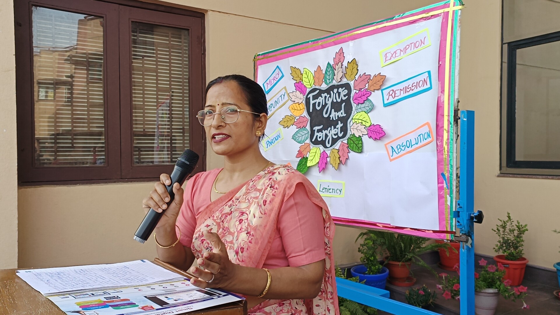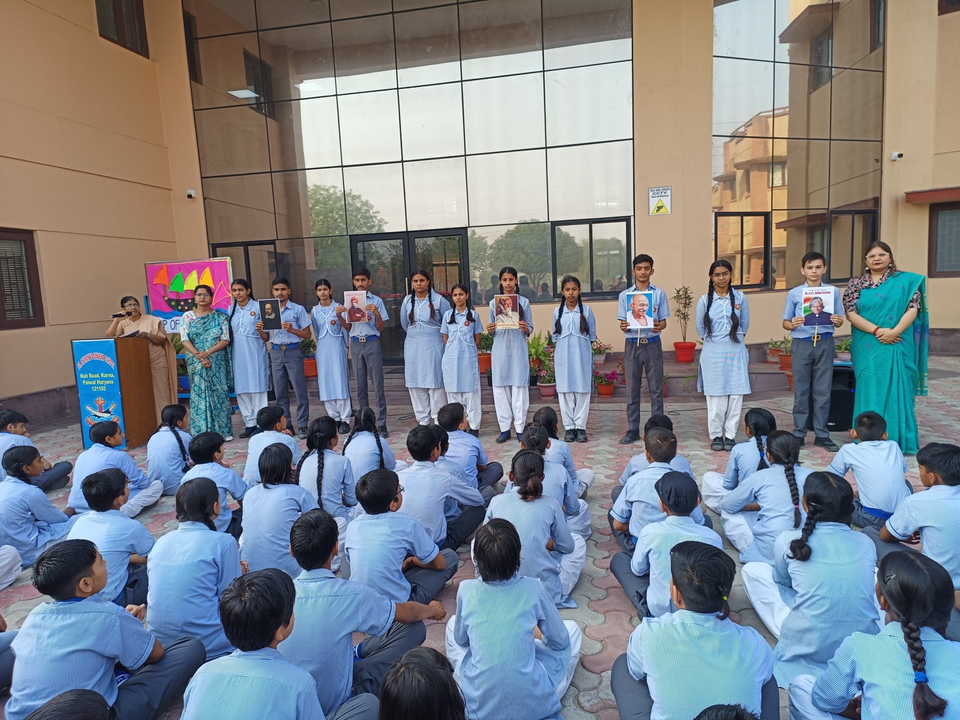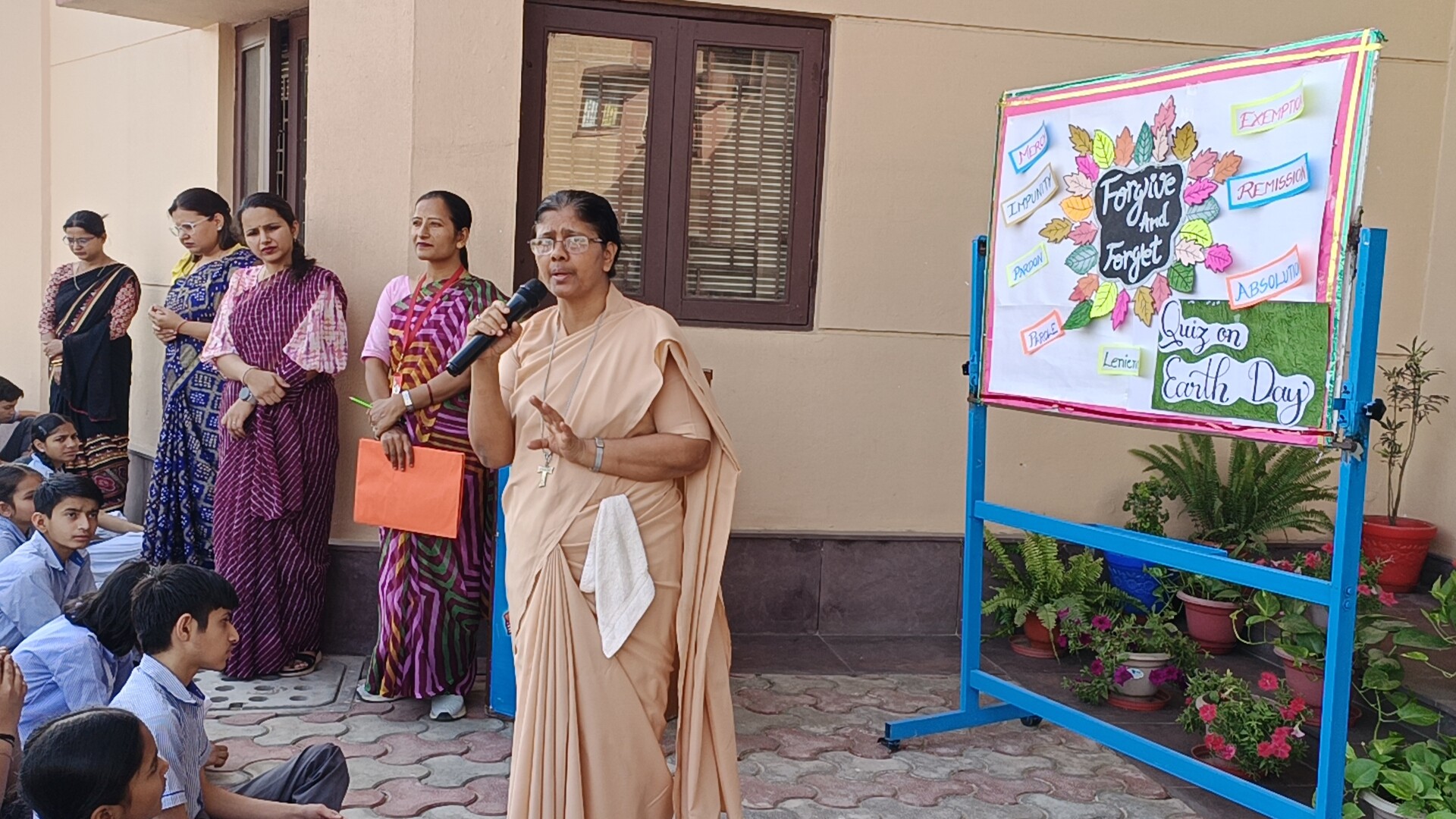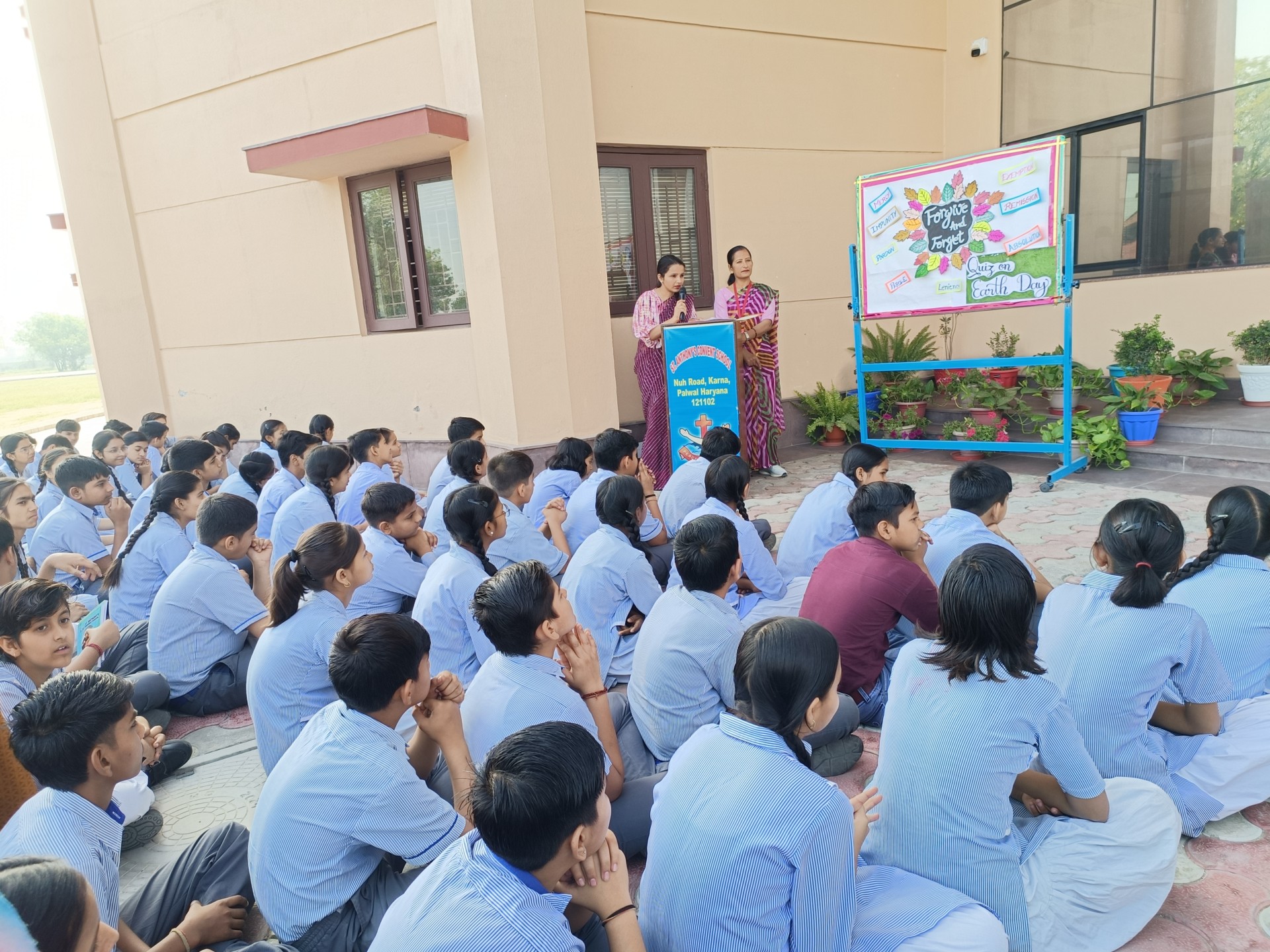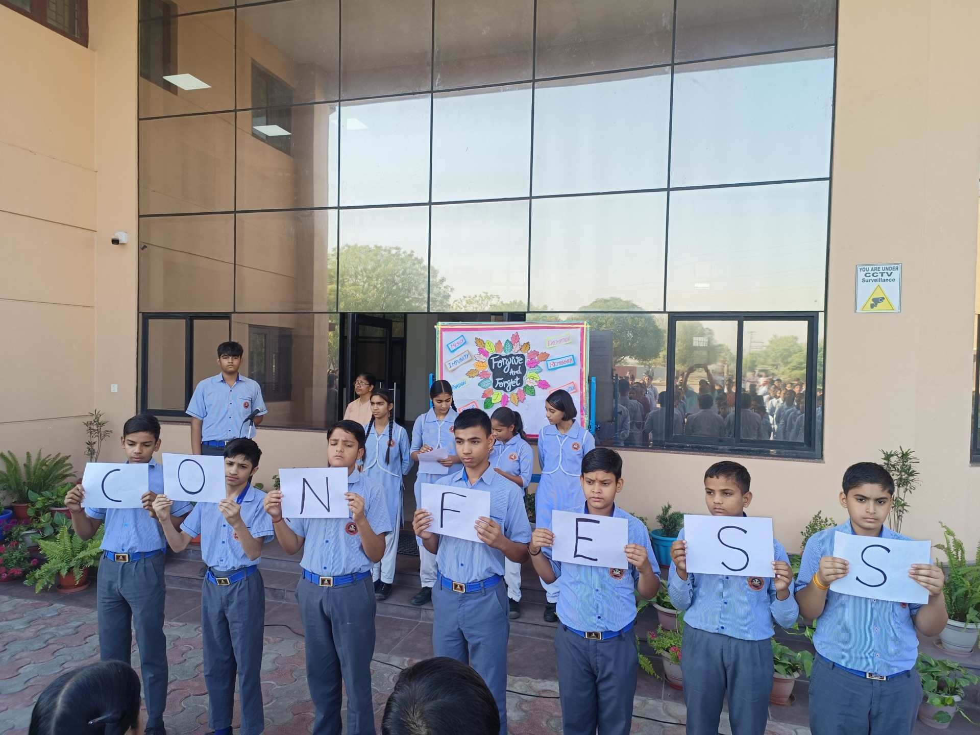 Description: Weekly Assembly Report Theme: Forgive and Forget Duration: One Week Venue: Assembly Ground During the week our school conducted special assemblies on the theme Forgive and Forget. Each day began with a prayer followed by the lighting of the lamp by the Sisters and teachers setting a peaceful tone. Students presented thoughts quotes posters and placards highlighting the values of forgiveness kindness and acceptance. They also displayed pictures of great personalities who inspired the world through their acts of forgiveness. A short talk was given by a teacher explaining the importance of letting go of anger and building harmony in daily life. Various classes participated throughout the week contributing through speeches messages and creative displays. The weekly assemblies helped students understand how forgiveness brings peace strengthens relationships and promotes a positive school environment.