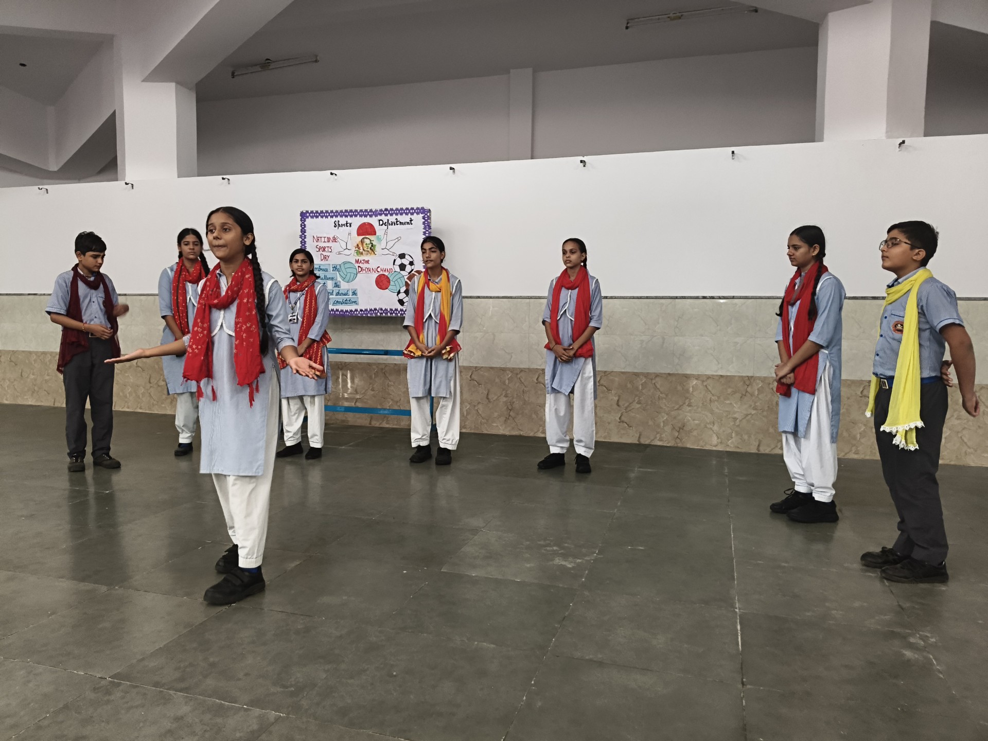 Description: National Sports Day is celebrated annually in India on August 29th. The day commemorates the birth anniversary of Major Dhyan Chand a legendary field hockey player widely regarded as one of the greatest of all time. Known as The Wizard of Hockey Major Dhyan Chand led the Indian hockey team to three consecutive Olympic gold medals in 1928 1932 and 1936. The celebration of National Sports Day serves to honor his legacy and promote the importance of sports and physical fitness in daily life. It is a day to recognize the achievements of our nations athletes and encourage a culture of sportsmanship discipline and healthy living among the youth. Activities Held on National Sports Day Our school celebrated National Sports Day with a series of vibrant and engaging events that showcased the spirit of sports and teamwork. 1. Dance on Different Sports A dynamic dance performance was presented by students creatively blending various dance forms with the movements of different sports. The routine featured a medley of actions from cricket football basketball and gymnastics set to upbeat music. This performance was a joyful and artistic tribute to the diversity of sports and highlighted the grace and skill involved in each one. 2. Speech A compelling speech was delivered by a student reflecting on the significance of National Sports Day. The speech paid tribute to Major Dhyan Chand and other Indian sports heroes. It emphasized how sports teach us valuable life lessons such as perseverance teamwork and leadership. The speaker encouraged all students to adopt a sport or physical activity as a part of their daily routine for a healthier and more disciplined life. 3. Nukkad Natak (Street Play) The highlight of the day was a powerful Nukkad Natak performed by a group of students. The play addressed the theme of Sports for All and tackled issues such as the importance of equal opportunities in sports the challenges faced by aspiring athletes and the need to balance academics with physic