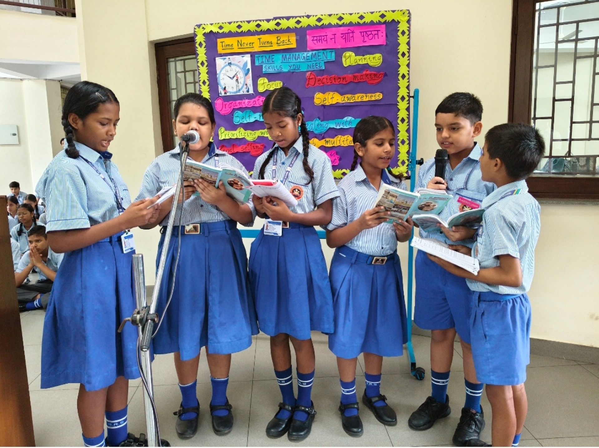 Description: School Report: Gratitude to Our Guides Week Date: August 25 - August 29 2025 Theme: Gratitude to Our Guides This report covers the activities and success of the Gratitude to Our Guides school week. The weeks aim was to help students express appreciation for their mentors teachers and parents. Summary of Activities: Monday (English Poem): Students wrote and recited poems about gratitude. Tuesday (Poem with Props): Students performed their poems using props to enhance their message. Wednesday (Hindi Kavita): The focus shifted to Hindi poems showcasing appreciation for the language and its literary traditions. Thursday (English Poem Action Song): A day of lively expression with students reciting poems and performing a choreographed action song. Friday (Prayer): The week ended with a quiet prayer assembly to reflect and give thanks. Conclusion: The week was a great success fostering creativity and a positive appreciative atmosphere. The diverse activities encouraged students to express gratitude in various ways strengthening our schoolcommunity.