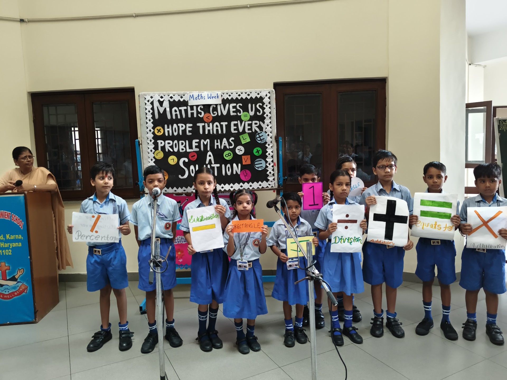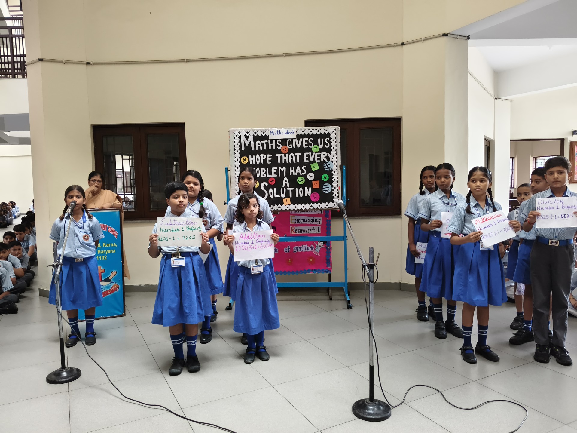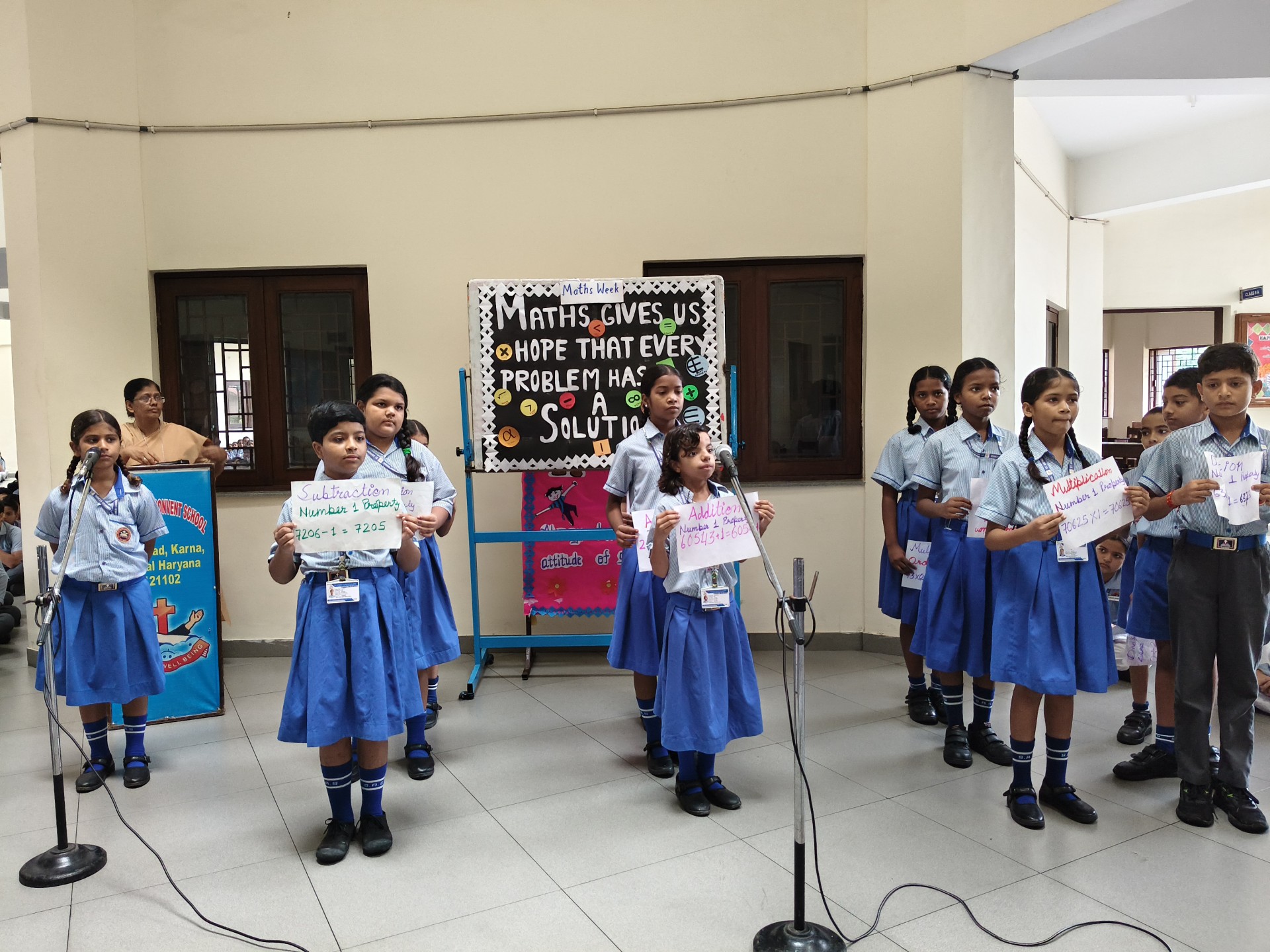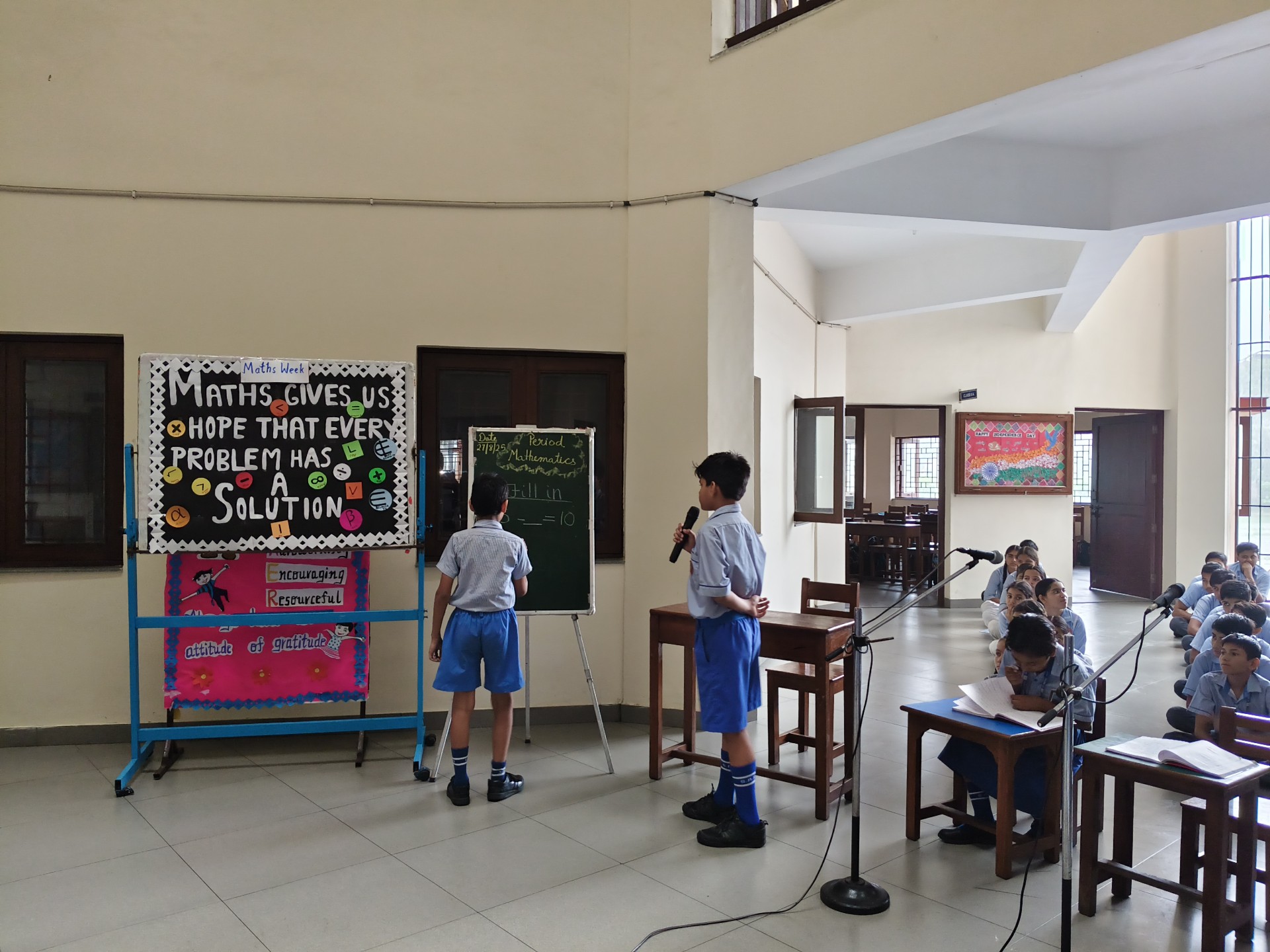 Description: Mathematics Week Competition Report The school recently held its Mathematics Week Competition from August 21 to August 25 2025. This event promoted an interest in mathematics through a variety of fun and engaging activities for all students. The schedule for the week was as follows: Thursday August 21 2025: Students in grades 13 participated in an Activity on the Number System within their respective classrooms. Friday August 22 2025: Grade 4 students took part in an Activity on Roman Numerals which was held in their classrooms. Grade 5 students engaged in a Role Play Activity on the topic of Fractions which was also held in their classrooms. Saturday August 23 2025: Grade 6 students showcased their creativity with Geometrical Pattern Art in their classrooms and grade 7 students completed Geometrical Mandala Art also in their classrooms. Monday August 25 2025: The week concluded with a House-wise Math Quiz for grades 810 which was held in front of the ConferenceHall.