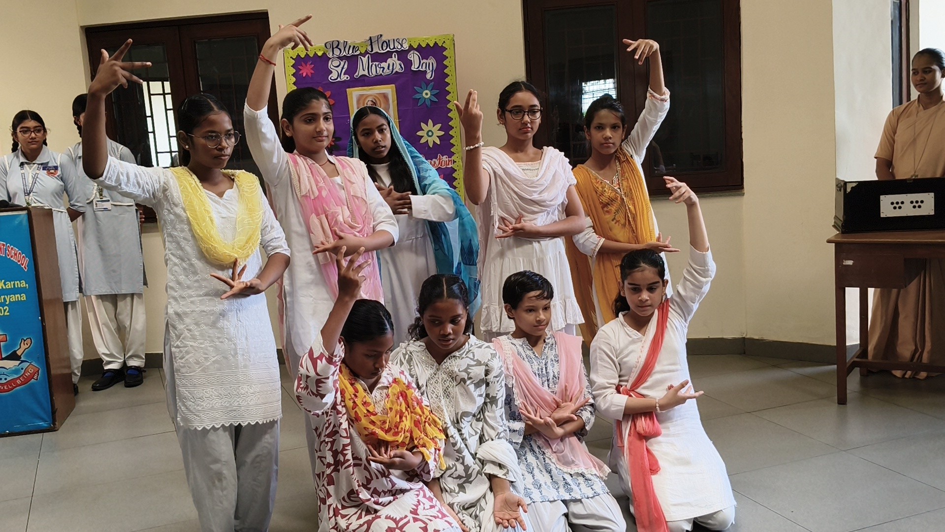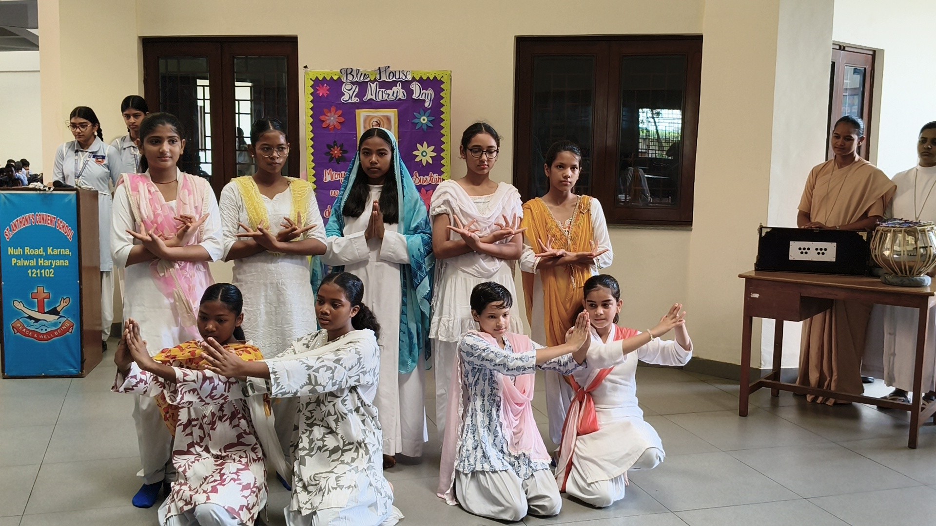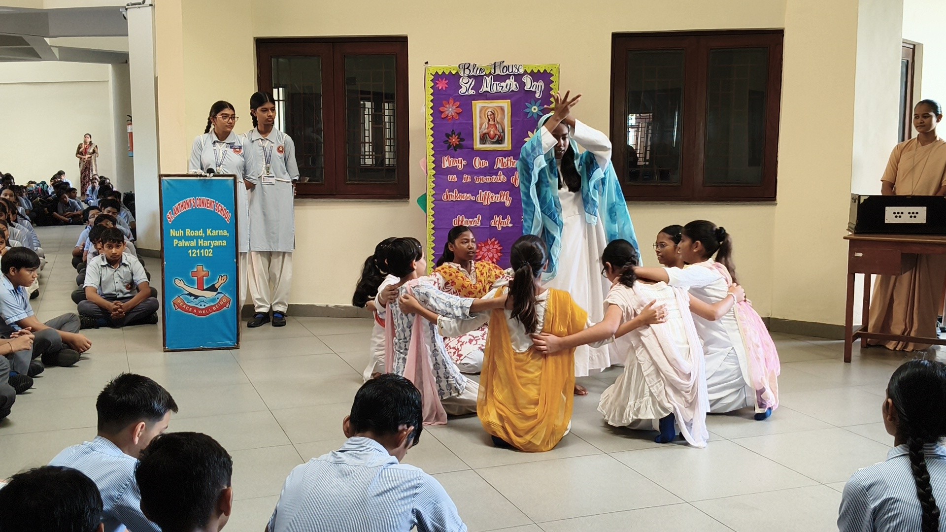 Description: St. Marys Day Celebration Report Date: 8th September 2025 Venue: Assembly Ground St. Marys Day was celebrated with great devotion and enthusiasm on 8th September 2025 in our school. The programme began with an introduction highlighting the life and virtues of Mother Mary emphasizing her compassion humility and unwavering faith. A speech on Mother Mary was delivered by one of the students beautifully expressing her role as a guiding light and source of inspiration for millions across the world. This was followed by a graceful dance performance presented by the students symbolizing love peace and devotion. The second part of the programme focused on the theme Save Girl Child. A short introduction was given to create awareness about the importance of educating and empowering girls. Students also presented a touching poem on Save Girl Child conveying a powerful message on valuing and protecting the girl child in society. The celebration concluded with a message encouraging everyone to follow