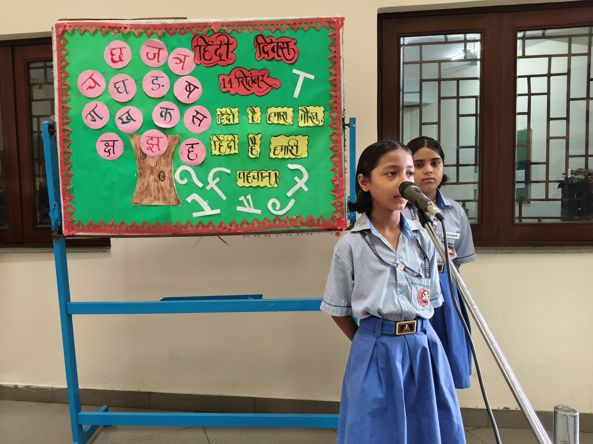 Description: Hindi Diwas Celebration Dates: 6th 8th September 2025 Venue: School Campus To mark the celebration of Hindi Diwas a series of activities were organized in the school on 6th and 8th September 2025 to promote and encourage the use of the Hindi language among students. The activities aimed to develop language skills confidence and appreciation for Hindi literature. On 6th September the following competitions were held within the classrooms: (Handwriting Competition): For Classes IV and V students participated enthusiastically and showcased their neat handwriting and love for the language. (Doha Recitation): Conducted for Class VI students recited famous Dohas with proper pronunciation and expression. (Speech Competition): Organized for Classes VII and VIII students delivered inspiring speeches on various topics related to Hindi Diwas demonstrating confidence and fluency. On 8th September the celebrations continued with: (Poem Recitation Competition): For Classes I to III held outside the classrooms. Young learners recited beautiful poems with enthusiasm adding charm to the celebration. (Quiz Competition): A house-wise quiz was organized for Classes IX and X to test their knowledge of Hindi language grammar literature and culture. The quiz generated excitement and healthy competition among the participants. The Hindi Diwas celebrations created an engaging and enriching atmosphere in the school. Students participated actively and demonstrated their skills with great zeal. The event helped in fostering respect and love for the Hindi language among students ofallagegroups.