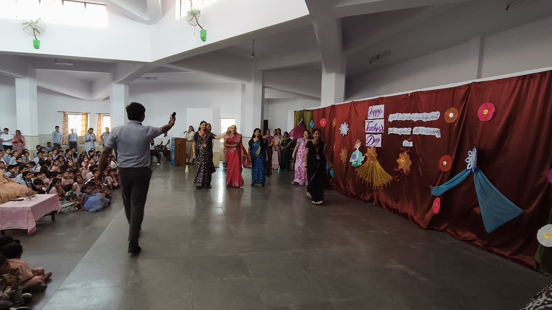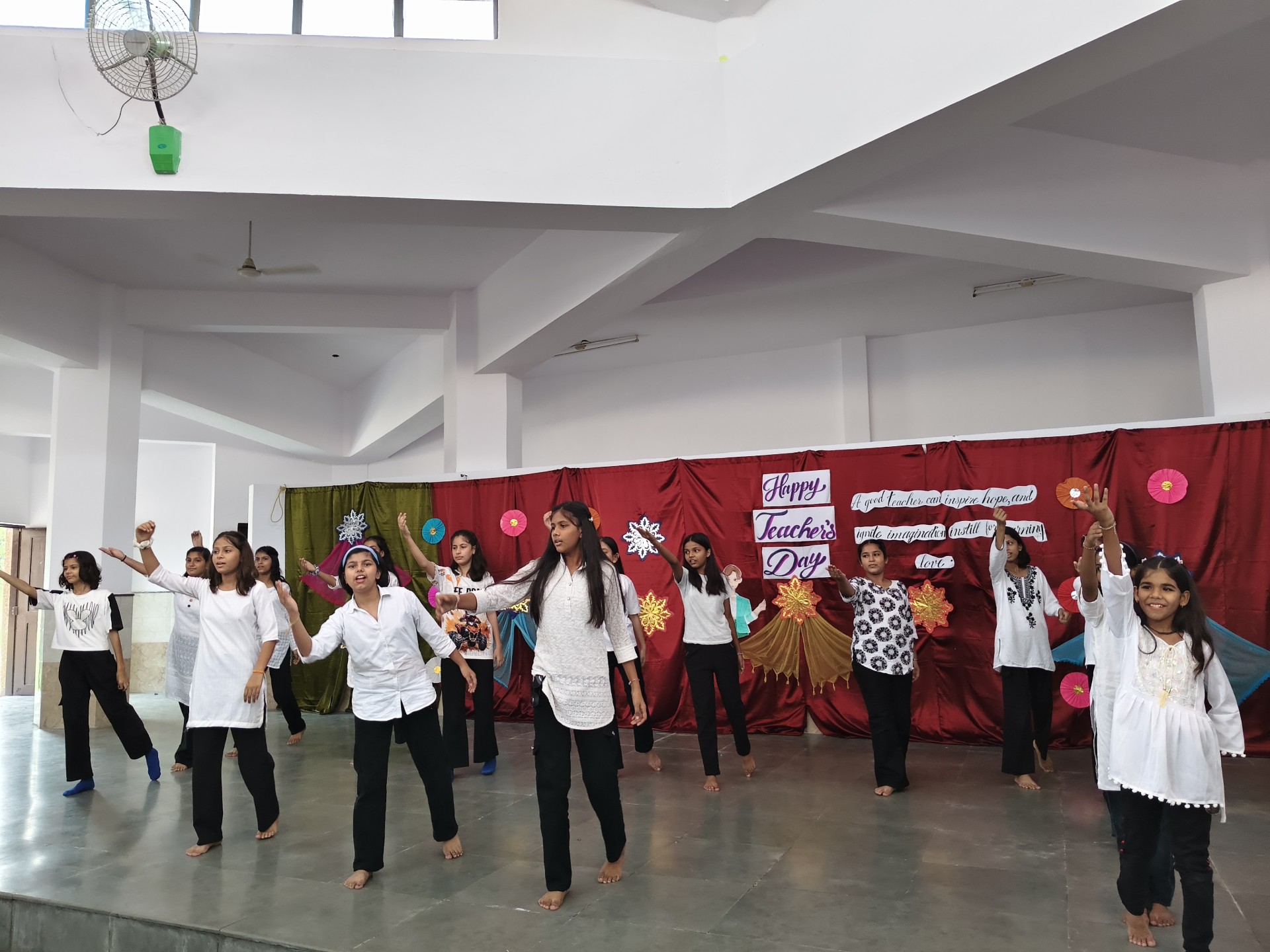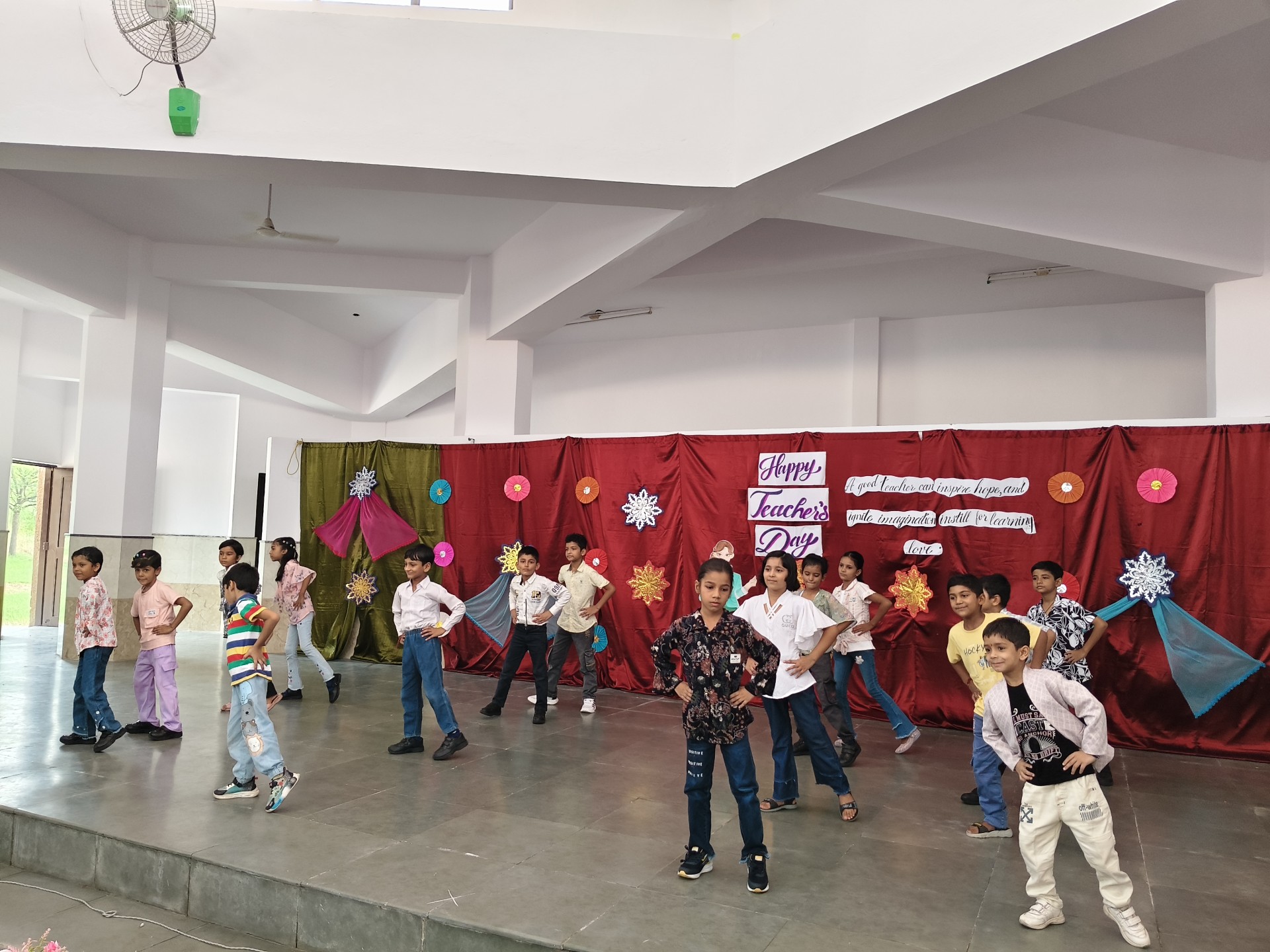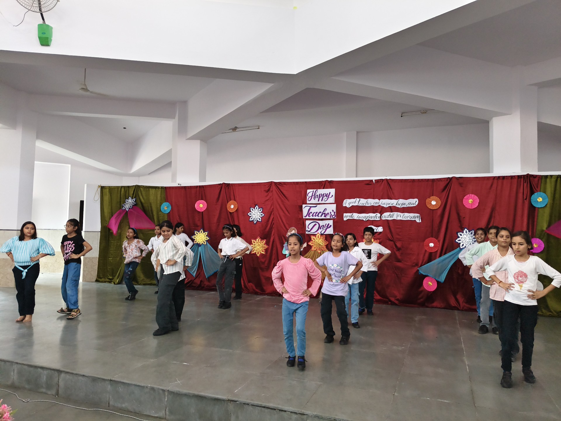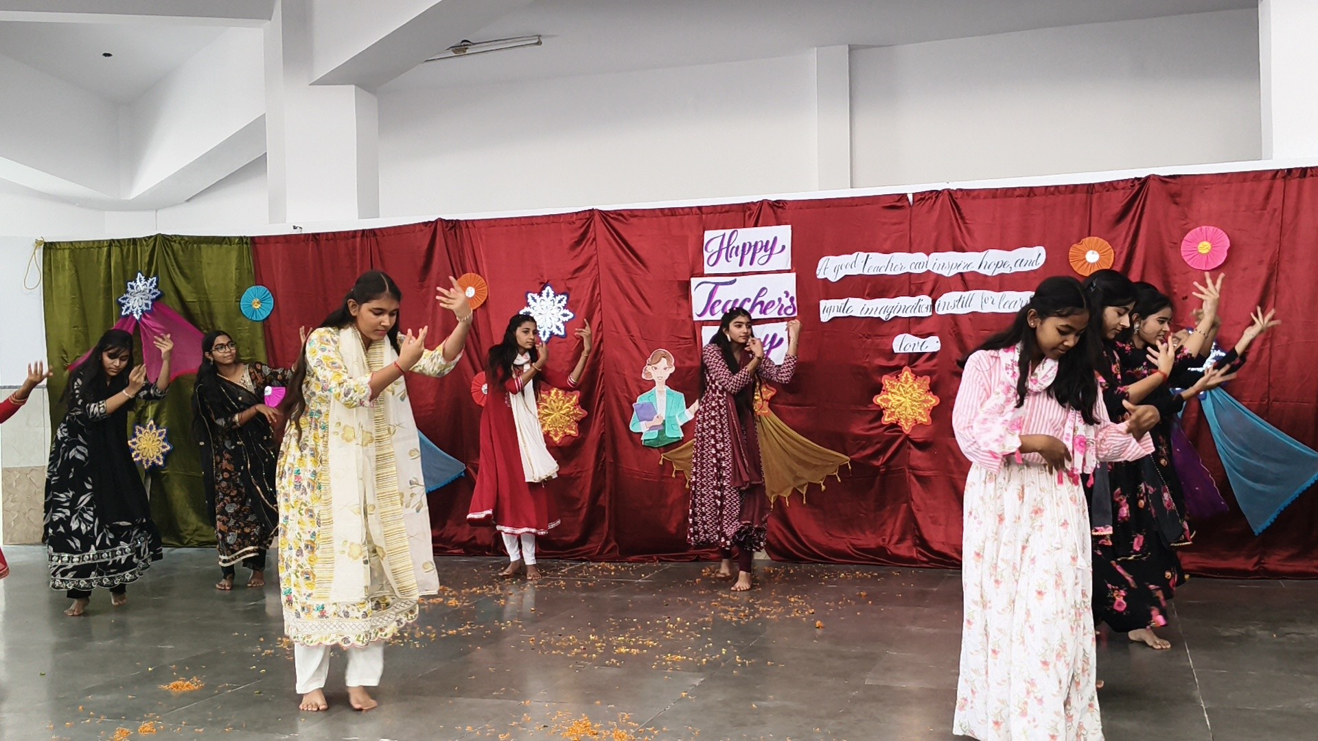 Description: Teachers Day Celebration Report Date: 5th September 2025 Venue: Multi-Purpose Hall Teachers Day was celebrated in our school with great enthusiasm and respect to honour the invaluable contribution of teachers in shaping young minds. A special programme was organized by the students to express their gratitude and love towards their teachers. The event commenced with the warm welcome of teachers with a band and tilak ceremony creating a festive and respectful atmosphere. This was followed by a brief introduction highlighting the significance of Teachers Day and remembering Dr. Sarvepalli Radhakrishnans contribution to education. The auspicious ceremony of lamp lighting was conducted to mark the beginning of the celebration symbolizing knowledge and wisdom. This was followed by a graceful prayer dance setting a serene tone for the day. The cultural performances began with a dance performance by LKG and UKG students on the theme Thank You Teachers which won everyones hearts with their innocence and energy. Next the Class 9th girls presented a vibrant mashup dance followed by Classes 1st to 3rd dancing to the lively number Bum Bum Bole filling the atmosphere with joy and cheer. Students of Classes 8th and 9th presented a skit showcasing the role of teachers in students lives in a creative and entertaining manner. To make the day even more engaging fun games were organized for teachers including: Balloon Bust with Dart Flowing Cup with Balloon Cone Collection and Basket Game A heartfelt message by one of the teachers was shared expressing gratitude and love for the students. The cultural segment continued with Classes 4th and 5th dancing to All is Well followed by a musical performance by Classes 6th and 7th on Shukriya Song. The Class 10th girls concluded the dance performances with a dynamic mashup showcasing their talent and enthusiasm. The fun continued with more games such as Red Light Green Light Balloon in the Basket (with blindfolded help) and Baat k