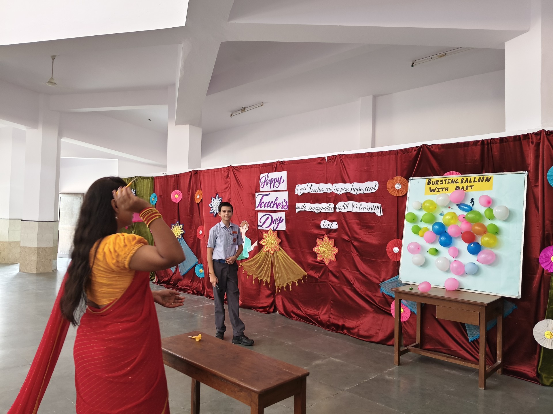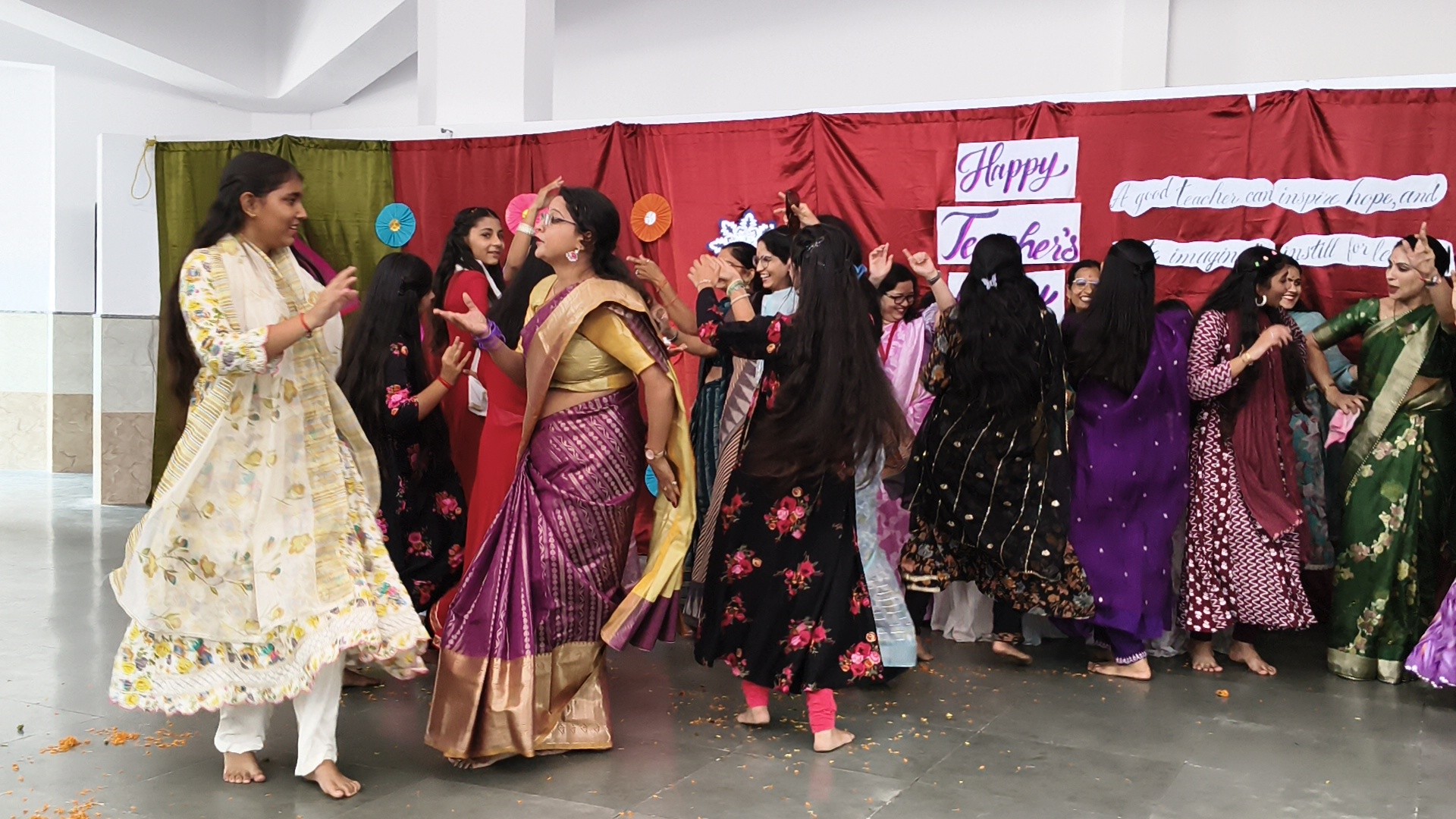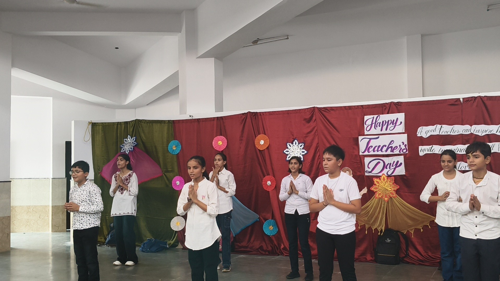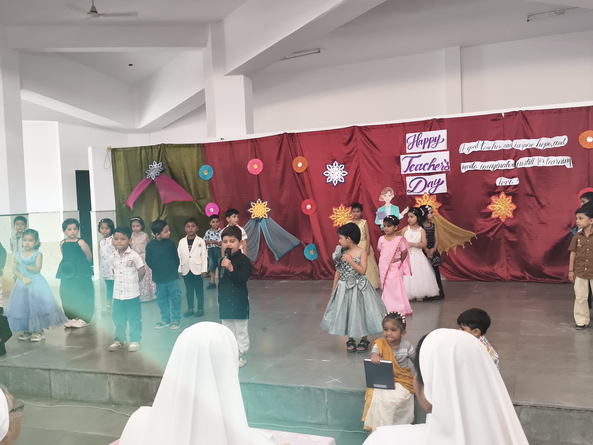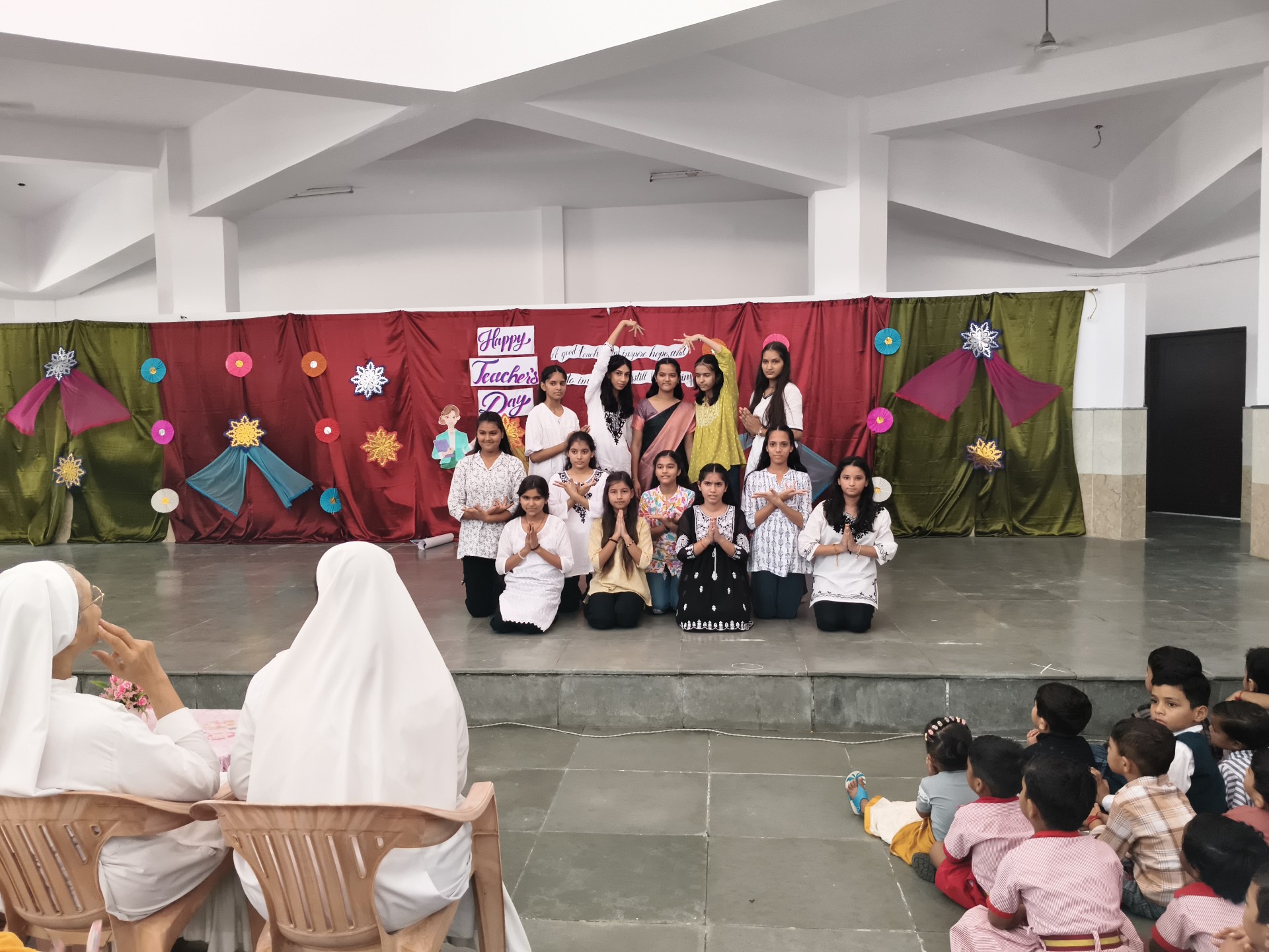 Description: Teachers Day Celebration Report Date: 5th September 2025 Venue: Multi-Purpose Hall Teachers Day was celebrated in our school with great enthusiasm and respect to honour the invaluable contribution of teachers in shaping young minds. A special programme was organized by the students to express their gratitude and love towards their teachers. The event commenced with the warm welcome of teachers with a band and tilak ceremony creating a festive and respectful atmosphere. This was followed by a brief introduction highlighting the significance of Teachers Day and remembering Dr. Sarvepalli Radhakrishnans contribution to education. The auspicious ceremony of lamp lighting was conducted to mark the beginning of the celebration symbolizing knowledge and wisdom. This was followed by a graceful prayer dance setting a serene tone for the day. The cultural performances began with a dance performance by LKG and UKG students on the theme Thank You Teachers which won everyones hearts with their innocence and energy. Next the Class 9th girls presented a vibrant mashup dance followed by Classes 1st to 3rd dancing to the lively number Bum Bum Bole filling the atmosphere with joy and cheer. Students of Classes 8th and 9th presented a skit showcasing the role of teachers in students lives in a creative and entertaining manner. To make the day even more engaging fun games were organized for teachers including: Balloon Bust with Dart Flowing Cup with Balloon Cone Collection and Basket Game A heartfelt message by one of the teachers was shared expressing gratitude and love for the students. The cultural segment continued with Classes 4th and 5th dancing to All is Well followed by a musical performance by Classes 6th and 7th on Shukriya Song. The Class 10th girls concluded the dance performances with a dynamic mashup showcasing their talent and enthusiasm. The fun continued with more games such as Red Light Green Light Balloon in the Basket (with blindfolded help) and Baat k