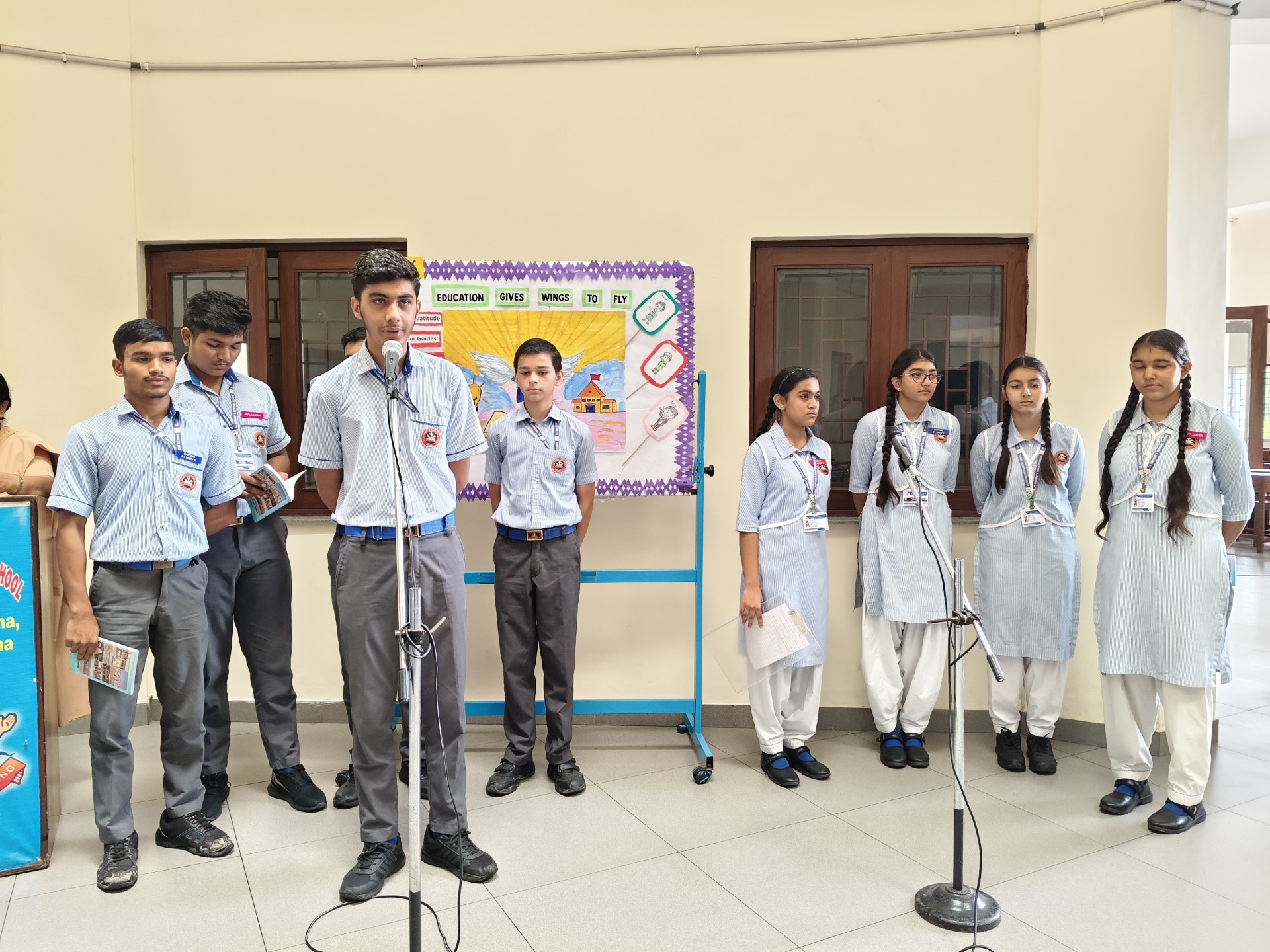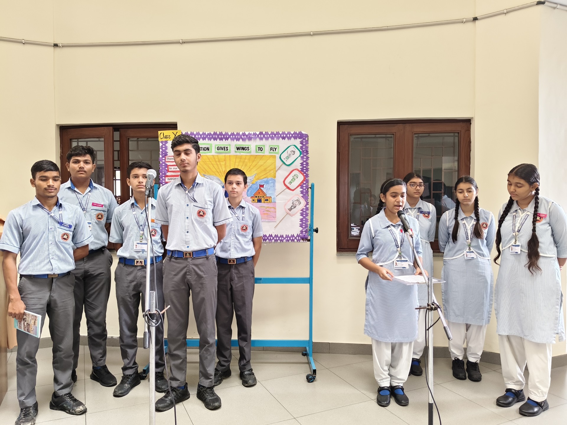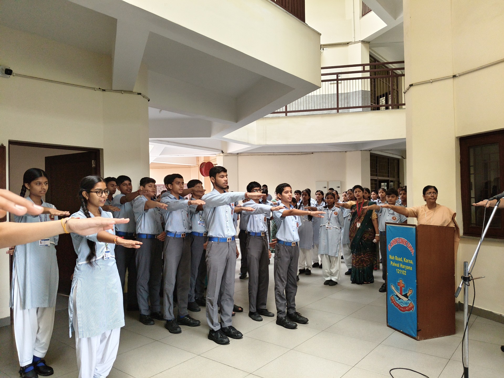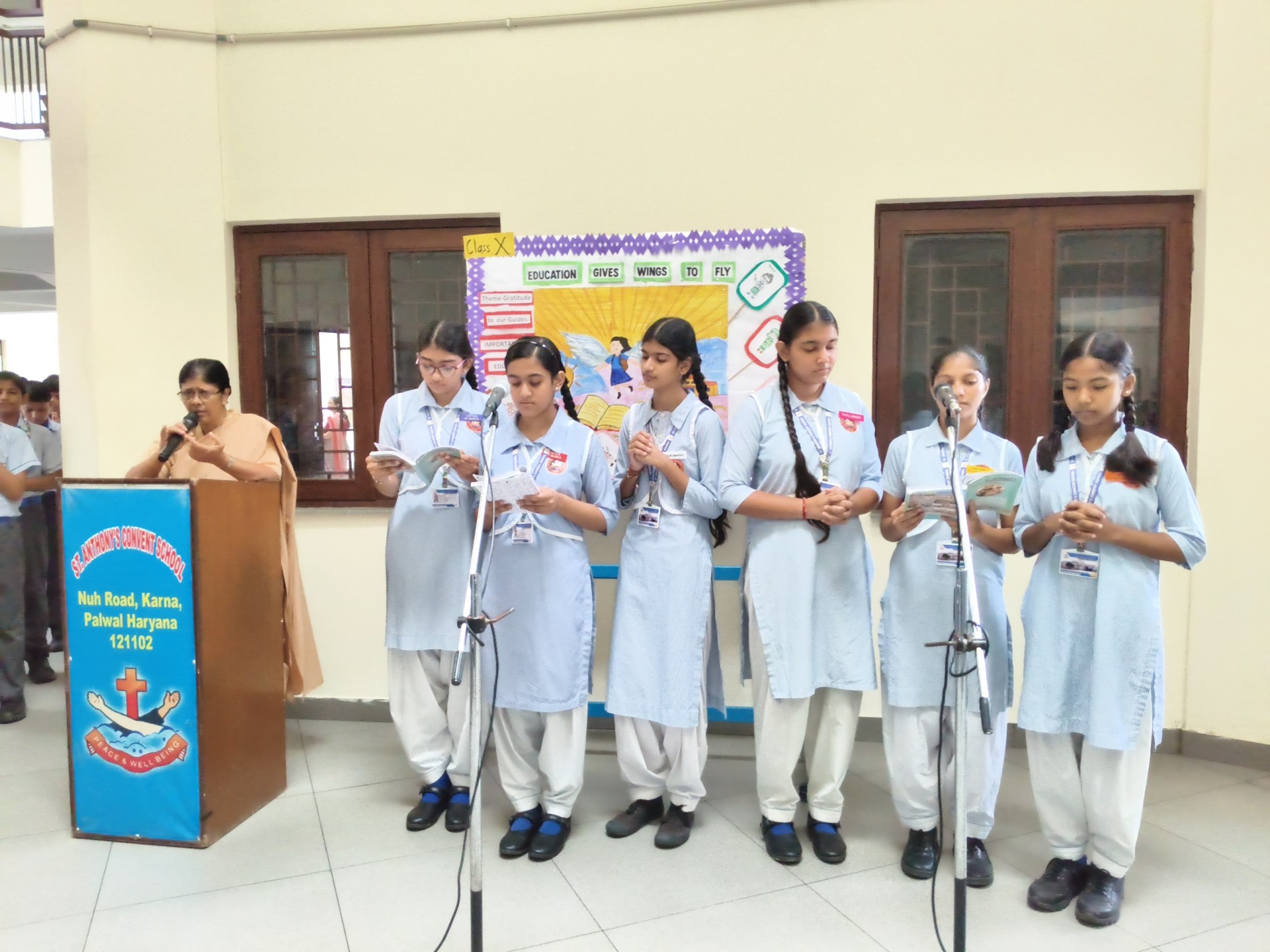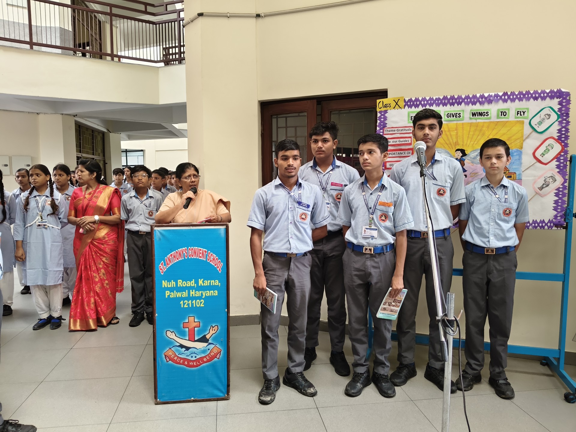 Description: Report on School Assembly by Class 10 (A B) Date: 1st October 2025 15th October 2025 Venue: School Assembly Ground The students of Class 10 (A and B) conducted the morning assemblies for two weeks on the themes Gratitude to Our Teachers and Discipline: Focus and Paves to Success. The assemblies aimed to instill values of thankfulness respect and self-discipline among the students. Each day began with a prayer thought for the day and news headlines followed by inspiring presentations by Class 10 students. During the first week the focus was on Gratitude to Our Teachers where students expressed heartfelt appreciation for their teachers through motivational speeches poems and short skits highlighting the vital role teachers play in shaping their lives. In the second week the theme Discipline: Focus and Paves to Success was carried forward. Students presented speeches and quotes emphasizing how self-discipline dedication and focus lead to true success. The message encouraged everyone to stay committed to their goals and values. Our Principal Sr. Abha addressed the students during the concluding assembly appreciating the efforts of Class 10 (A B) for organizing thoughtful and meaningful sessions. She also reminded everyone that gratitude and discipline are the foundation of a successful and fulfilling life. The two-week assembly series concluded with the national anthem leaving all students motivated to practice discipline and express gratitude in theirdailylives.