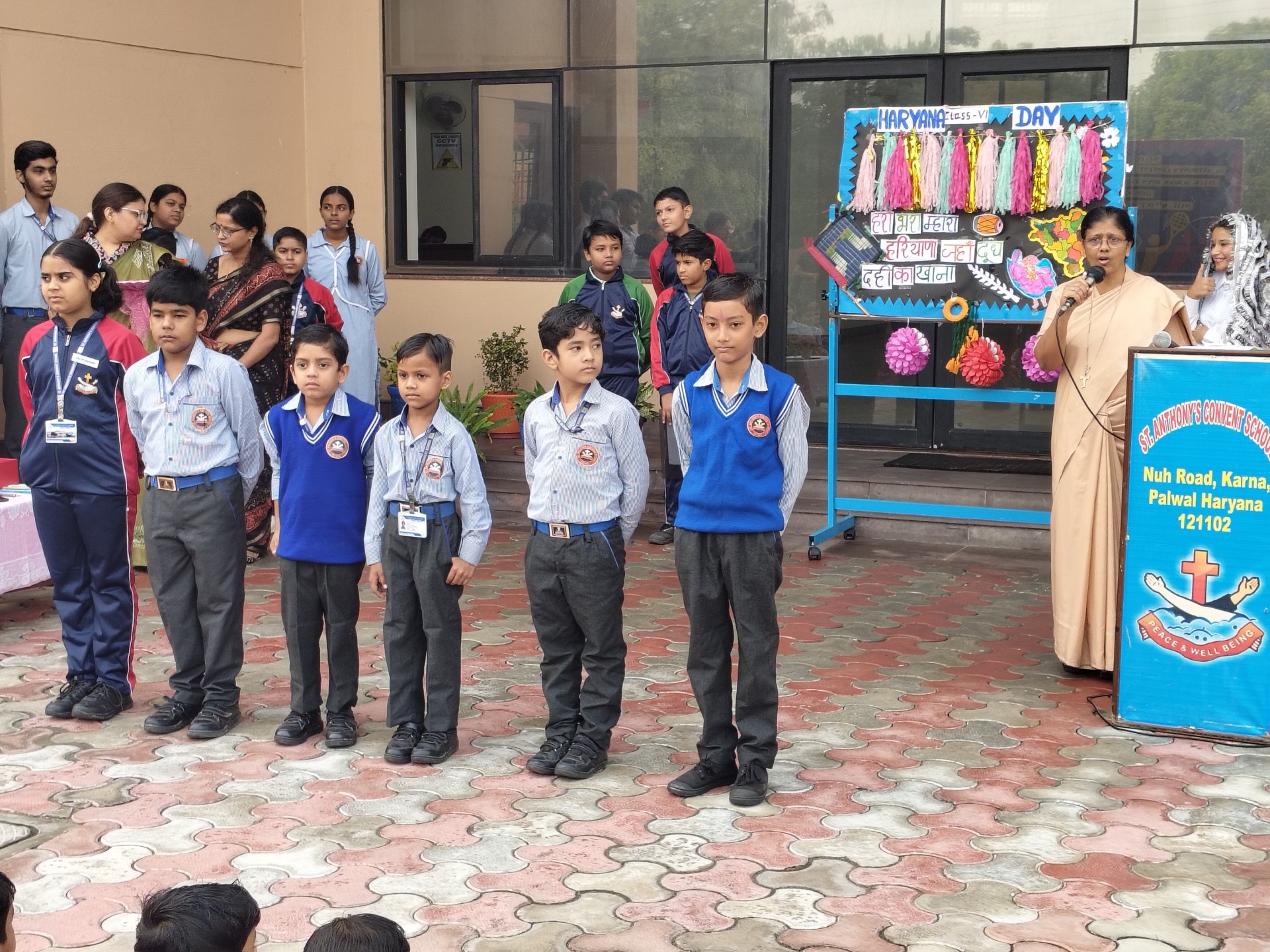 Description: Report on Haryana Day Celebration Date: 1st November 2025 Venue: School Assembly Ground Organized by: Class VI Haryana Day was celebrated with great enthusiasm and patriotic spirit in our school on 1st November 2025 to mark the formation of the state of Haryana. The celebration was organized through a special assembly by the students of Class VI who beautifully showcased the rich culture history and achievements of Haryana. The program began with a warm introduction highlighting the significance of Haryana Day and its formation in 1966. This was followed by an inspiring speech that threw light on Haryanas contribution to agriculture sports and national development. Students also shared interesting facts about Haryana which helped everyone learn more about the states heritage famous personalities and traditions. A melodious poem dedicated to Haryana was recited expressing pride and love for the state. The celebration continued with songs and dances depicting the vibrant Haryanvi culture which filled the atmosphere with joy and festive energy. Towards the end a fun and informative quiz competition was conducted to test students knowledge about Haryanas history geography and culture. The audience actively participated and enjoyed the session. The celebration concluded with a message from the teachers appreciating the efforts of Class VI students for organizing such an engaging and educational program. It was indeed a day of pride and learning for everyone reminding us of our cultural roots and the glorious spirit of Haryana. Desi Des Haryana Jit DoodhDahiKaKhana