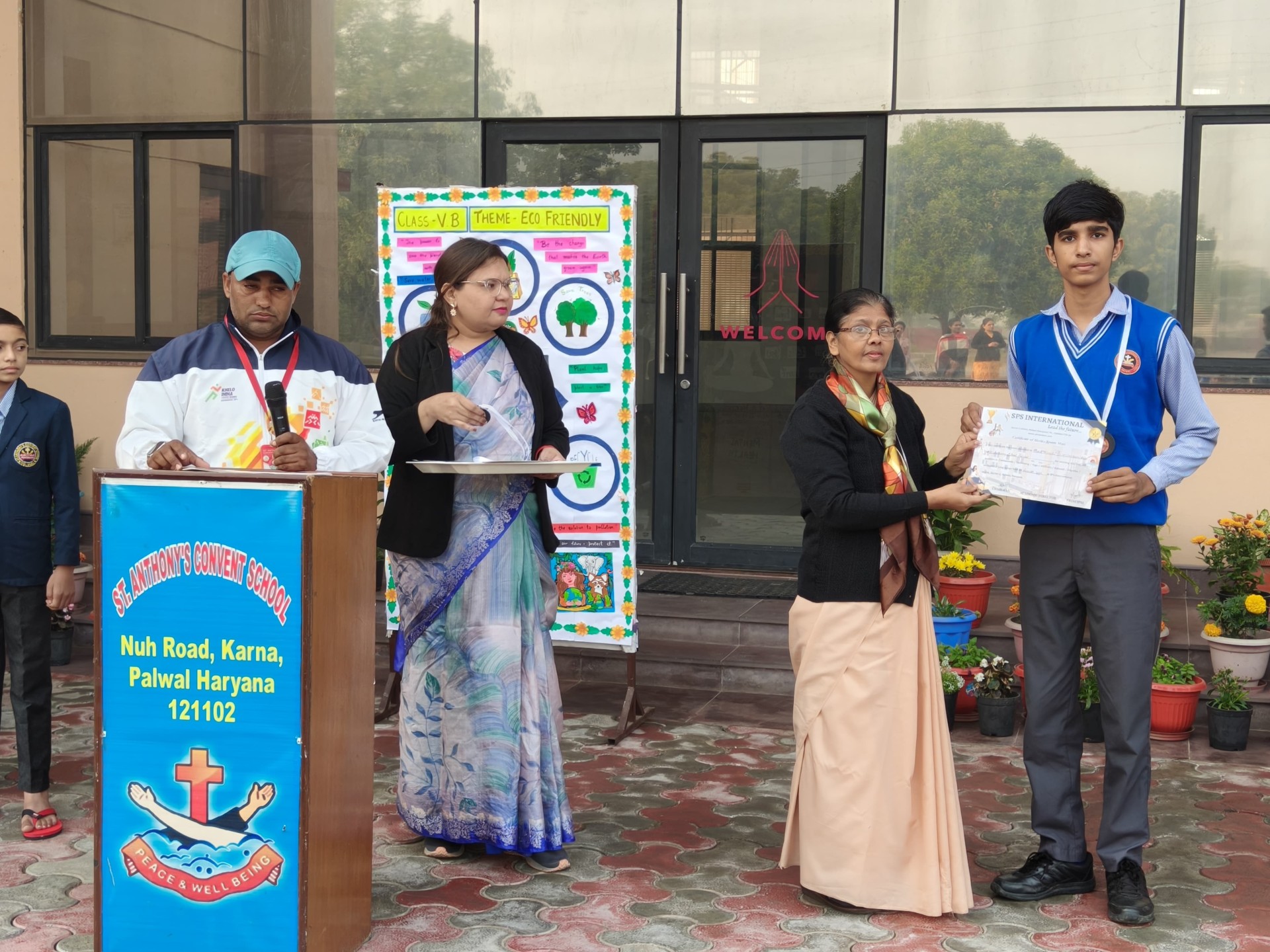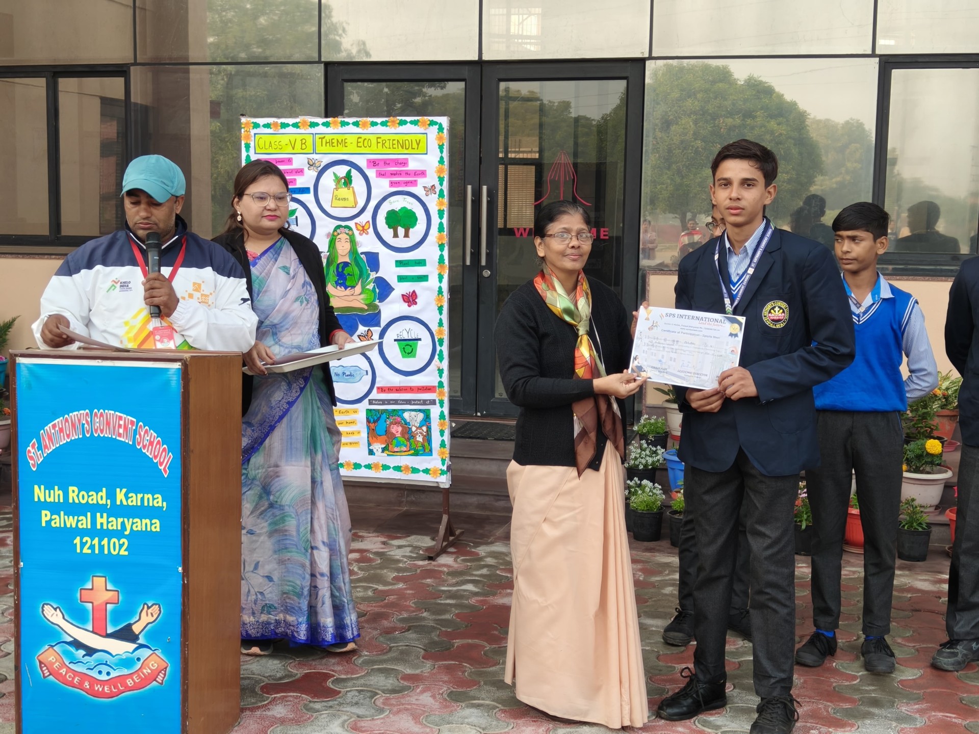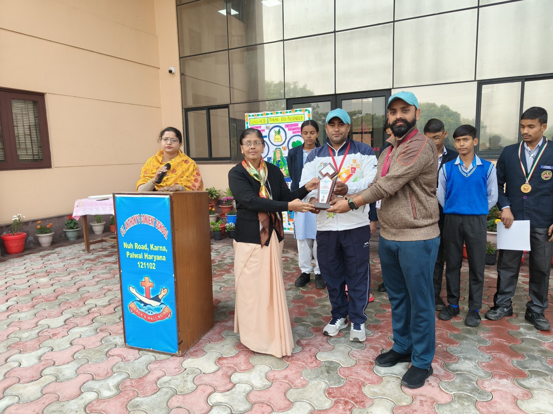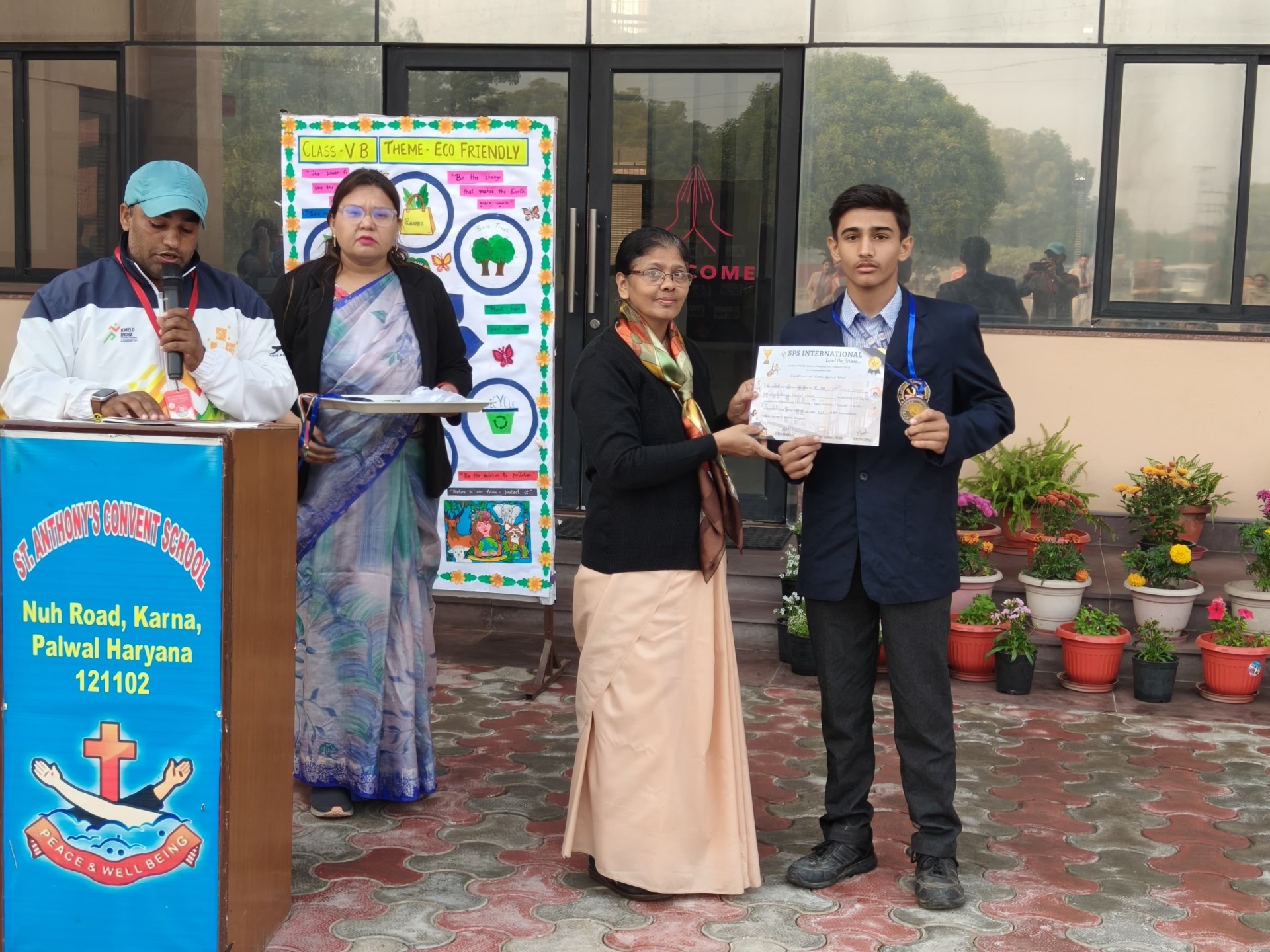 Description: 4th Inter School Sports Meet SPS International School Palwal . On 17 To 19 November2025. The 4th Inter School Sports Meet was hosted by SPS International School Palwal. 115 schools and approximately 3000 athletes took part. Our St.Anthonys Convent School participated in Athletes teams in the Under 14 Under 17 and Under 19 categories for both boys and girls and performed commendably. Medal Highlights - Srishti Dagar Bronze 100m (U17 girls) - Relay (Srishti Dagar Tanisha Varsha Nilakshi) Bronze 4-100m (U17 girls) - Rachit Silver 100m (U17 boys) - Rachit Silver Long Jump (U17 boys) - Gaurav Kumar Gold Long Jump (U19 boys) - Relay (Rachit Nishant Neer Kundu Manit) Bronze 4-100m (U17 boys) Participants Shagun Harshit Lakshay Jahul Jatin. Overall Performance The team Won 1 Gold 2 Silver and 9 Bronze medals demonstrating strong skill and sportsmanship across all categories. Acknowledgements A Special thanks the Participants of St. Anthonys Convent School Karna Palwal the Principal Sister Abha teachers parents for their encouragement and cooperation. Congratulations to all medalists and participants for representing St. Anthonys Convent School with pride.