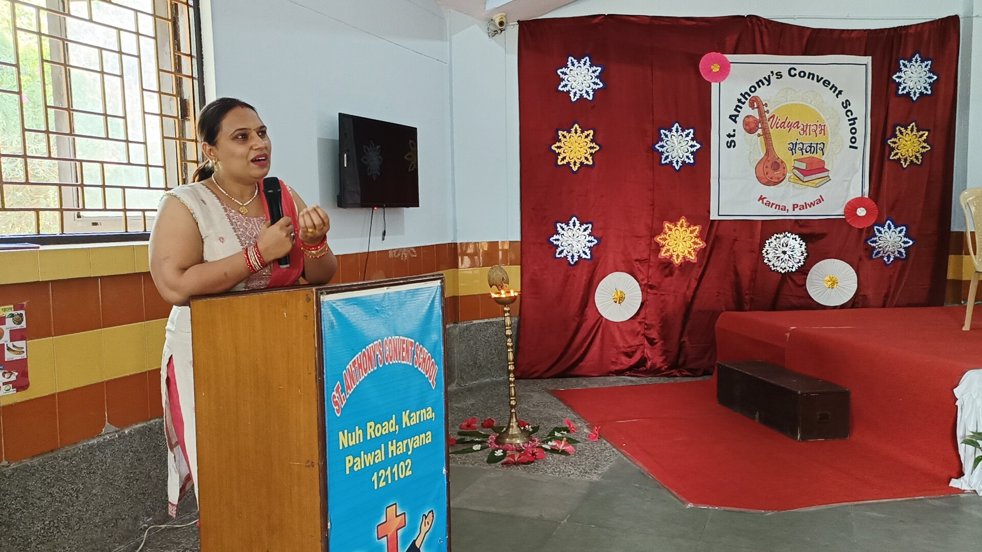 Description: The Vidyaarambh Ceremony was held on 7th April 2025 with great enthusiasm. The event began with a ribbon cutting followed by a traditional welcome with Tilak and band. A brief introduction was given leading to the lighting of the lamp and prayer reading from the Holy Book. Class-1 girls presented a melodious prayer song and an introduction about CFMSS and Mother Seraphina was shared. Energetic dance performances by UKG and Class-1 students added joy to the event. Information about the significance of Vidyaarambh was explained followed by teachers sharing rules and guidelines for parents. The highlight of the day was the Vidyaarambh ceremony where children were guided to write their first letters. The program concluded with a vote of thanks and the National Anthem. The ceremony was a beautiful blend of tradition culture and the joy oflearning.