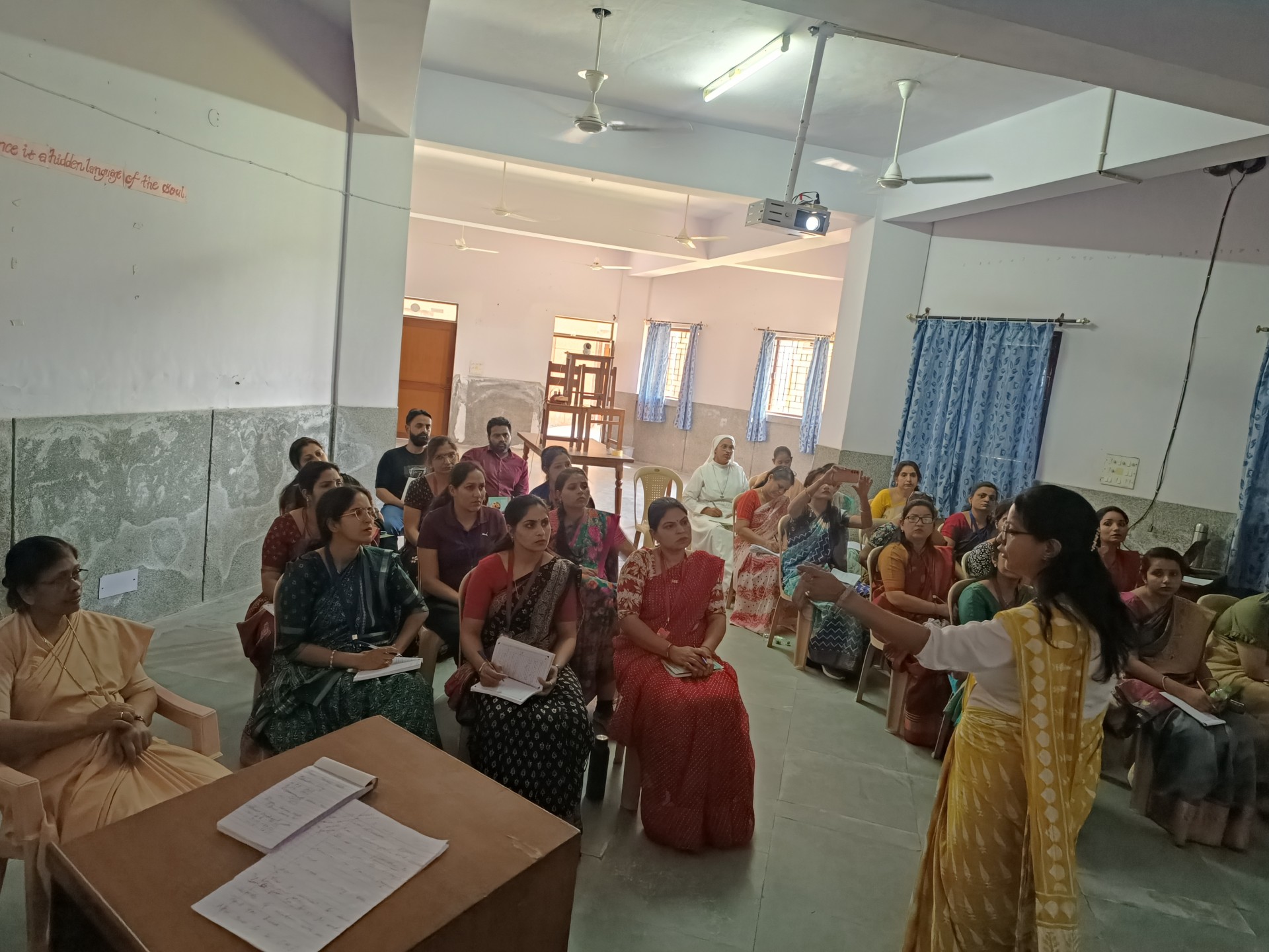 Description: Report on Teachers Seminar Conducted by CBSE (Session 202526) During the academic year 202526 several seminars and capacity-building programs were conducted by the Central Board of Secondary Education (CBSE) for teachers both within our school and in other CBSE-affiliated institutions. The objective of these seminars was to enhance the professional skills of teachers and to ensure quality education aligned with the National Education Policy (NEP) 2020. The sessions covered a variety of important topics such as competency-based learning classroom management integration of art and technology in education inclusive education and mental well-being of students. Teachers actively participated in these workshops sharing their experiences and learning innovative teaching methodologies to make classroom learning more effective and student-centered. In our school interactive in-house seminars were also held where trained teachers shared insights and strategies gained from CBSE training programs with their colleagues. These collaborative discussions helped in fostering teamwork and promoting best teaching practices across all subjects and grades. Our Principal Sr. Abha encouraged all teachers to continue engaging in such professional development programs to stay updated with the latest educational trends and pedagogical approaches. The series of seminars proved to be highly beneficial motivating teachers to adopt modern learner-focused techniques and contribute effectively towards holistic studentdevelopment.