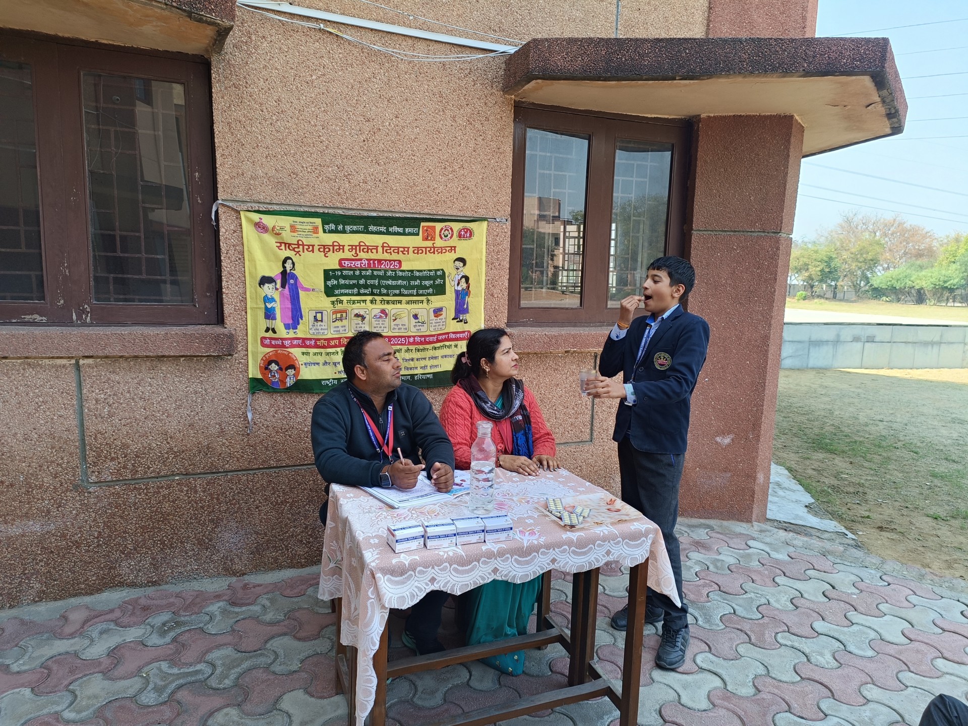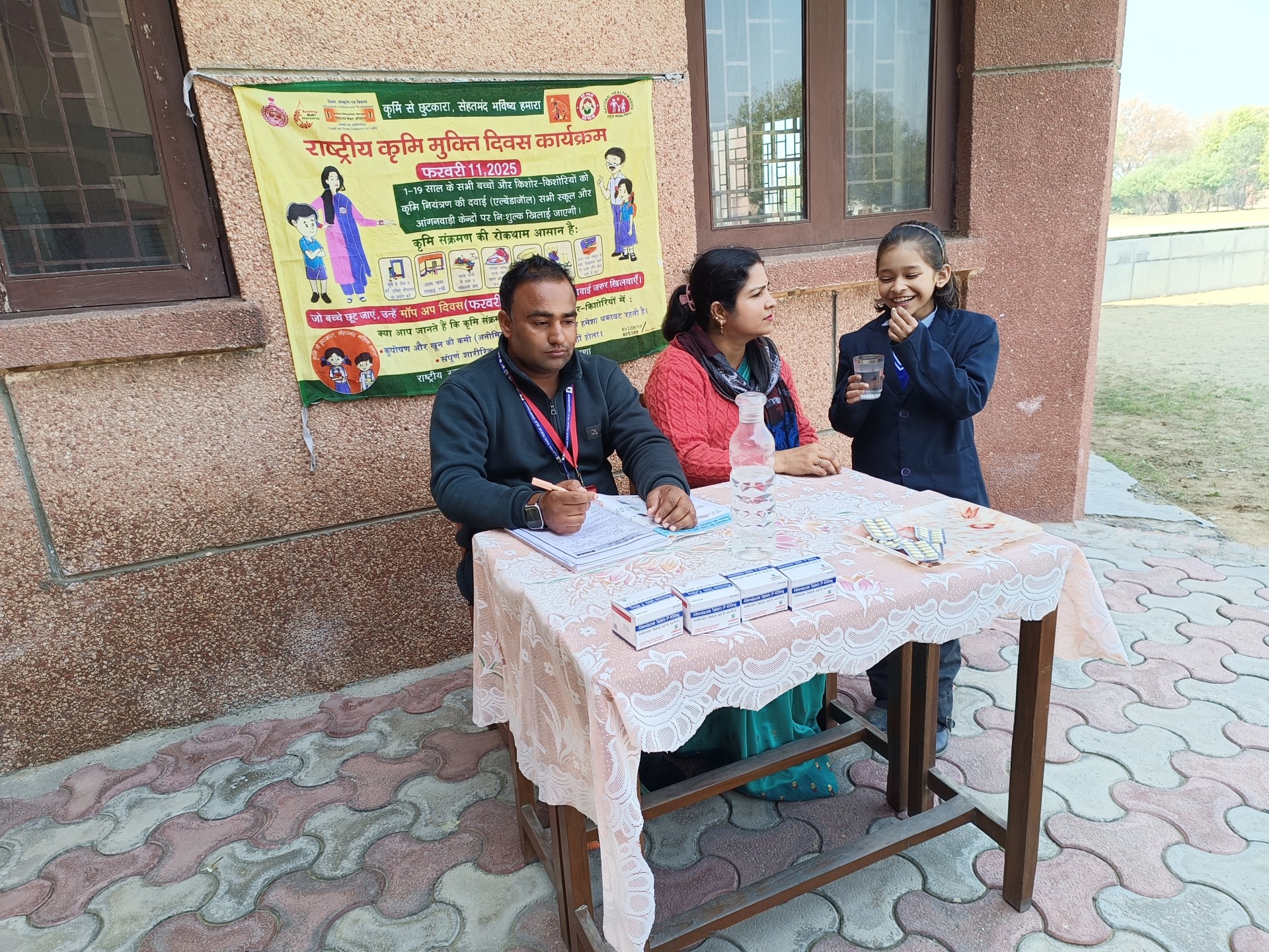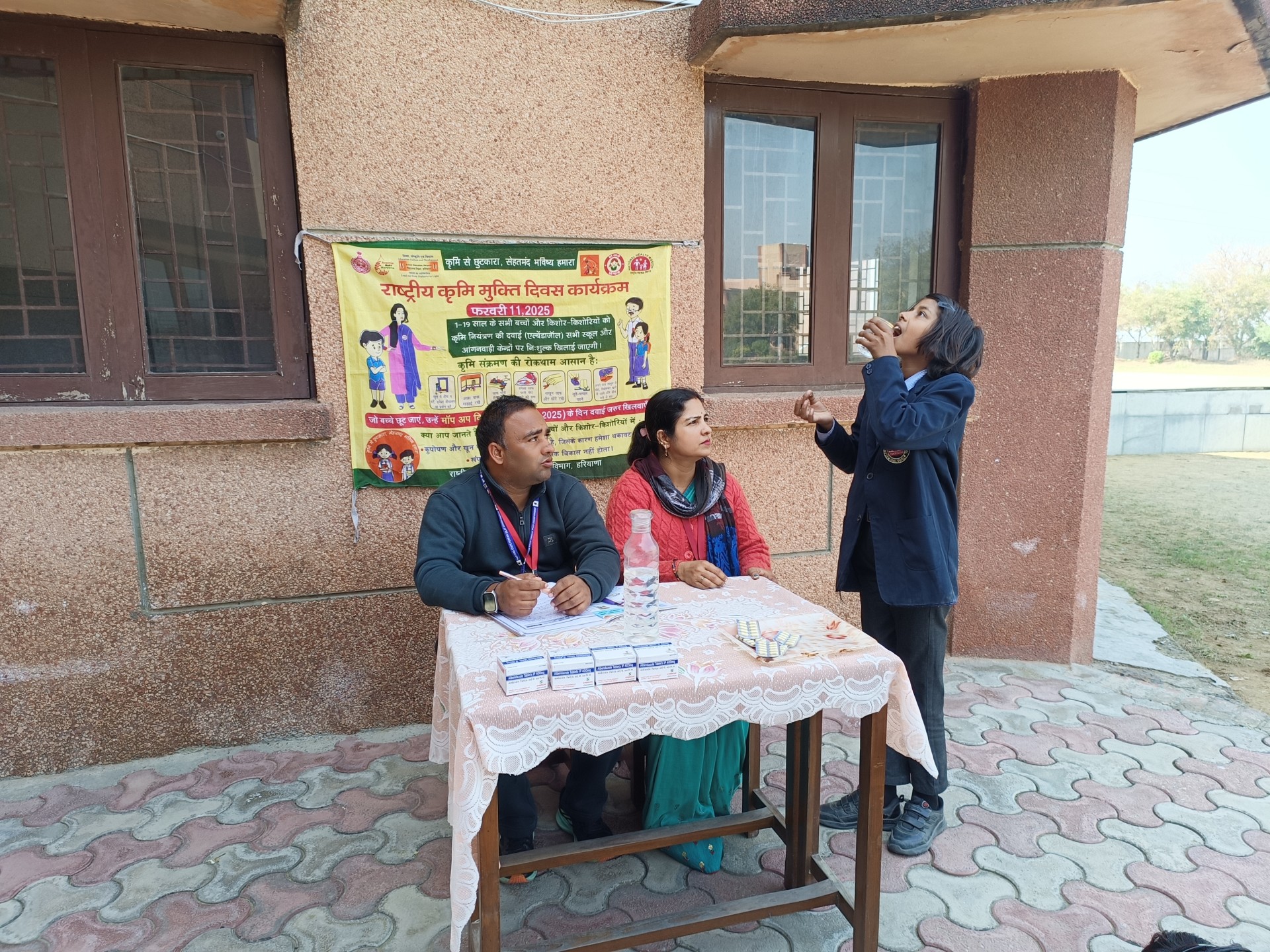 Description: As part of the governments health and nutrition initiative for school children the following medicines are regularly provided in our school: 1. Iron Tablets These are given daily to students. For students of Class 1 to 5 the iron tablets are provided in pink boxes. For students of Class 6 to 10 the iron tablets are provided in blue boxes. The main purpose of providing iron tablets is to prevent iron deficiency and anemia in children. 2. Albendazole Tablets These are given once every six months (biannually). This deworming tablet is administered to ensure that children remain free from intestinal worms which can affect their nutrition and overall health. The school ensures timely and proper distribution of these medicines as per the government guidelines contributing to better health and learning outcomes among students.
