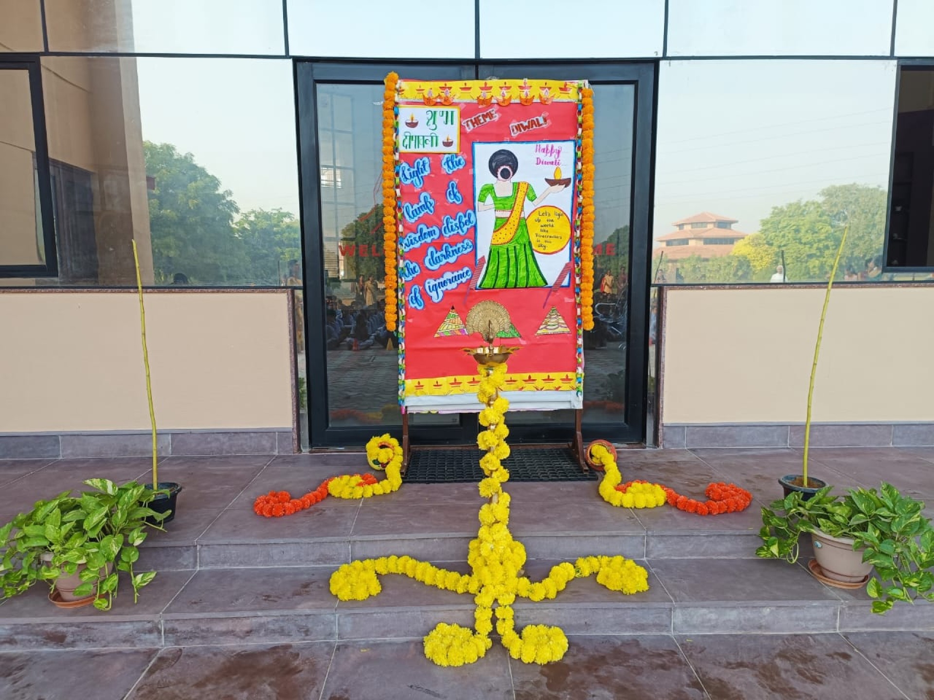 Description: Diwali Celebration Report Date: 29th October 2024 The Diwali celebration at our school was a grand success filled with joy enthusiasm and spiritual fervor. The event was organized by Class VII-A who presented a special assembly that included: Highlights of the Special Assembly 1. Spiritual Dance: A mesmerizing dance performance that showcased the students talent and devotion. 2. Act on Removing Negativity: A thought-provoking act that conveyed the importance of positivity and goodness in our lives. 3. Special Message by Principal: Our Principals inspiring message emphasized the significance of Diwali and its values. Diwali Activities 1. Card Making (Classes I-III): Students created beautiful Diwali cards showcasing their creativity and artistic skills. 2. Diya Decoration (Classes IV-V): Students decorated diyas with colorful designs and patterns adding to the festive atmosphere. 3. Toran Making (Classes VI-VIII): Students created vibrant torans which adorned the school premises. 4. Rangoli (Class IX-X Housewise): Students designed stunning rangolis showcasing their teamwork and artistic talents. Conclusion The Diwali celebration was a wonderful event that brought our students teachers and staff together. We are proud of our students creativity talent and enthusiasm. The event was a great success and we look forward to many more suchcelebrations.