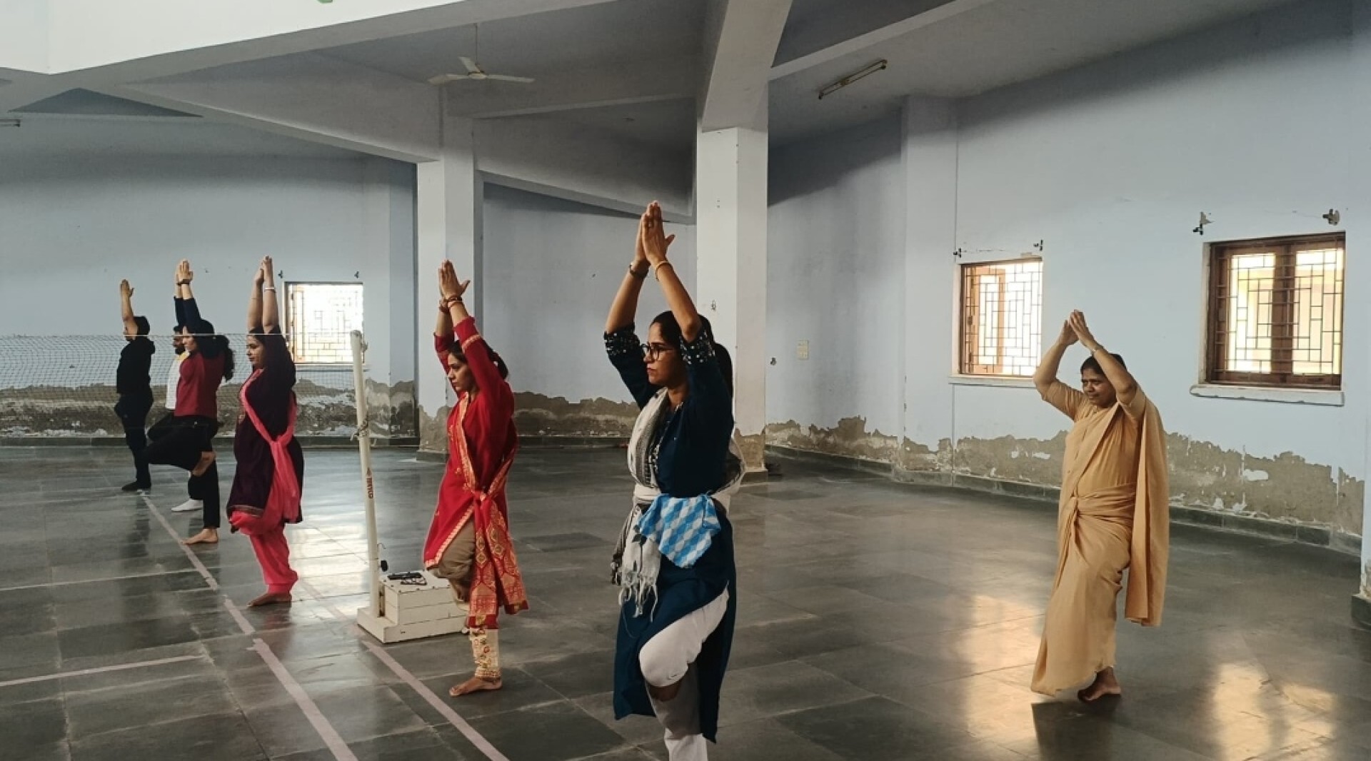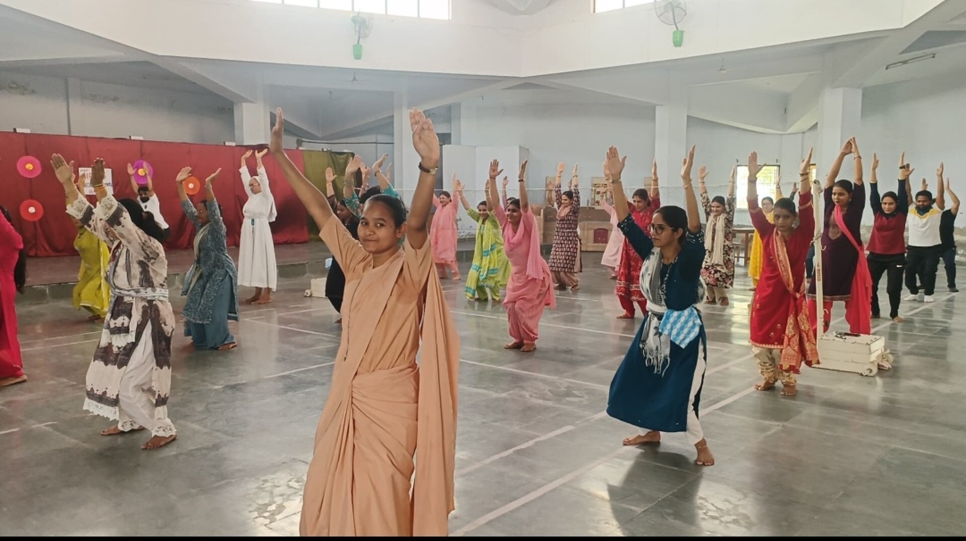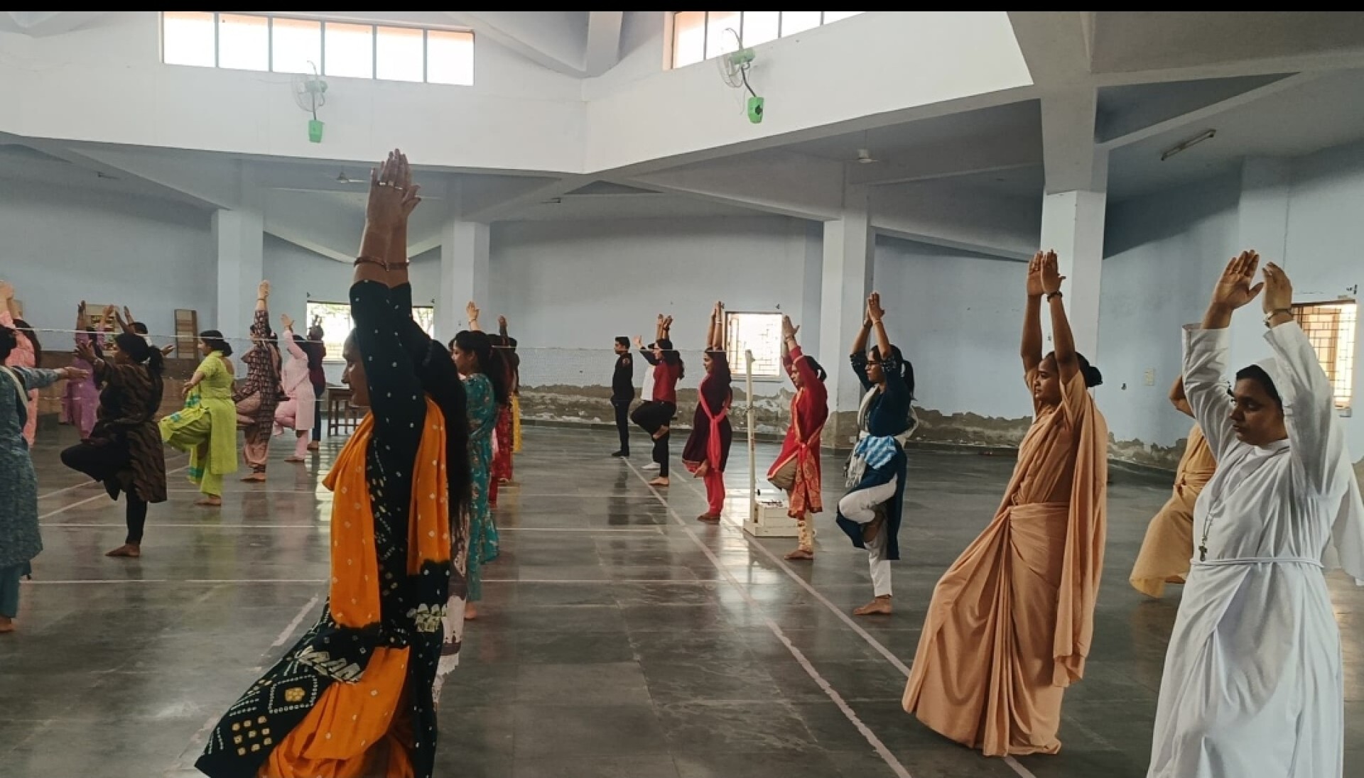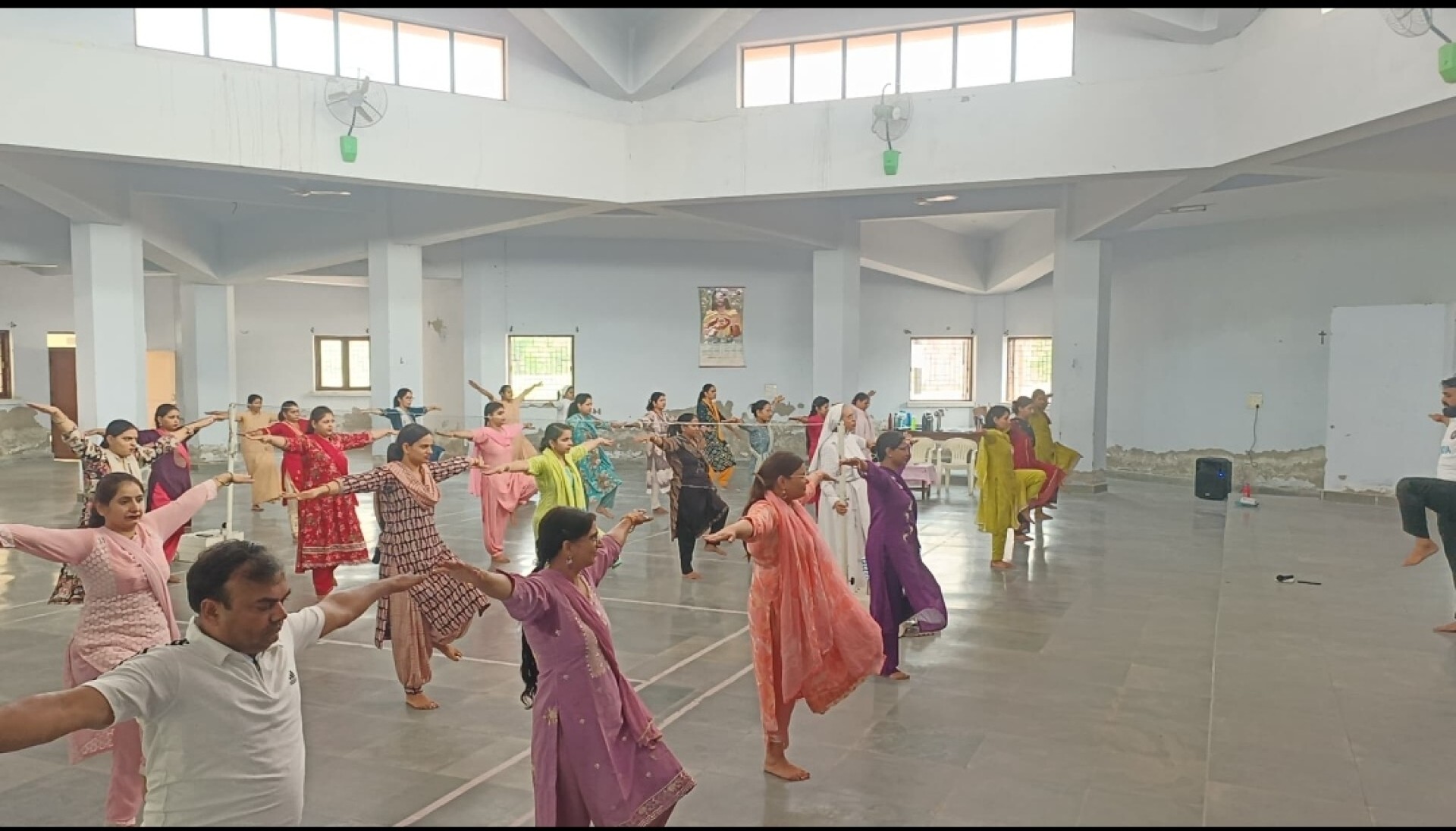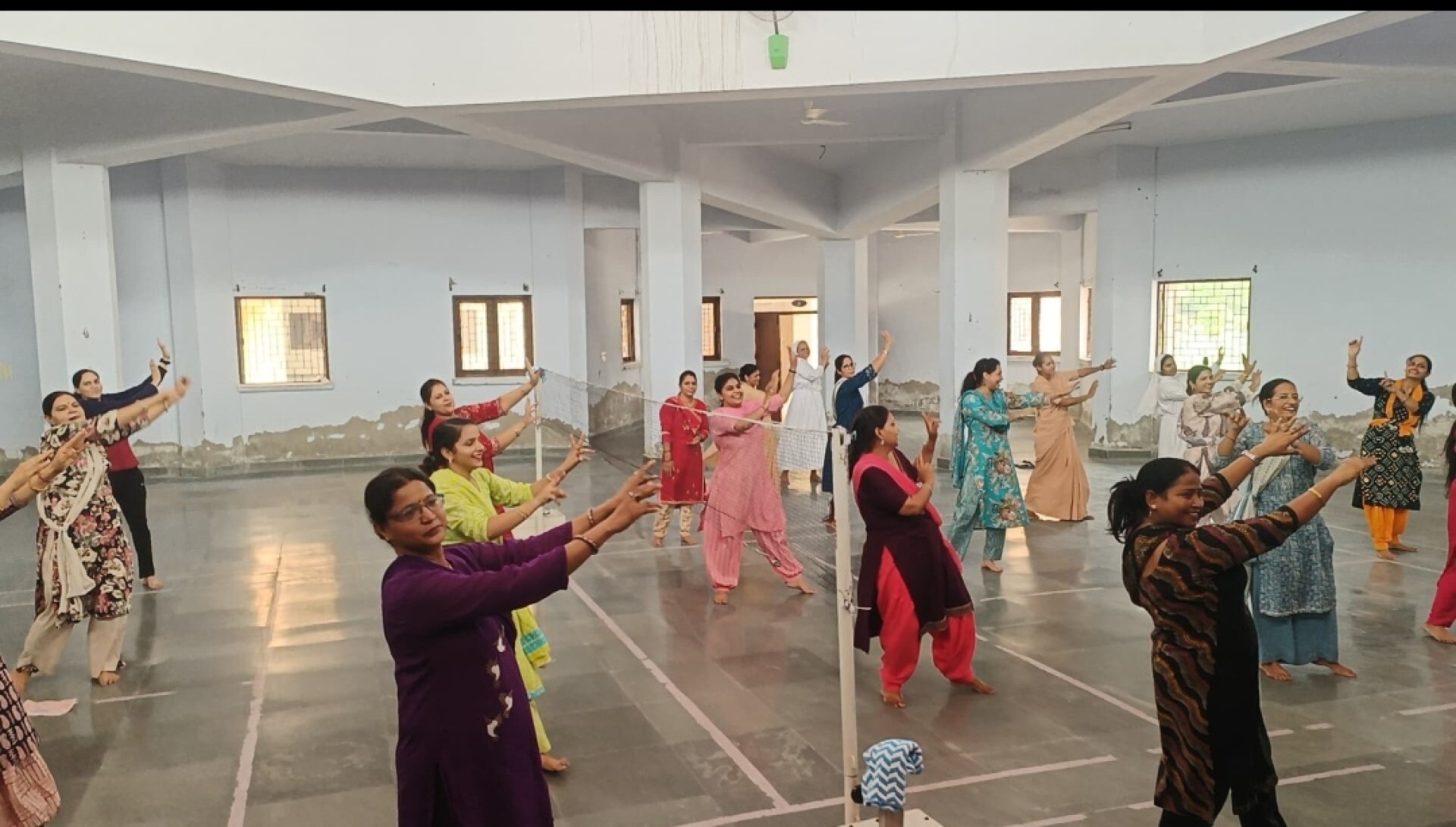 Description: The venue of the event is the multipurpose hall. To promote wellness and relaxation a Teachers Recreational Games session was organized just before the summer break. The event included yoga Zumba and fun games aimed at reducing stress and boosting team spirit among the teaching staff. (A)Activities: 1) Yoga: Guided breathing exercises basic asanas and relaxation techniques. 2) Zumba: Energetic dance session to lively music promoting fitness and fun. 3) Games: Musical chairs tug of war and balloon relay added excitement and laughter. (B)Outcome: Teachers enjoyed the sessions thoroughly and appreciated the refreshing break. It was a great way to end the term on a positive healthy note. The school plans to organize such events more frequently.