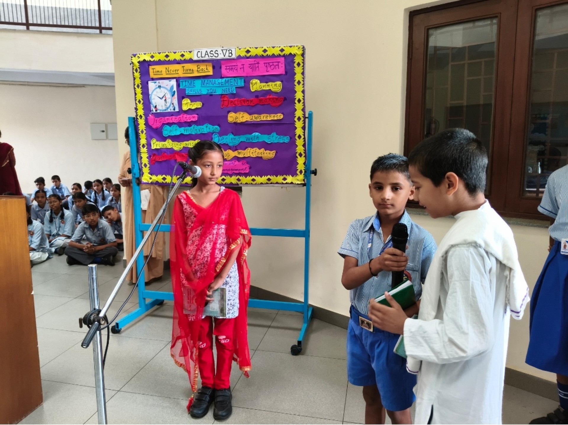 Description: School Report: Gratitude to Our Guides Week Date: August 25 - August 29 2025 Theme: Gratitude to Our Guides This report covers the activities and success of the Gratitude to Our Guides school week. The weeks aim was to help students express appreciation for their mentors teachers and parents. Summary of Activities: Monday (English Poem): Students wrote and recited poems about gratitude. Tuesday (Poem with Props): Students performed their poems using props to enhance their message. Wednesday (Hindi Kavita): The focus shifted to Hindi poems showcasing appreciation for the language and its literary traditions. Thursday (English Poem Action Song): A day of lively expression with students reciting poems and performing a choreographed action song. Friday (Prayer): The week ended with a quiet prayer assembly to reflect and give thanks. Conclusion: The week was a great success fostering creativity and a positive appreciative atmosphere. The diverse activities encouraged students to express gratitude in various ways strengthening our schoolcommunity.