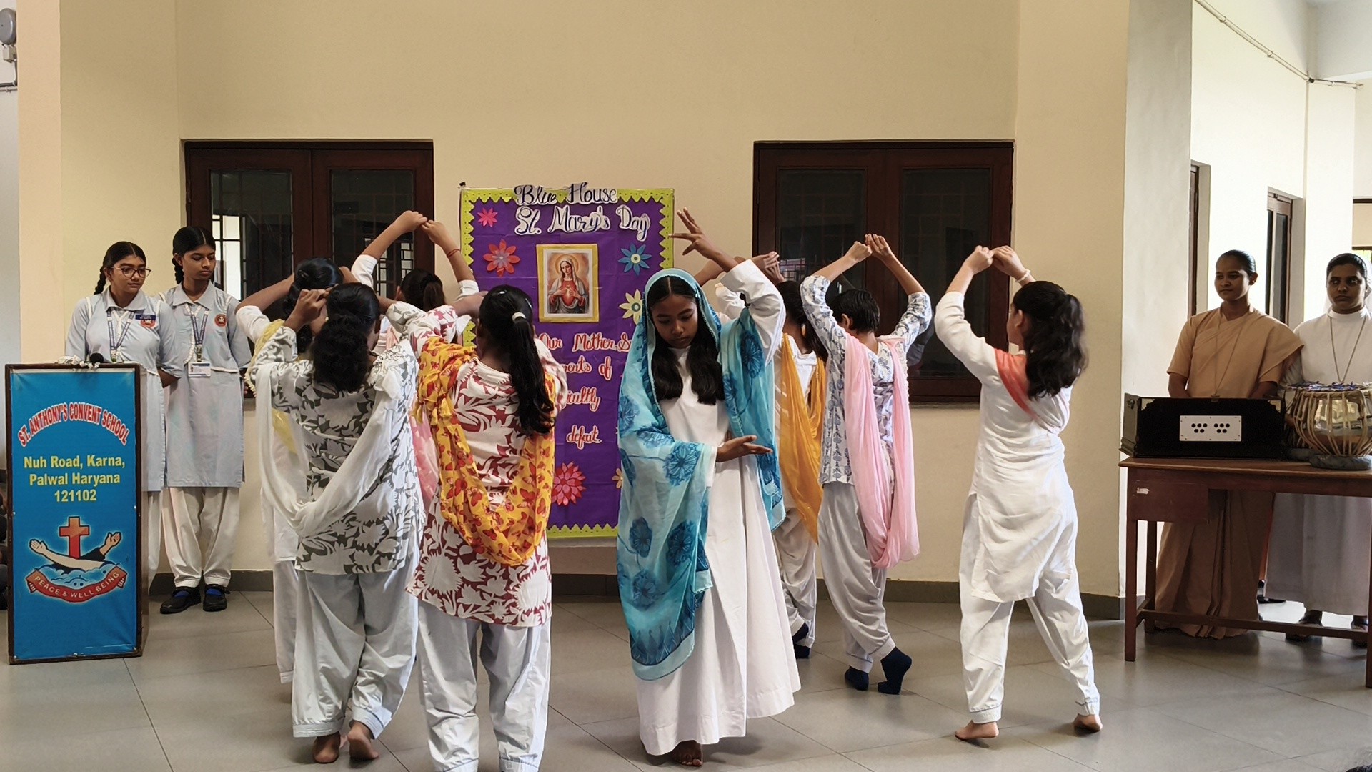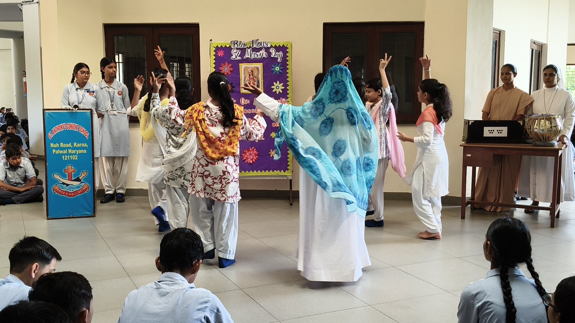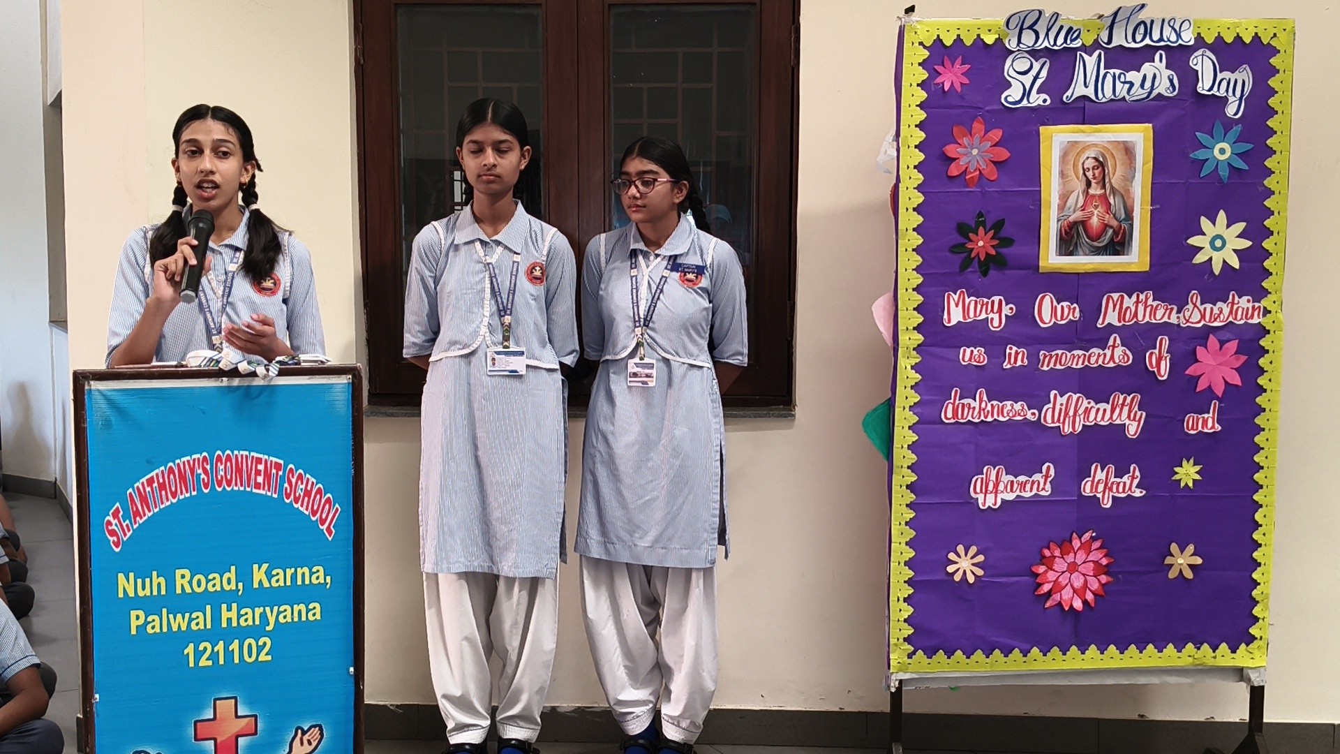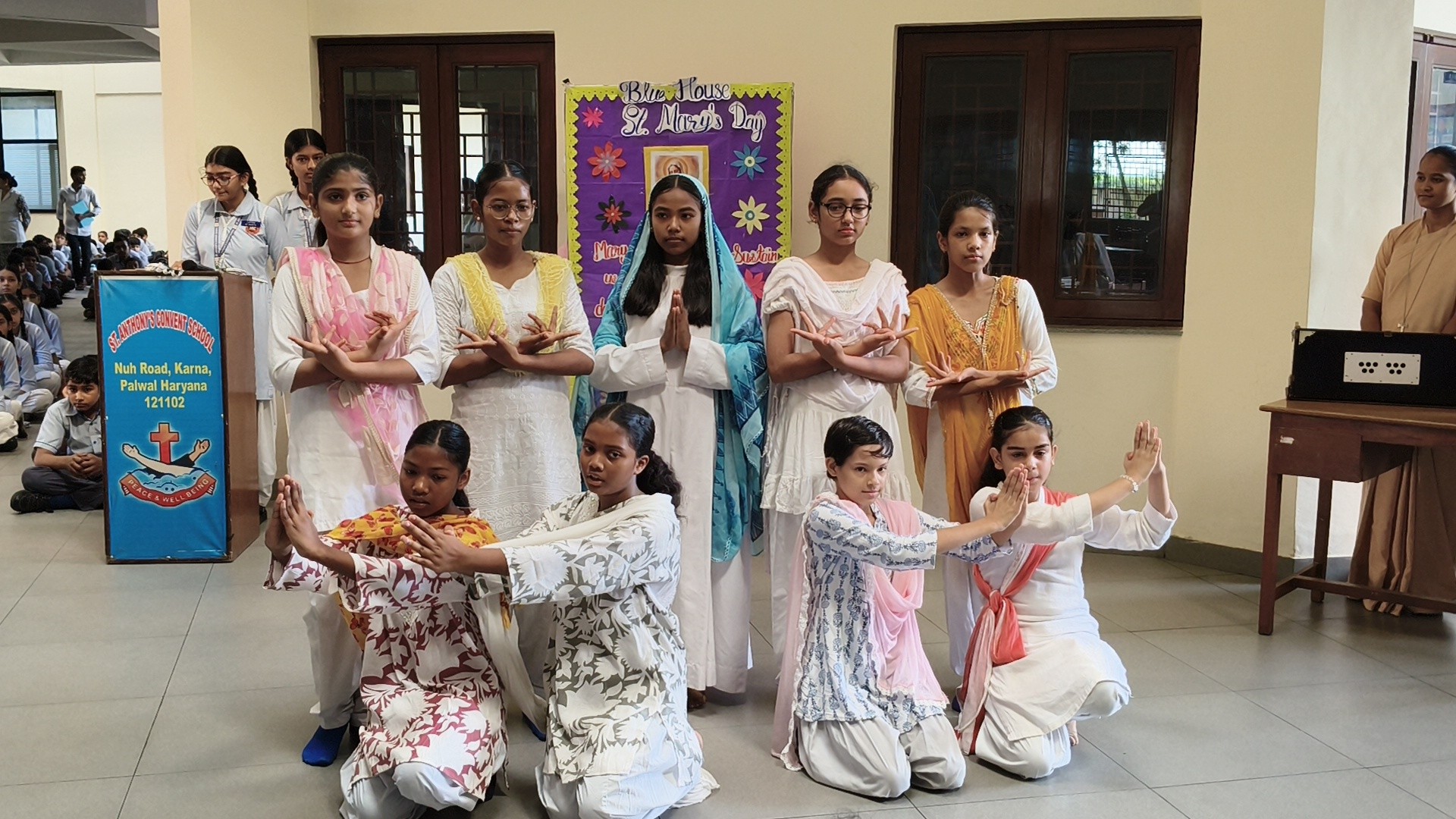 Description: St. Marys Day Celebration Report Date: 8th September 2025 Venue: Assembly Ground St. Marys Day was celebrated with great devotion and enthusiasm on 8th September 2025 in our school. The programme began with an introduction highlighting the life and virtues of Mother Mary emphasizing her compassion humility and unwavering faith. A speech on Mother Mary was delivered by one of the students beautifully expressing her role as a guiding light and source of inspiration for millions across the world. This was followed by a graceful dance performance presented by the students symbolizing love peace and devotion. The second part of the programme focused on the theme Save Girl Child. A short introduction was given to create awareness about the importance of educating and empowering girls. Students also presented a touching poem on Save Girl Child conveying a powerful message on valuing and protecting the girl child in society. The celebration concluded with a message encouraging everyone to follow