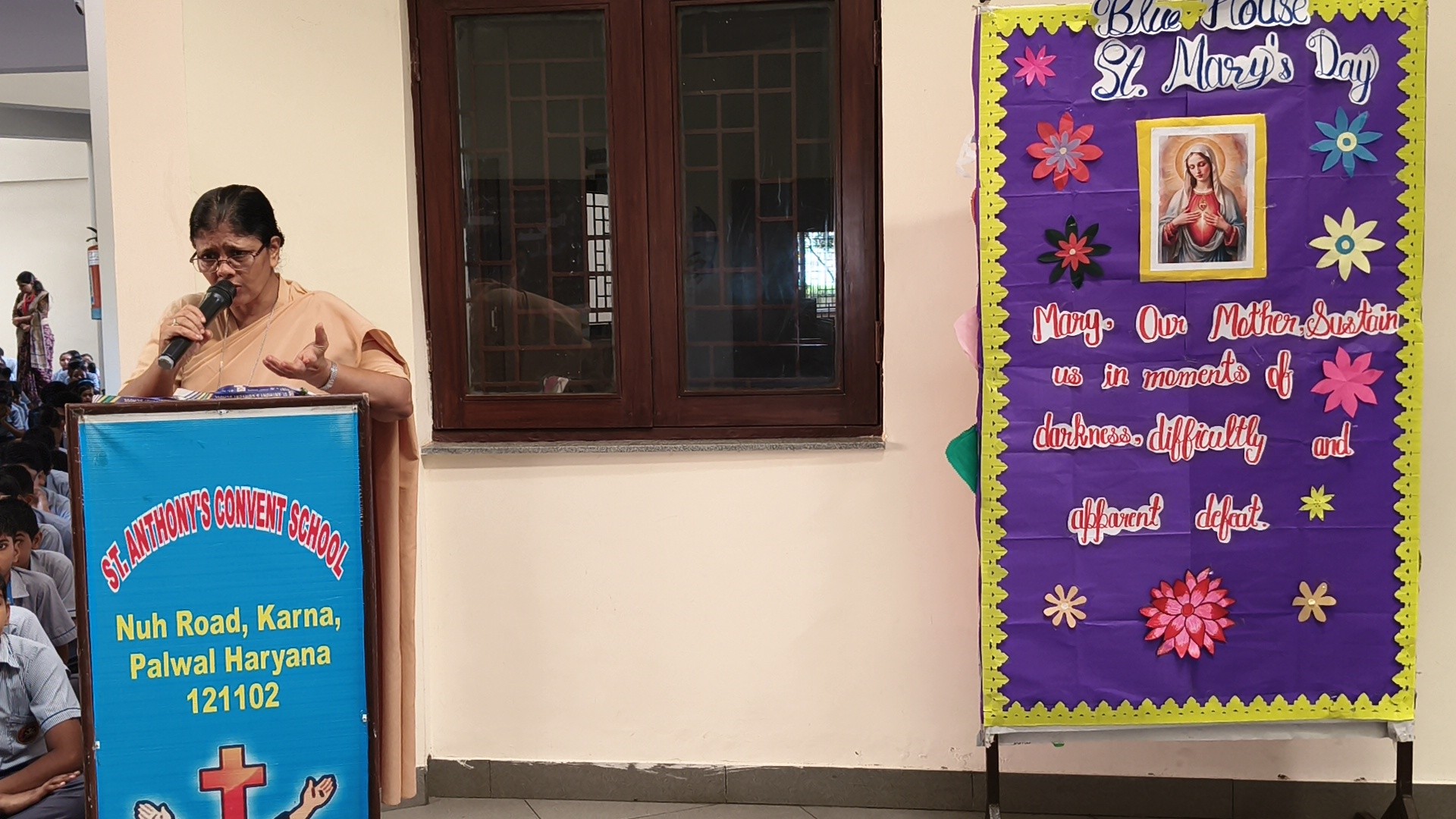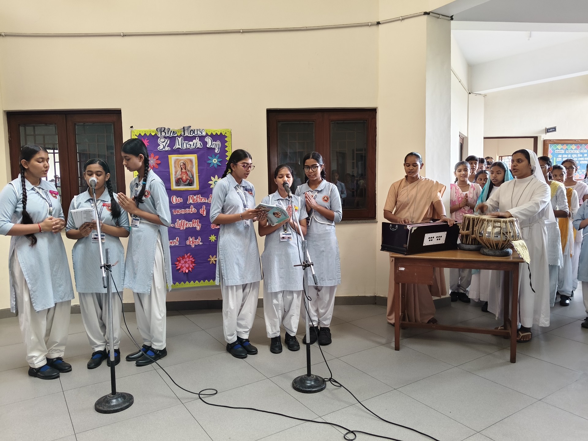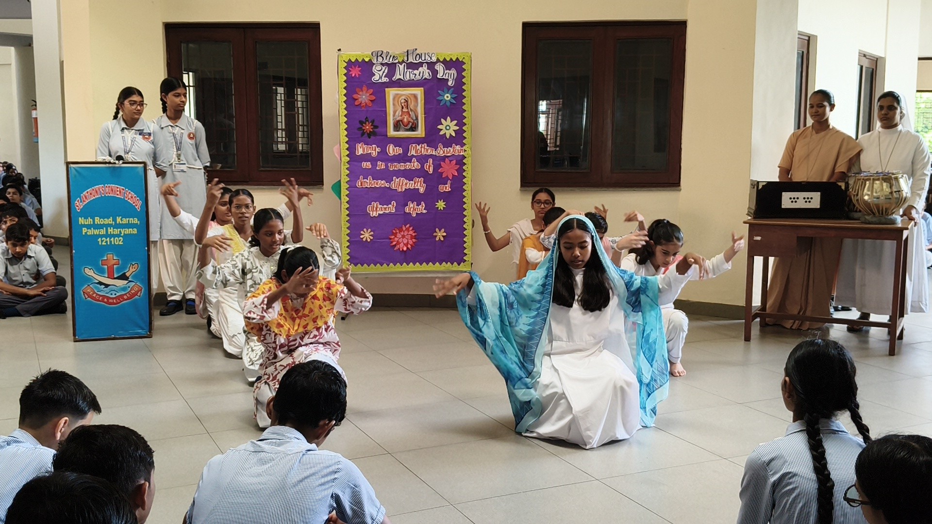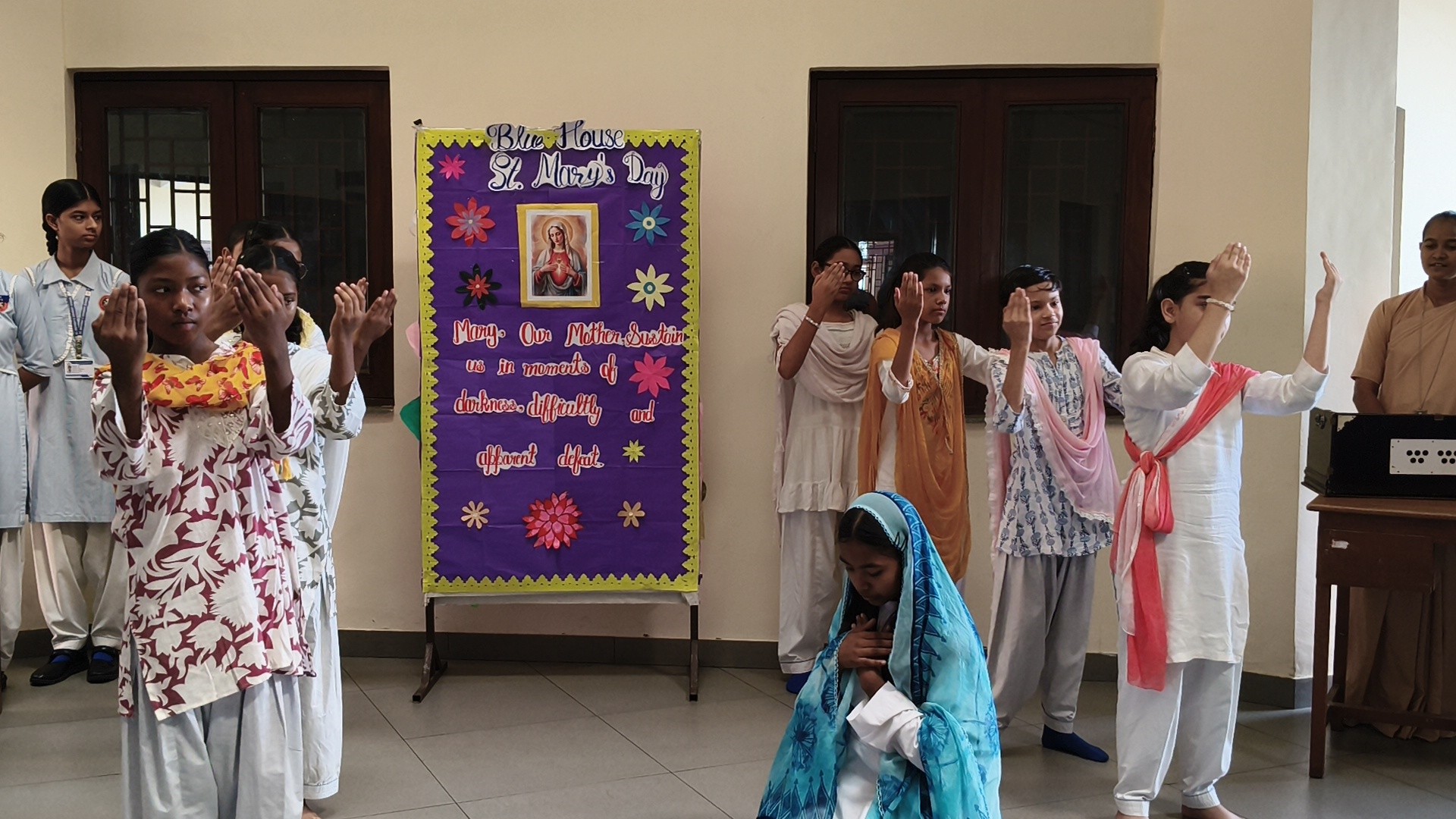 Description: St. Marys Day Celebration Report Date: 8th September 2025 Venue: Assembly Ground St. Marys Day was celebrated with great devotion and enthusiasm on 8th September 2025 in our school. The programme began with an introduction highlighting the life and virtues of Mother Mary emphasizing her compassion humility and unwavering faith. A speech on Mother Mary was delivered by one of the students beautifully expressing her role as a guiding light and source of inspiration for millions across the world. This was followed by a graceful dance performance presented by the students symbolizing love peace and devotion. The second part of the programme focused on the theme Save Girl Child. A short introduction was given to create awareness about the importance of educating and empowering girls. Students also presented a touching poem on Save Girl Child conveying a powerful message on valuing and protecting the girl child in society. The celebration concluded with a message encouraging everyone to follow