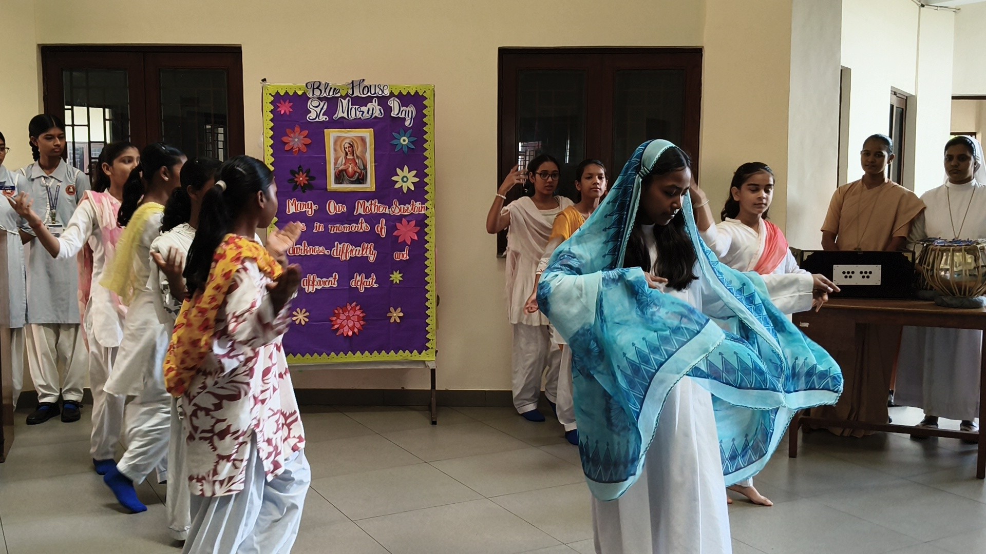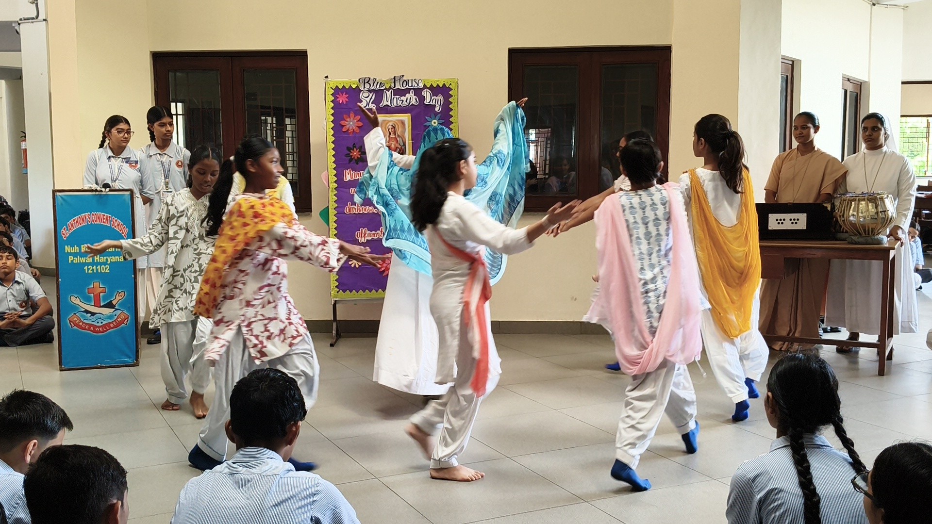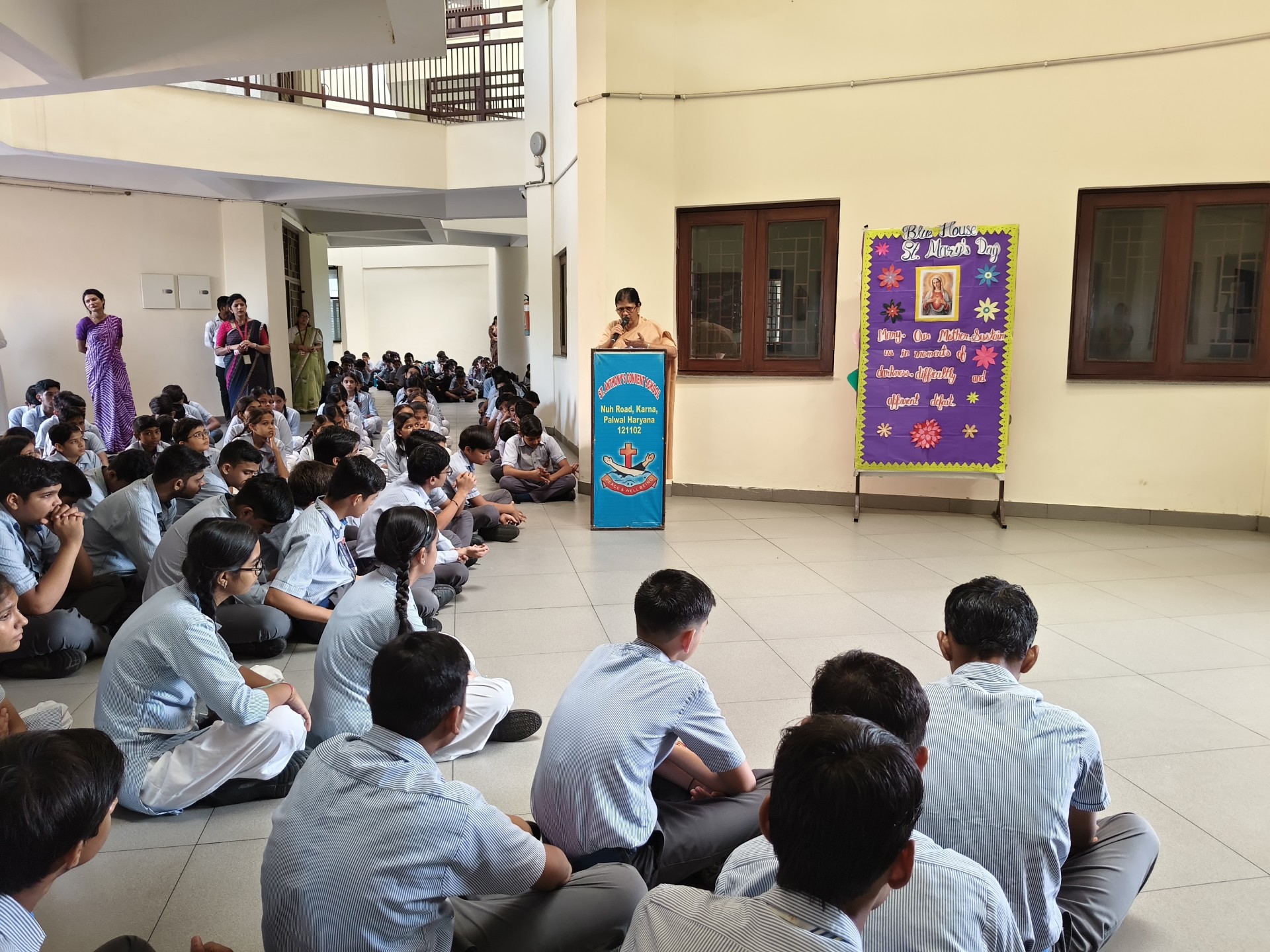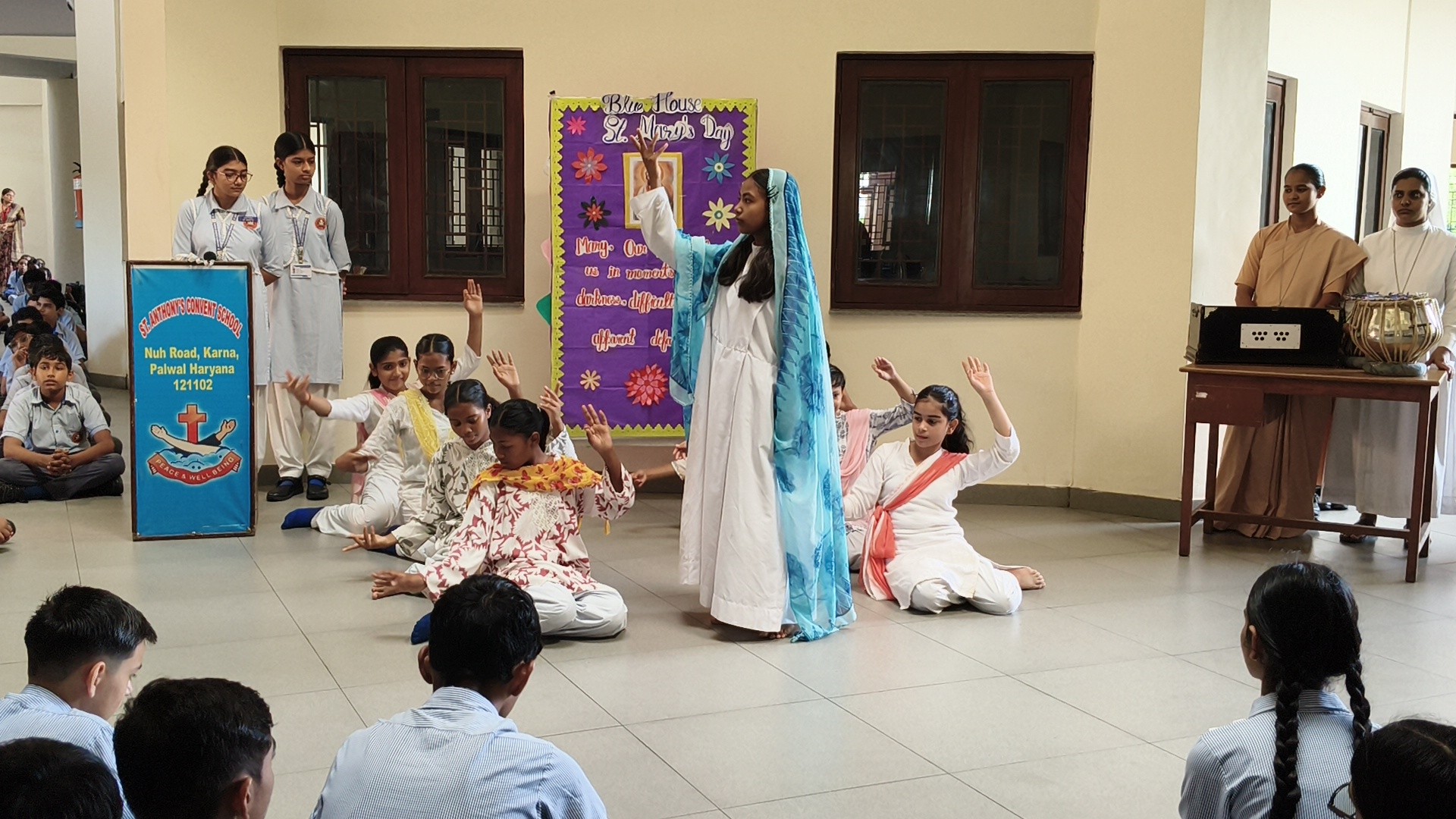 Description: St. Marys Day Celebration Report Date: 8th September 2025 Venue: Assembly Ground St. Marys Day was celebrated with great devotion and enthusiasm on 8th September 2025 in our school. The programme began with an introduction highlighting the life and virtues of Mother Mary emphasizing her compassion humility and unwavering faith. A speech on Mother Mary was delivered by one of the students beautifully expressing her role as a guiding light and source of inspiration for millions across the world. This was followed by a graceful dance performance presented by the students symbolizing love peace and devotion. The second part of the programme focused on the theme Save Girl Child. A short introduction was given to create awareness about the importance of educating and empowering girls. Students also presented a touching poem on Save Girl Child conveying a powerful message on valuing and protecting the girl child in society. The celebration concluded with a message encouraging everyone to follow