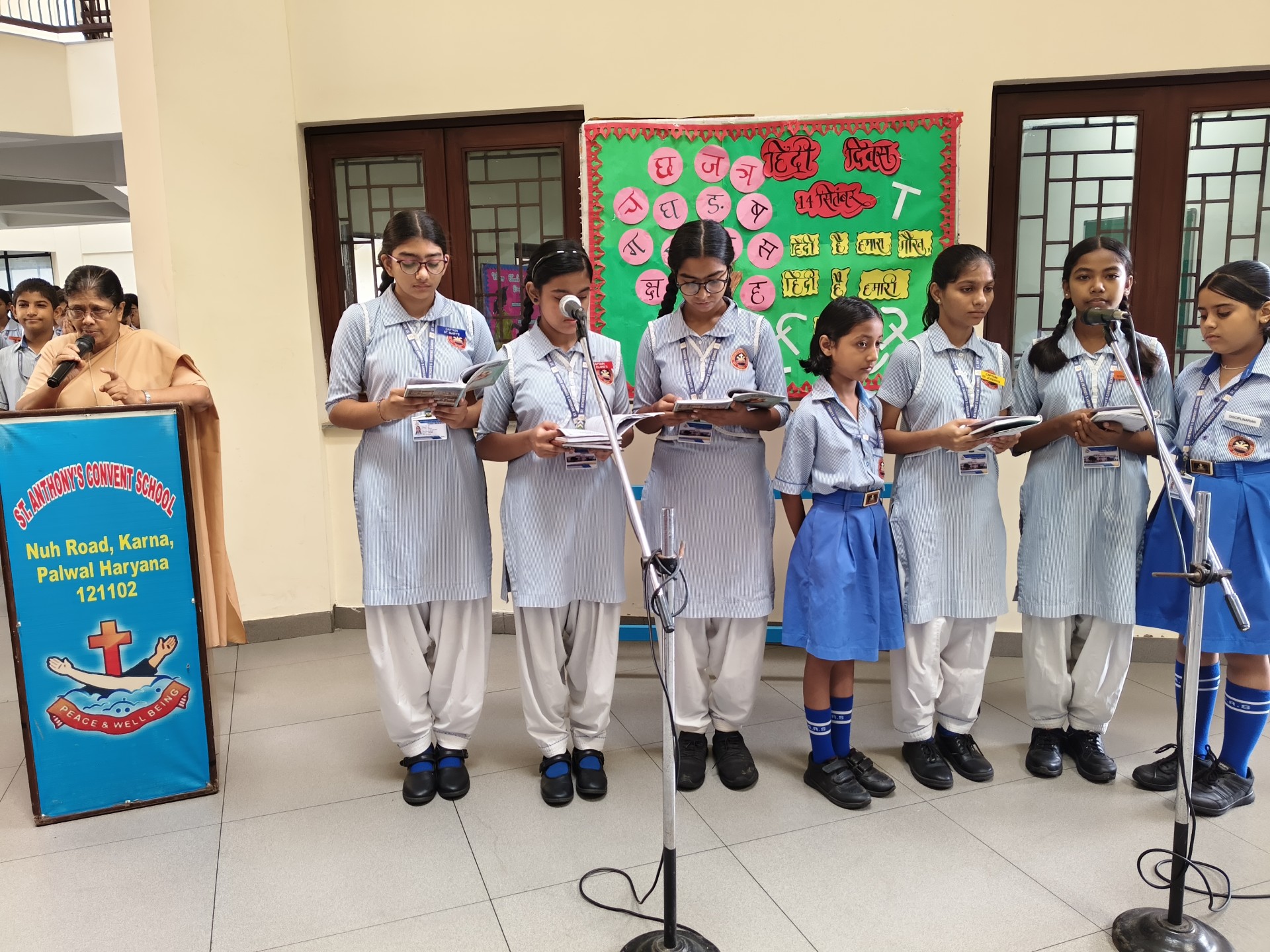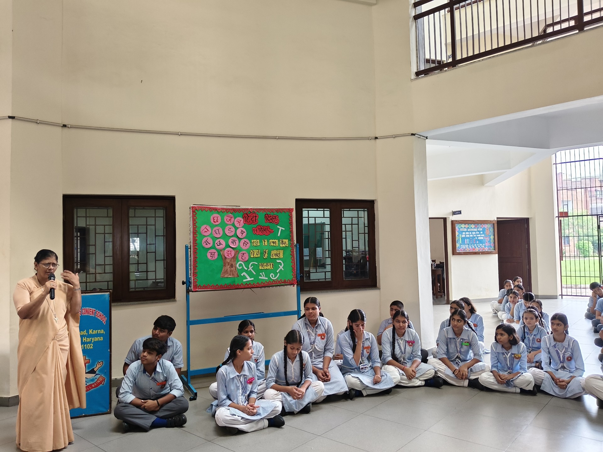 Description: Hindi Diwas Celebration Dates: 6th 8th September 2025 Venue: School Campus To mark the celebration of Hindi Diwas a series of activities were organized in the school on 6th and 8th September 2025 to promote and encourage the use of the Hindi language among students. The activities aimed to develop language skills confidence and appreciation for Hindi literature. On 6th September the following competitions were held within the classrooms: (Handwriting Competition): For Classes IV and V students participated enthusiastically and showcased their neat handwriting and love for the language. (Doha Recitation): Conducted for Class VI students recited famous Dohas with proper pronunciation and expression. (Speech Competition): Organized for Classes VII and VIII students delivered inspiring speeches on various topics related to Hindi Diwas demonstrating confidence and fluency. On 8th September the celebrations continued with: (Poem Recitation Competition): For Classes I to III held outside the classrooms. Young learners recited beautiful poems with enthusiasm adding charm to the celebration. (Quiz Competition): A house-wise quiz was organized for Classes IX and X to test their knowledge of Hindi language grammar literature and culture. The quiz generated excitement and healthy competition among the participants. The Hindi Diwas celebrations created an engaging and enriching atmosphere in the school. Students participated actively and demonstrated their skills with great zeal. The event helped in fostering respect and love for the Hindi language among students ofallagegroups.