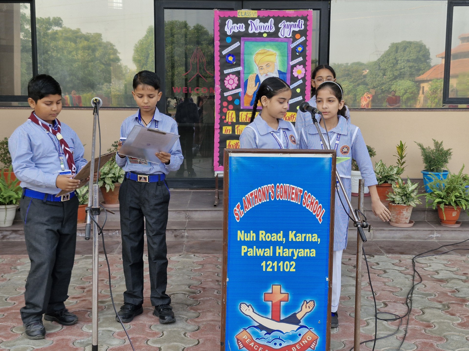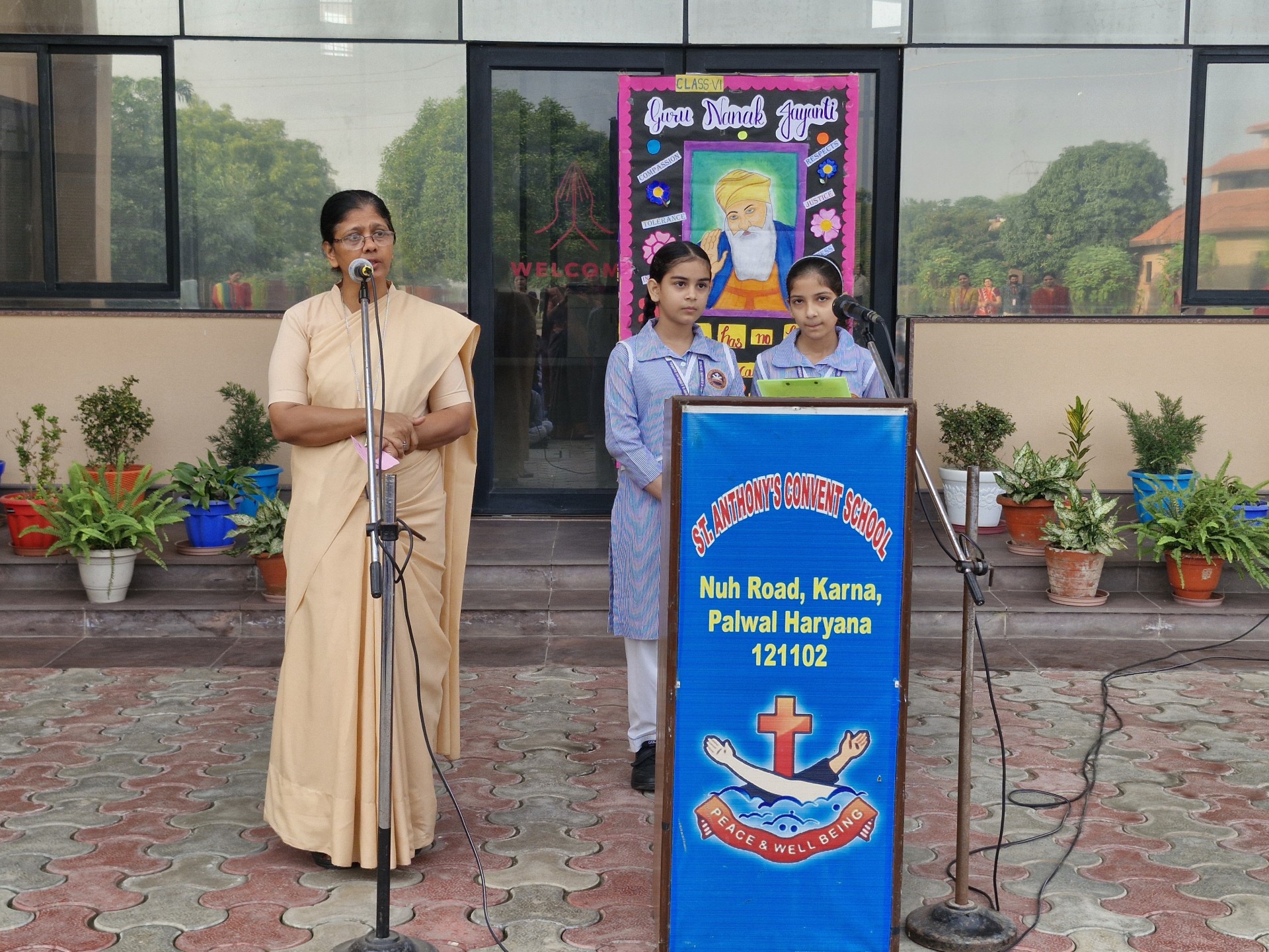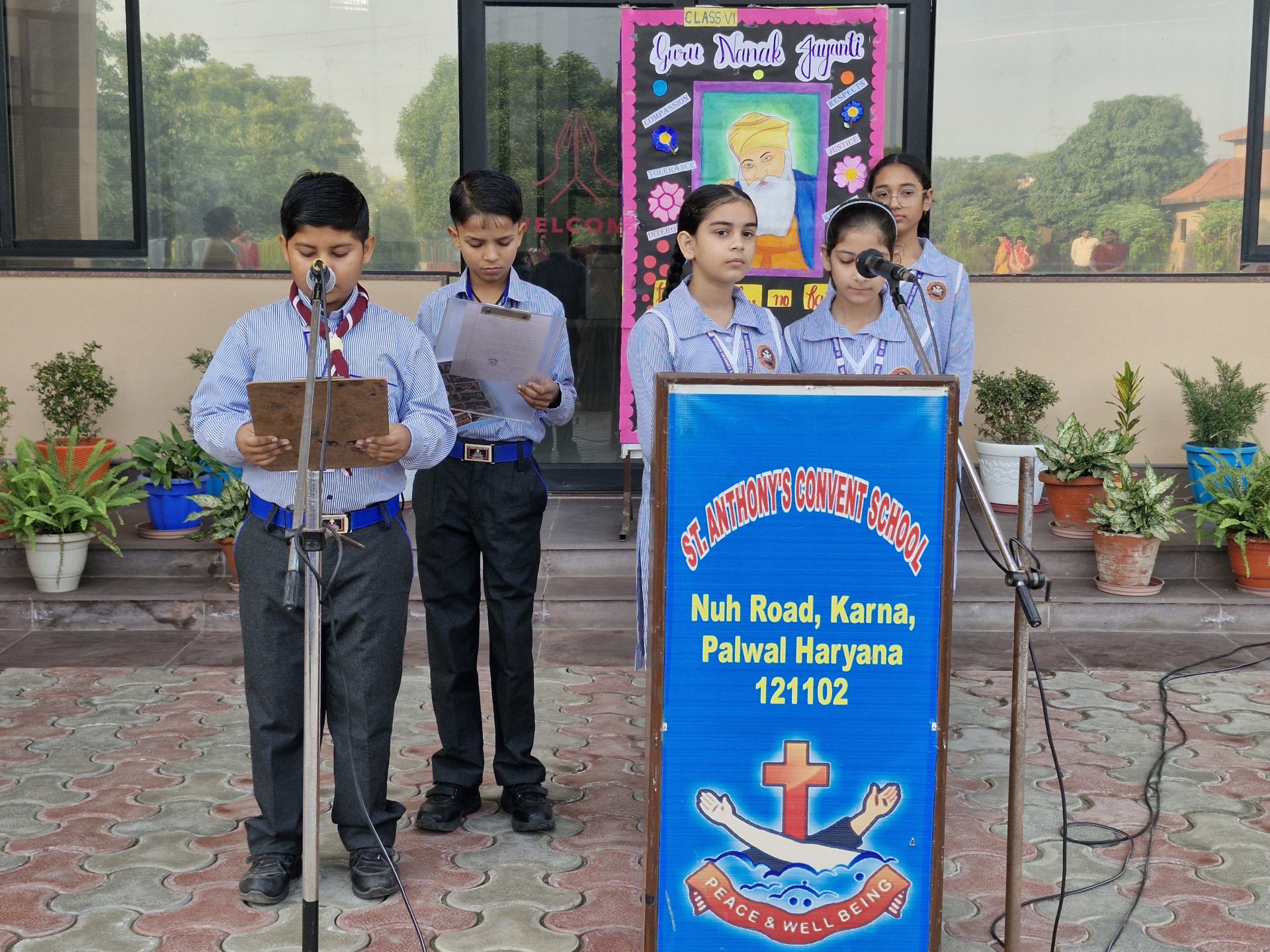 Description: Report on Guru Nanak Jayanti Celebration Date: 4th November 2025 Venue: School Assembly Ground Organized by: Class VI-B A special assembly was organized by Class VI-B on 4th November 2025 to celebrate the auspicious occasion of Guru Nanak Jayanti the birth anniversary of Guru Nanak Dev Ji the first Sikh Guru and founder of Sikhism. The program began with a warm introduction highlighting the teachings and life of Guru Nanak Dev Ji emphasizing the values of truth equality and service to humanity. This was followed by a poem recited by the students expressing devotion and gratitude towards the great Guru. A speech was delivered by a student shedding light on Guru Nanak Dev Jis message of peace harmony and brotherhood. The assembly also featured a graceful dance performance dedicated to the divine teachings of Guru Nanak Dev Ji which filled the atmosphere with devotion and joy. The program concluded with an inspirational message by Principal Sr. Abha who encouraged the students to follow the noble path shown by Guru Nanak Dev Ji and to live a life of kindness and humility. The celebration was a beautiful reminder of the eternal values of love and service to mankind leaving everyone with a sense of peace and spiritualenrichment.
