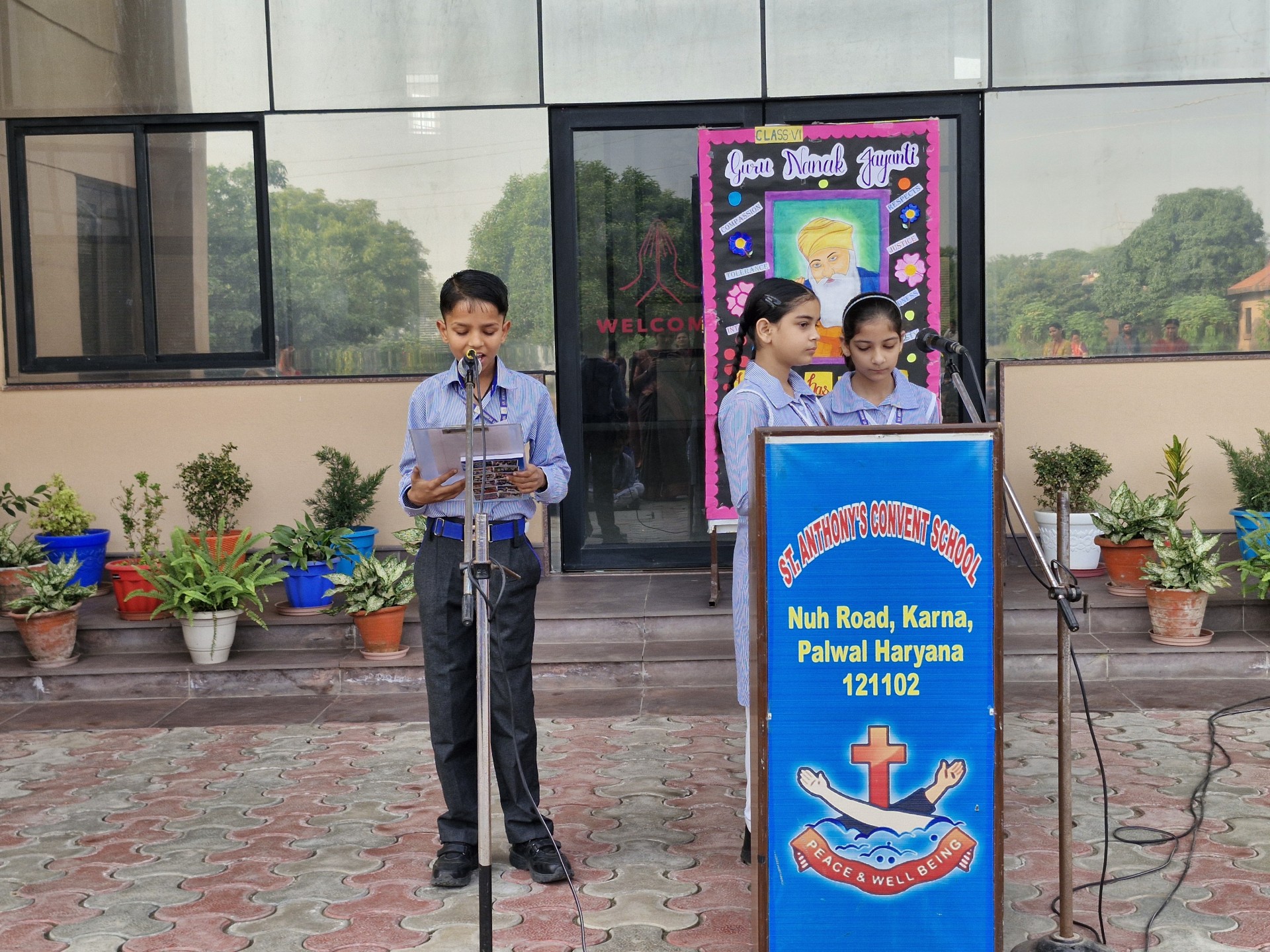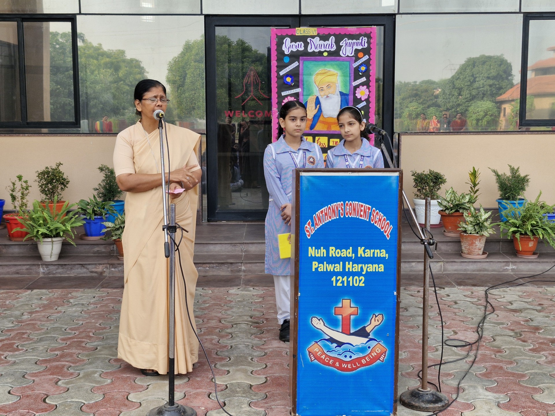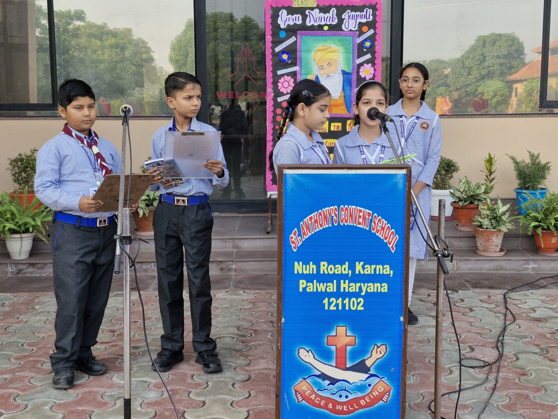 Description: Report on Guru Nanak Jayanti Celebration Date: 4th November 2025 Venue: School Assembly Ground Organized by: Class VI-B A special assembly was organized by Class VI-B on 4th November 2025 to celebrate the auspicious occasion of Guru Nanak Jayanti the birth anniversary of Guru Nanak Dev Ji the first Sikh Guru and founder of Sikhism. The program began with a warm introduction highlighting the teachings and life of Guru Nanak Dev Ji emphasizing the values of truth equality and service to humanity. This was followed by a poem recited by the students expressing devotion and gratitude towards the great Guru. A speech was delivered by a student shedding light on Guru Nanak Dev Jis message of peace harmony and brotherhood. The assembly also featured a graceful dance performance dedicated to the divine teachings of Guru Nanak Dev Ji which filled the atmosphere with devotion and joy. The program concluded with an inspirational message by Principal Sr. Abha who encouraged the students to follow the noble path shown by Guru Nanak Dev Ji and to live a life of kindness and humility. The celebration was a beautiful reminder of the eternal values of love and service to mankind leaving everyone with a sense of peace and spiritualenrichment.