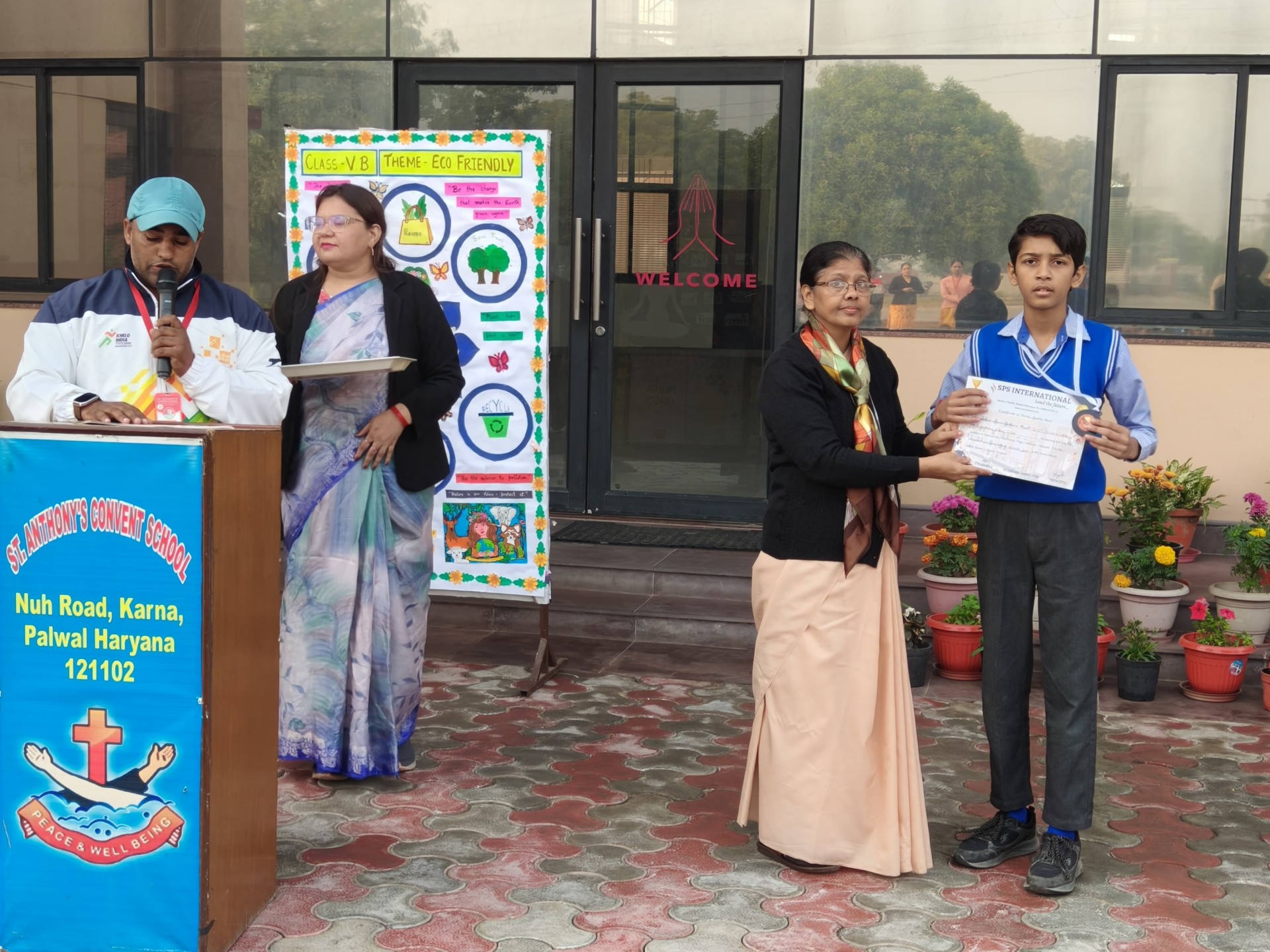 Description: 4th Inter School Sports Meet SPS International School Palwal . On 17 To 19 November2025. The 4th Inter School Sports Meet was hosted by SPS International School Palwal. 115 schools and approximately 3000 athletes took part. Our St.Anthonys Convent School participated in Athletes teams in the Under 14 Under 17 and Under 19 categories for both boys and girls and performed commendably. Medal Highlights - Srishti Dagar Bronze 100m (U17 girls) - Relay (Srishti Dagar Tanisha Varsha Nilakshi) Bronze 4-100m (U17 girls) - Rachit Silver 100m (U17 boys) - Rachit Silver Long Jump (U17 boys) - Gaurav Kumar Gold Long Jump (U19 boys) - Relay (Rachit Nishant Neer Kundu Manit) Bronze 4-100m (U17 boys) Participants Shagun Harshit Lakshay Jahul Jatin. Overall Performance The team Won 1 Gold 2 Silver and 9 Bronze medals demonstrating strong skill and sportsmanship across all categories. Acknowledgements A Special thanks the Participants of St. Anthonys Convent School Karna Palwal the Principal Sister Abha teachers parents for their encouragement and cooperation. Congratulations to all medalists and participants for representing St. Anthonys Convent School with pride.