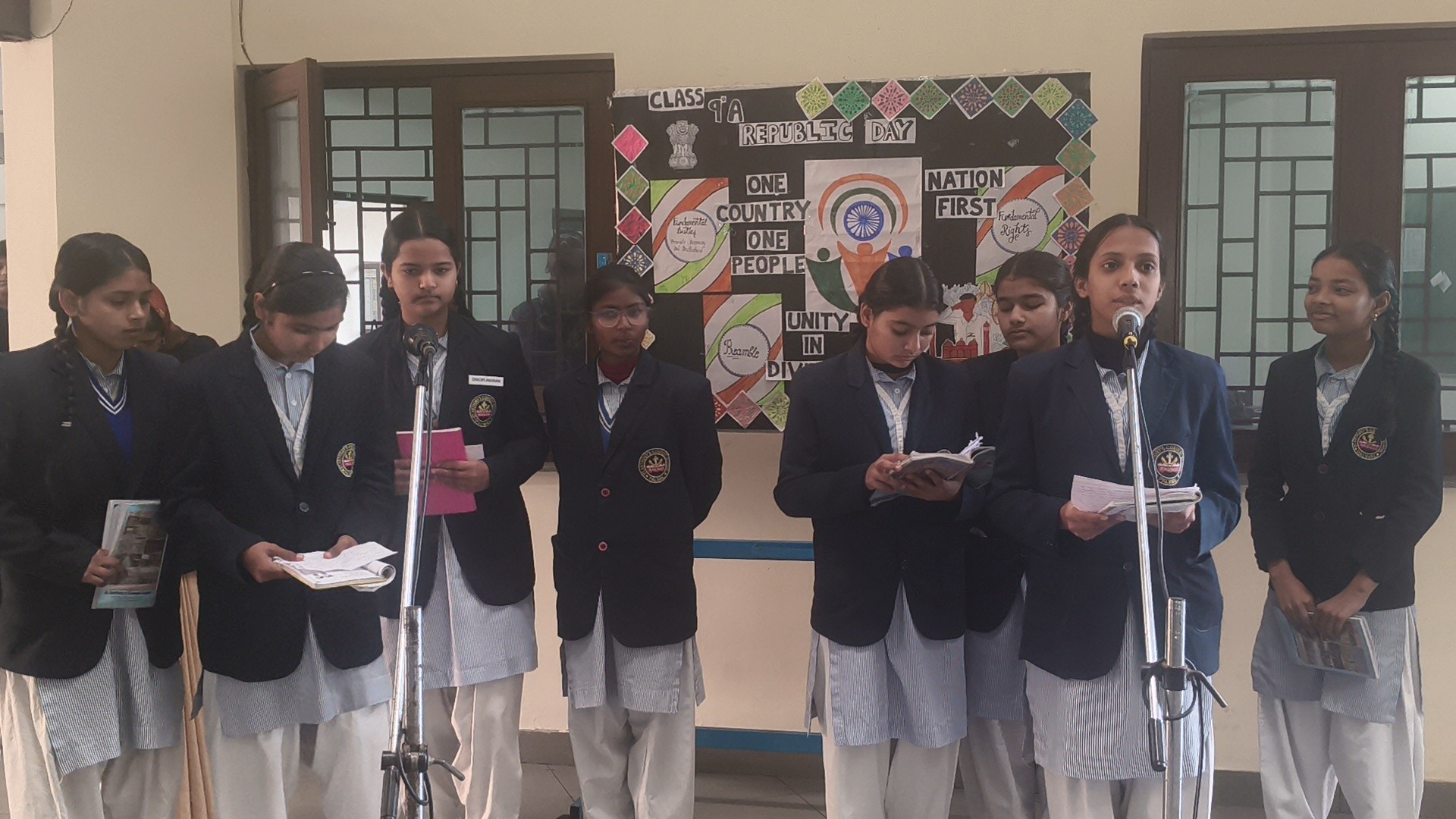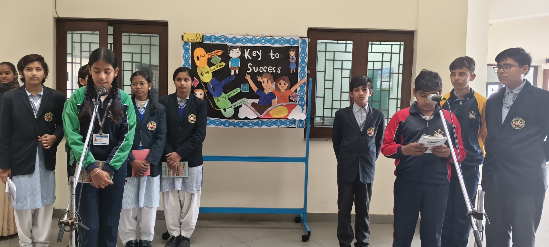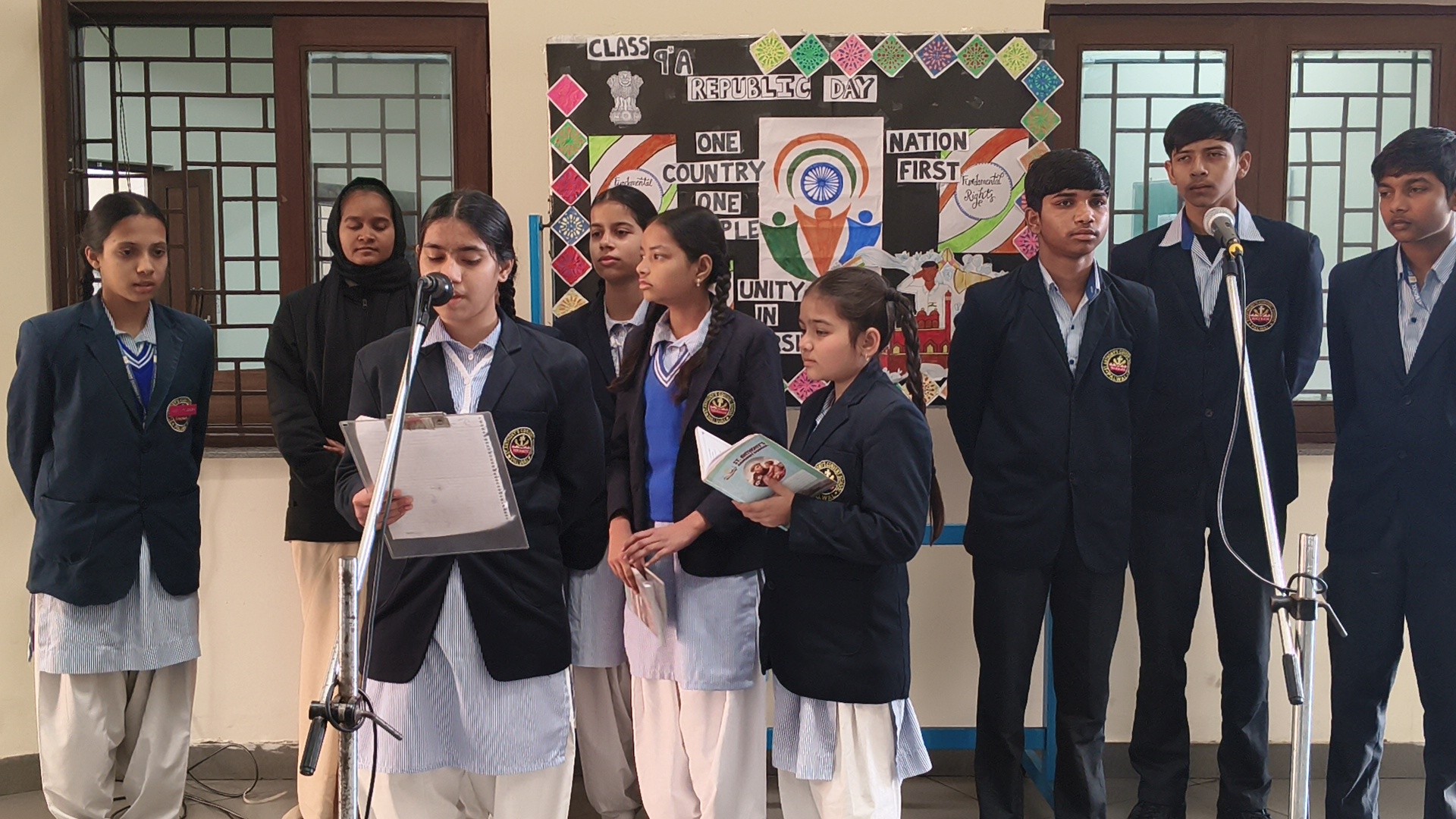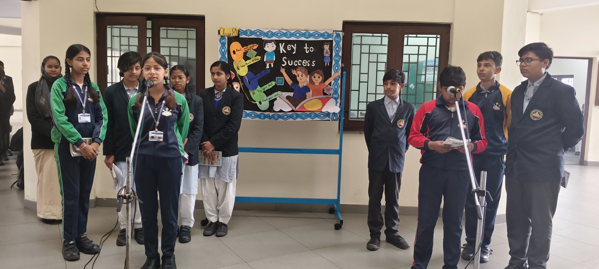 Description: School Assembly Report The school assembly was conducted successfully by different classes on meaningful themes. Class 9th A and 9th B presented a wonderful assembly on the topic One Country One People Republic Day. Students highlighted the importance of unity equality and patriotism. The presentation included speeches and patriotic thoughts that reminded everyone about the values of our Constitution. Class 8th A conducted the assembly on the topic Key to Success. Students explained that hard work determination and positive thinking are essential to achieve success in life. Class 8th B presented their assembly on Consistency and Preparation. They emphasized that regular practice and proper preparation lead to great achievements. All the assemblies were informative inspiring and well appreciated by the Principal and teachers.