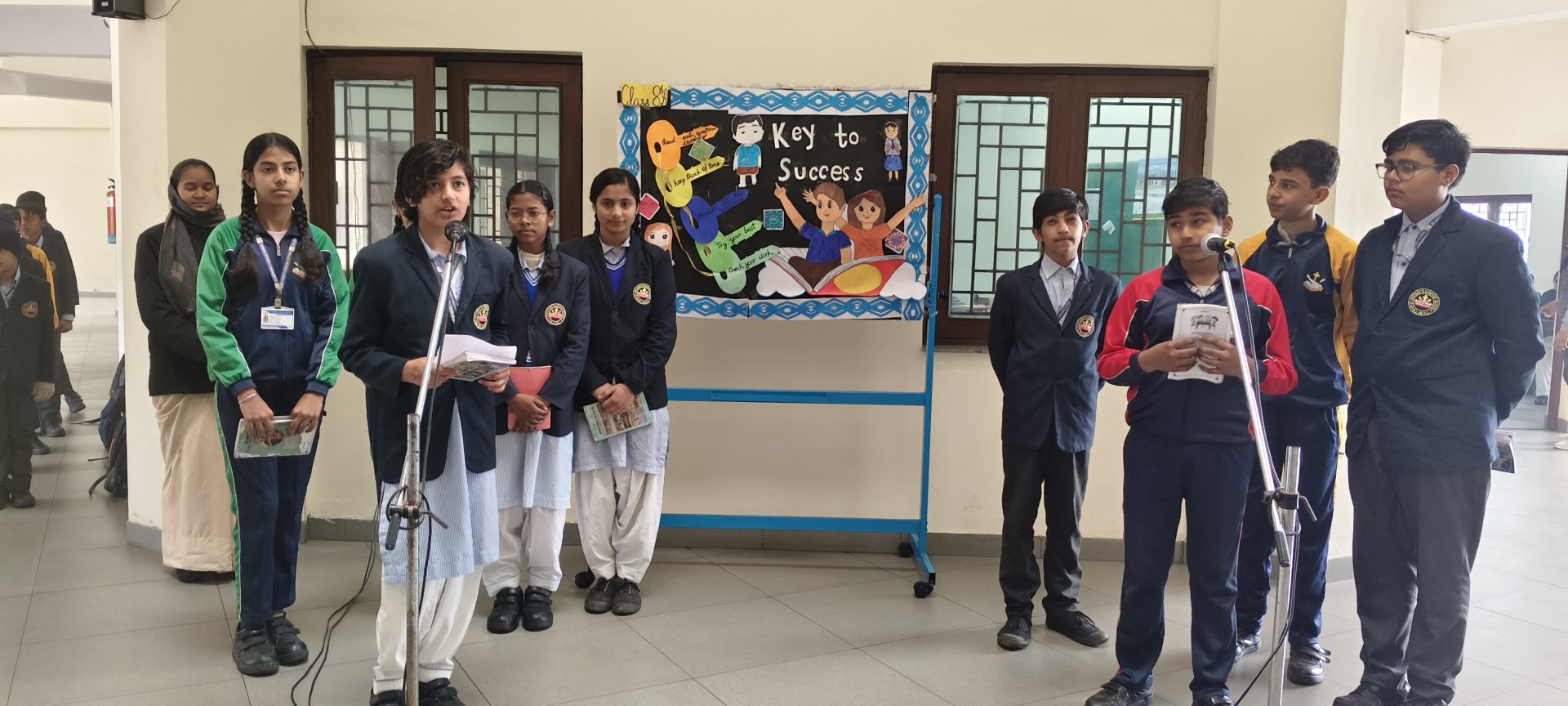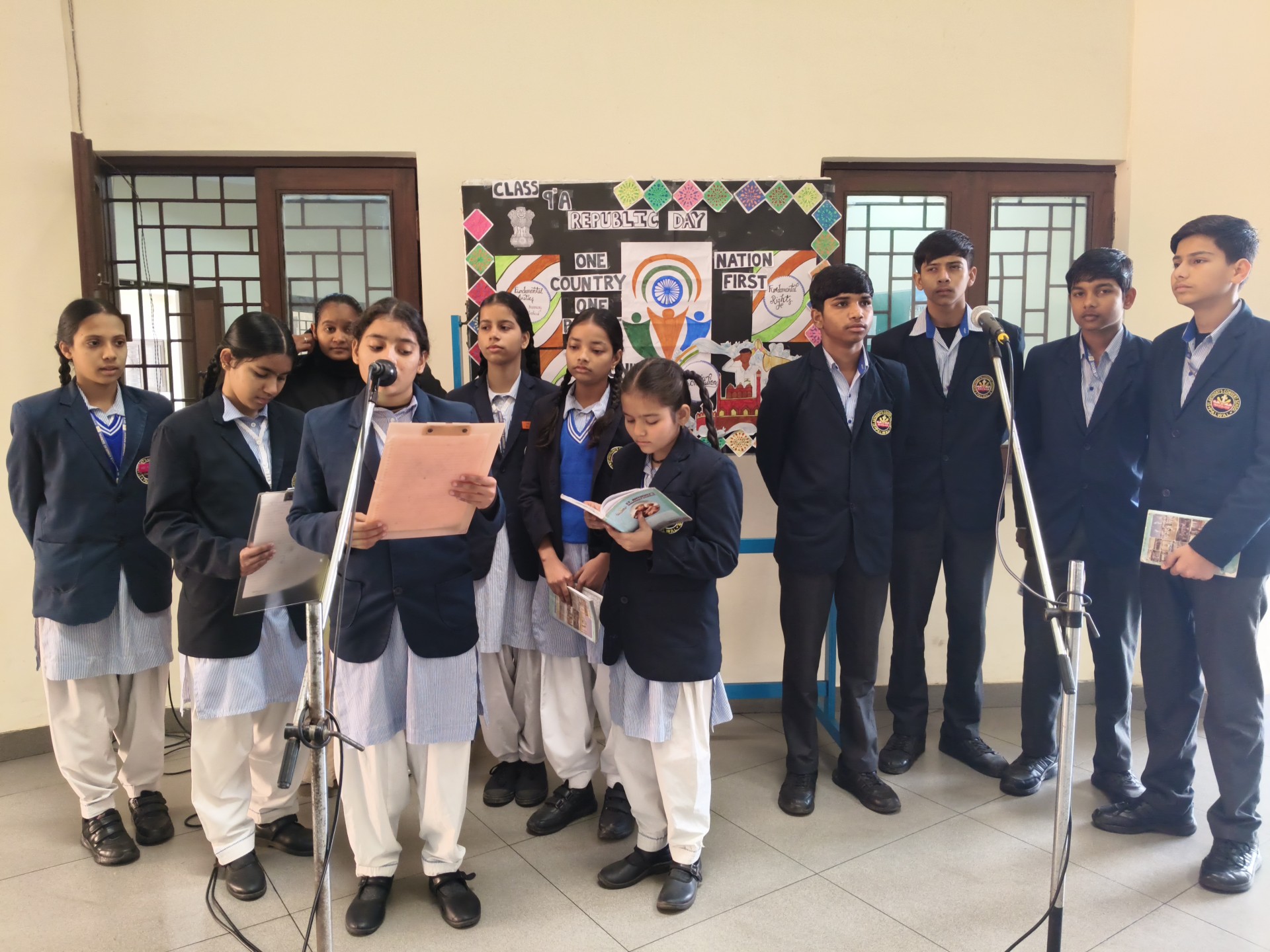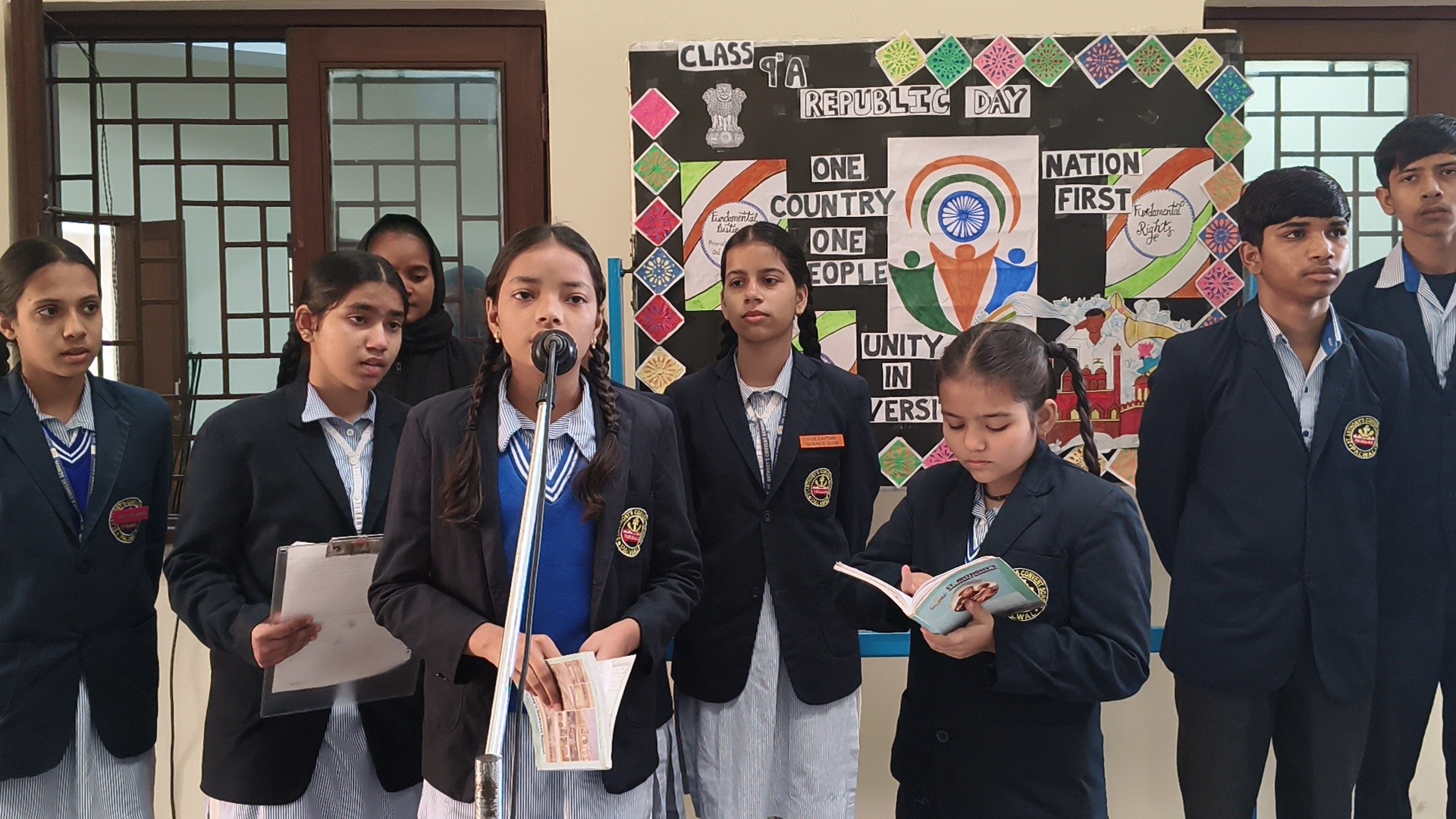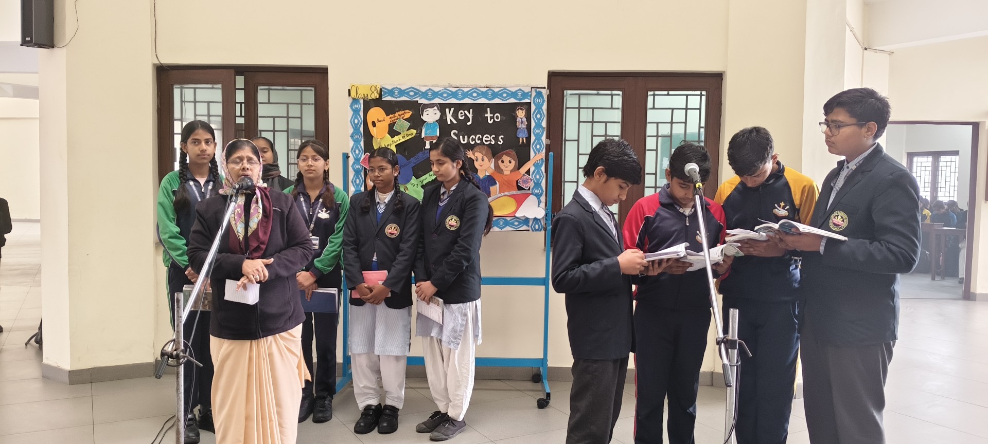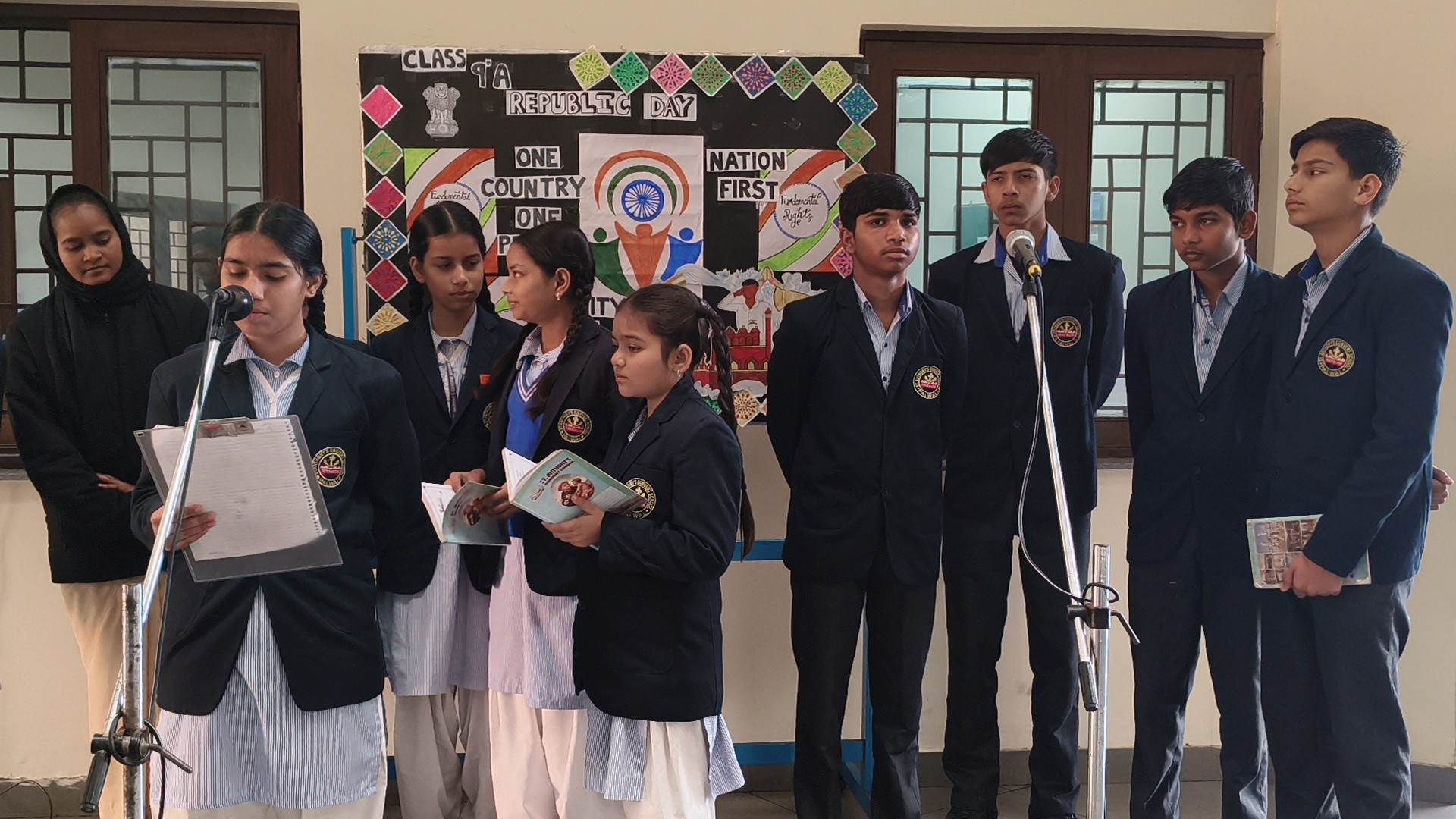 Description: School Assembly Report The school assembly was conducted successfully by different classes on meaningful themes. Class 9th A and 9th B presented a wonderful assembly on the topic One Country One People Republic Day. Students highlighted the importance of unity equality and patriotism. The presentation included speeches and patriotic thoughts that reminded everyone about the values of our Constitution. Class 8th A conducted the assembly on the topic Key to Success. Students explained that hard work determination and positive thinking are essential to achieve success in life. Class 8th B presented their assembly on Consistency and Preparation. They emphasized that regular practice and proper preparation lead to great achievements. All the assemblies were informative inspiring and well appreciated by the Principal and teachers.