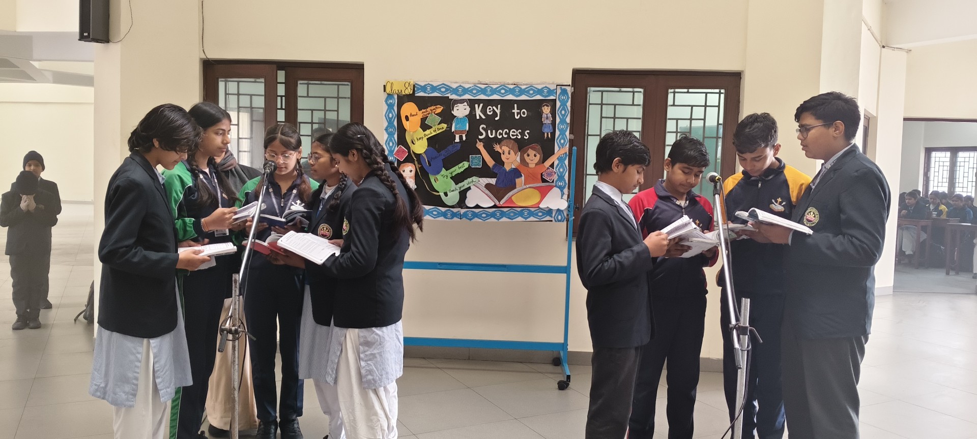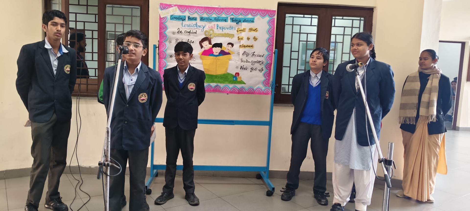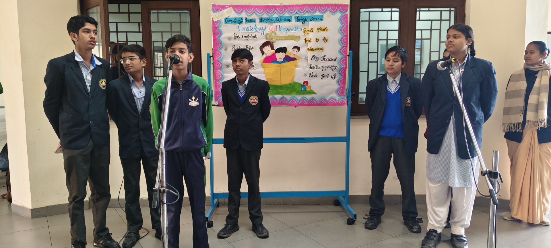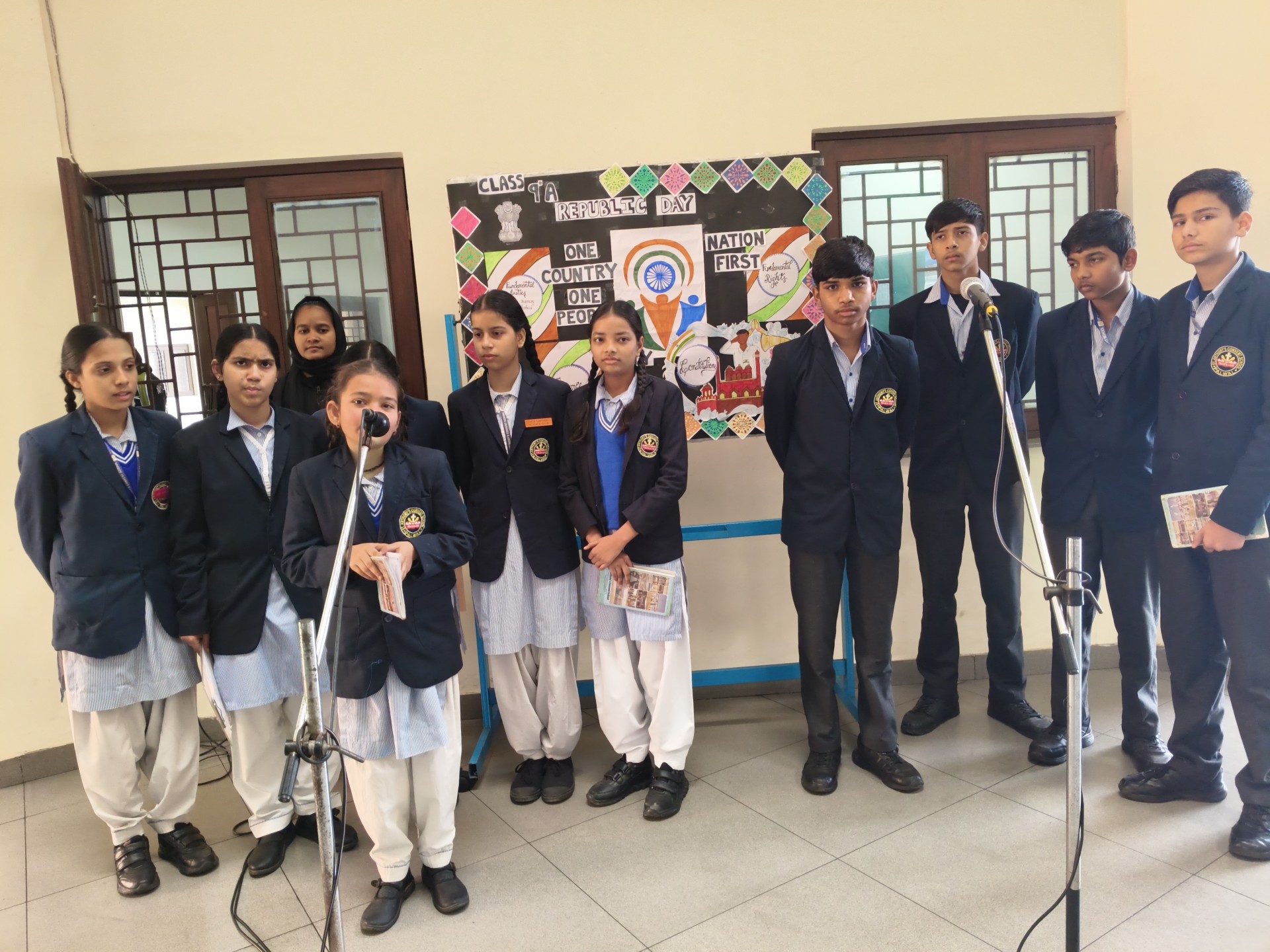 Description: School Assembly Report The school assembly was conducted successfully by different classes on meaningful themes. Class 9th A and 9th B presented a wonderful assembly on the topic One Country One People Republic Day. Students highlighted the importance of unity equality and patriotism. The presentation included speeches and patriotic thoughts that reminded everyone about the values of our Constitution. Class 8th A conducted the assembly on the topic Key to Success. Students explained that hard work determination and positive thinking are essential to achieve success in life. Class 8th B presented their assembly on Consistency and Preparation. They emphasized that regular practice and proper preparation lead to great achievements. All the assemblies were informative inspiring and well appreciated by the Principal and teachers.