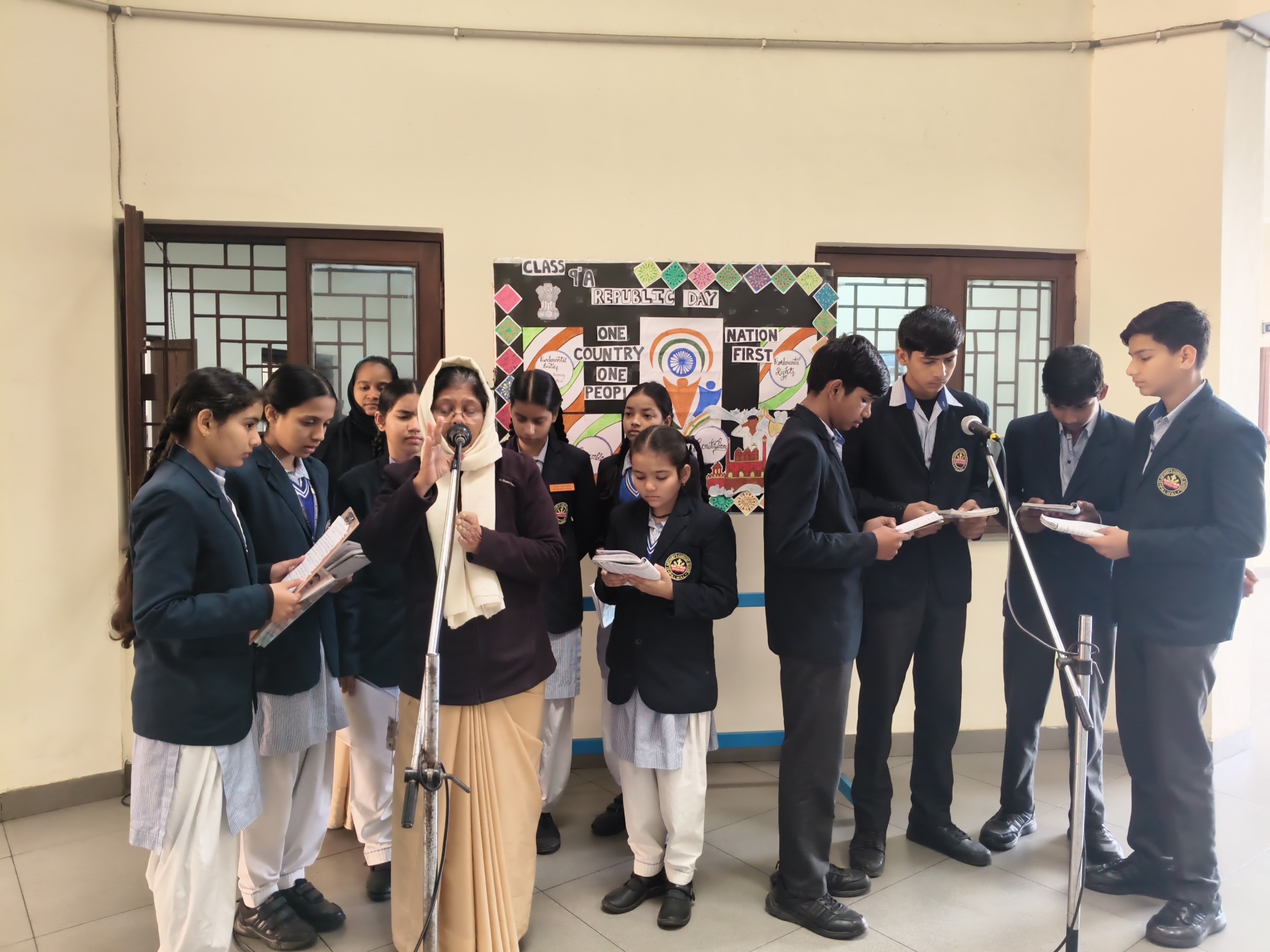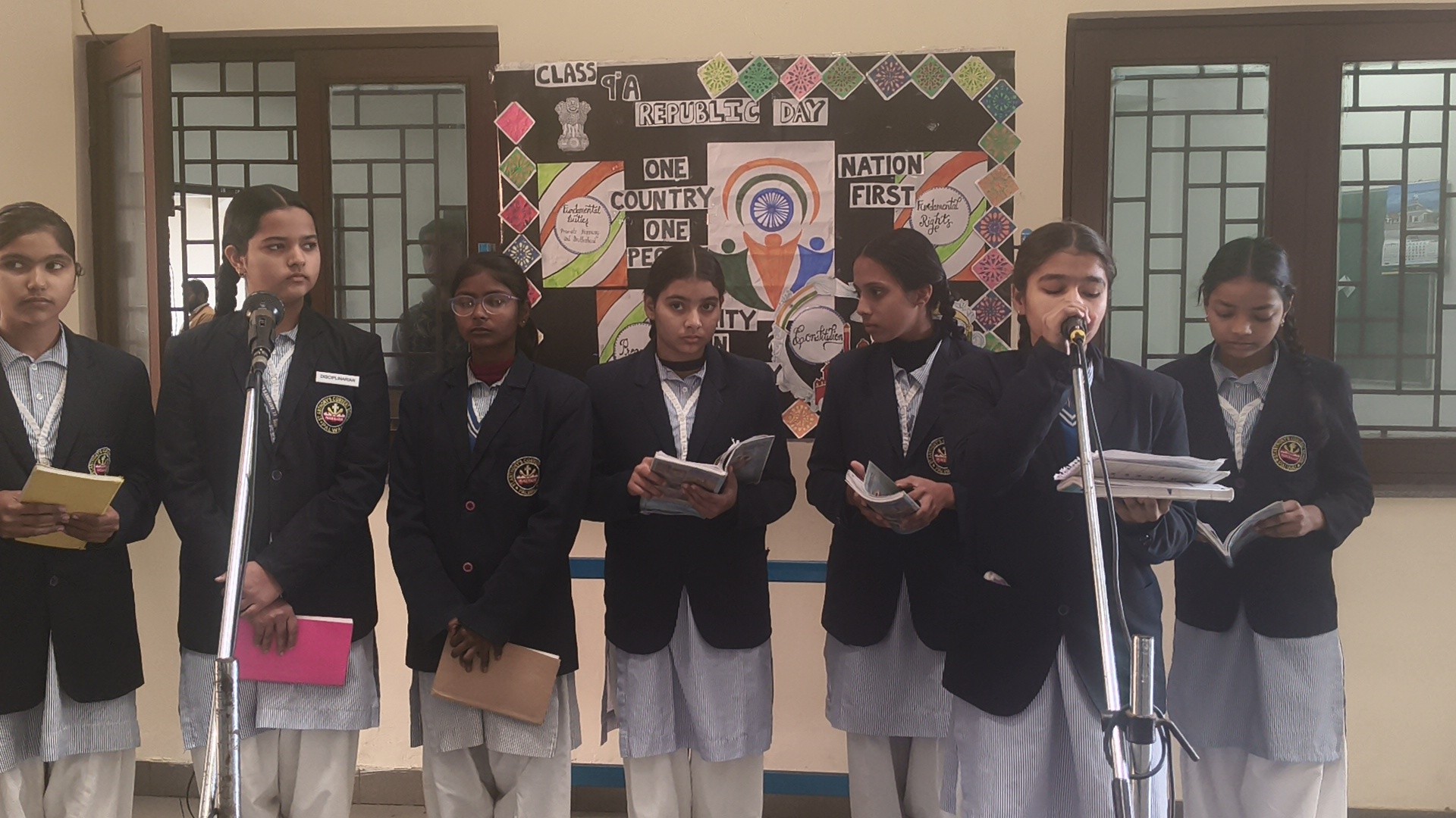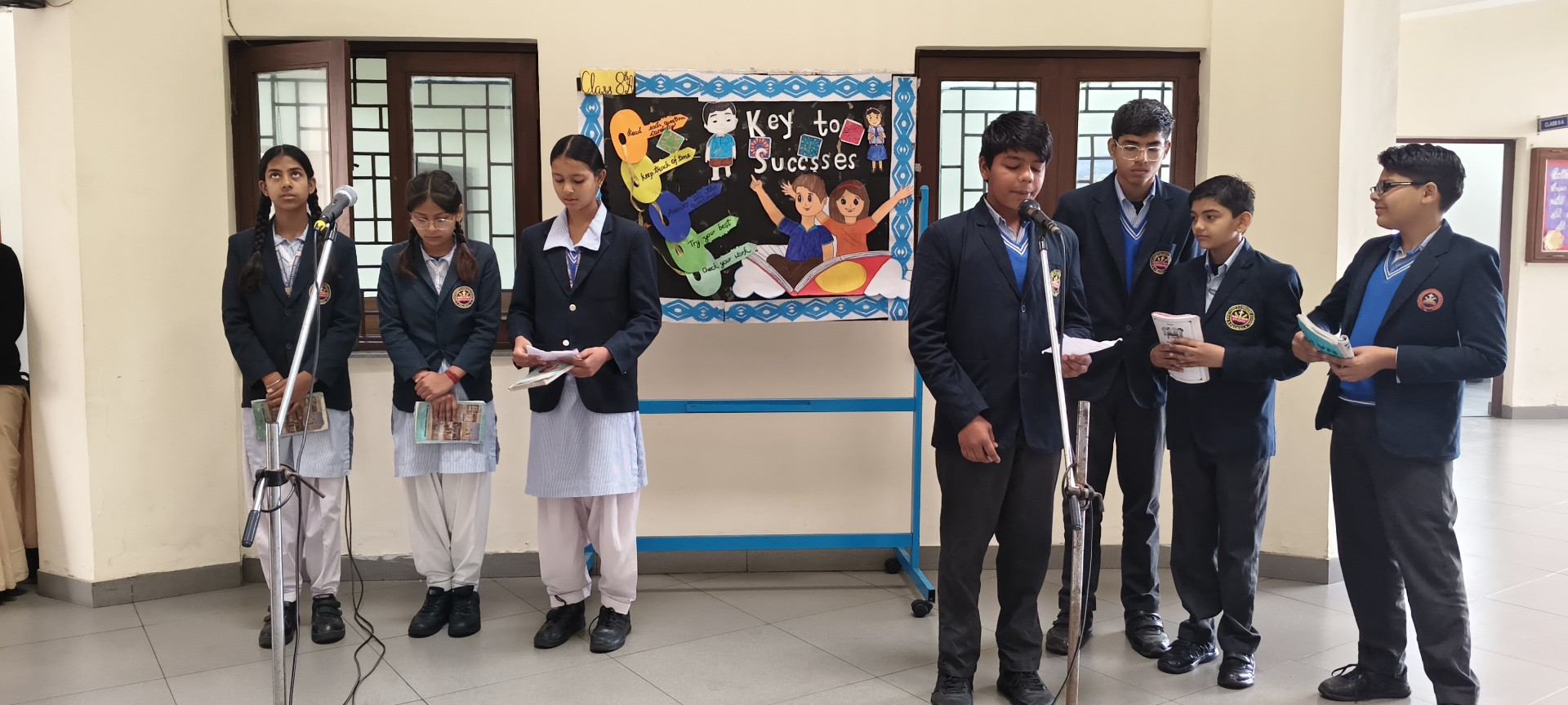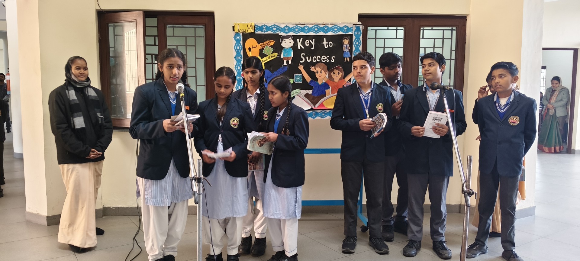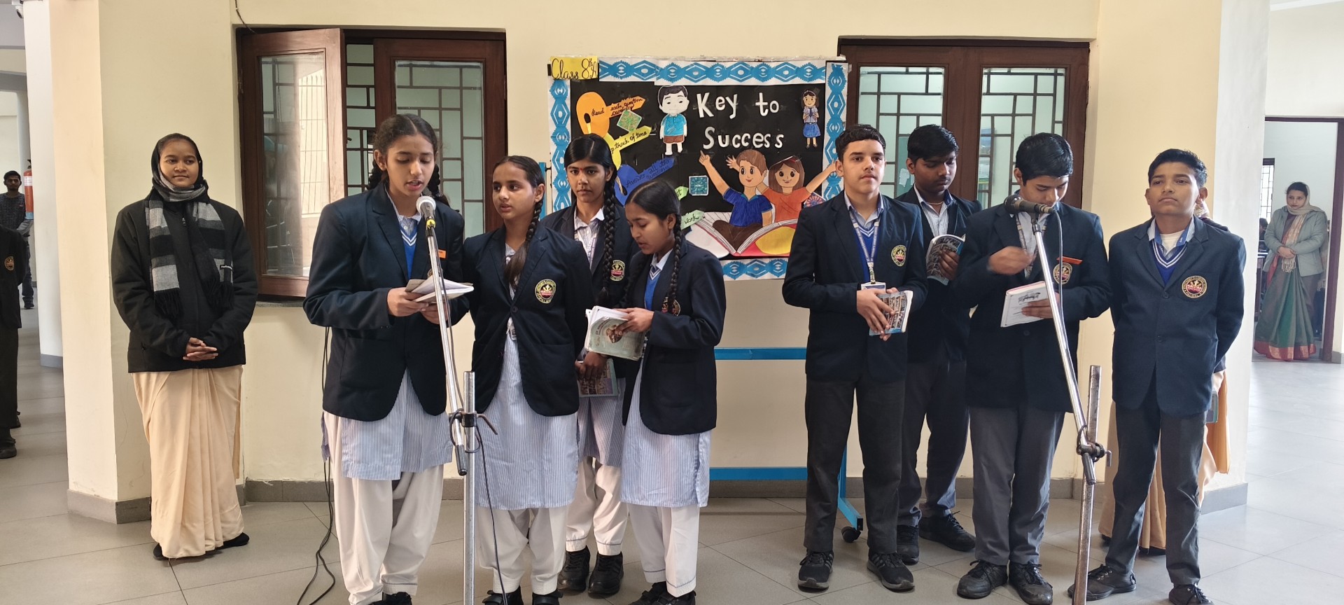Description: School Assembly Report The school assembly was conducted successfully by different classes on meaningful themes. Class 9th A and 9th B presented a wonderful assembly on the topic One Country One People Republic Day. Students highlighted the importance of unity equality and patriotism. The presentation included speeches and patriotic thoughts that reminded everyone about the values of our Constitution. Class 8th A conducted the assembly on the topic Key to Success. Students explained that hard work determination and positive thinking are essential to achieve success in life. Class 8th B presented their assembly on Consistency and Preparation. They emphasized that regular practice and proper preparation lead to great achievements. All the assemblies were informative inspiring and well appreciated by the Principal and teachers.