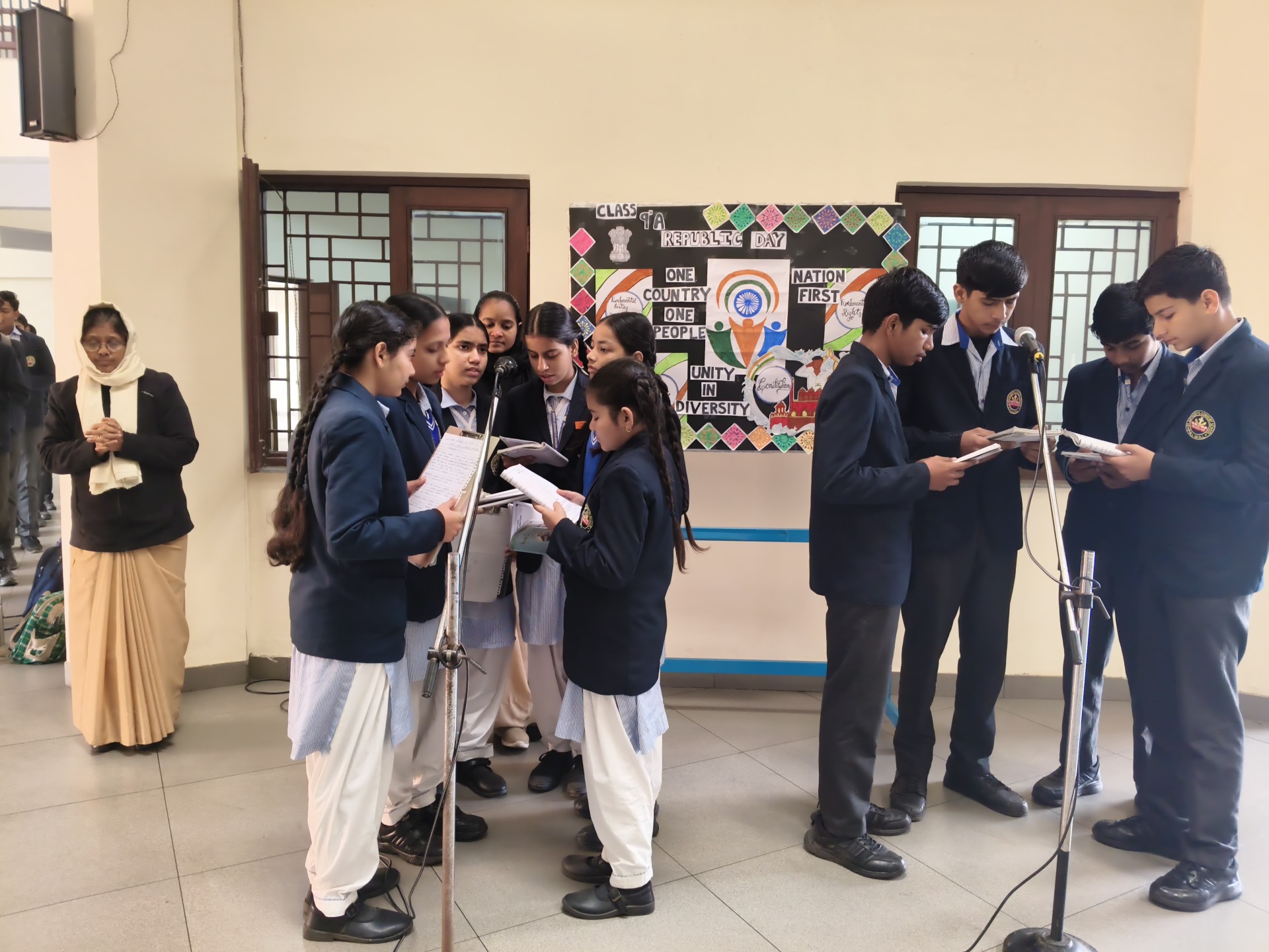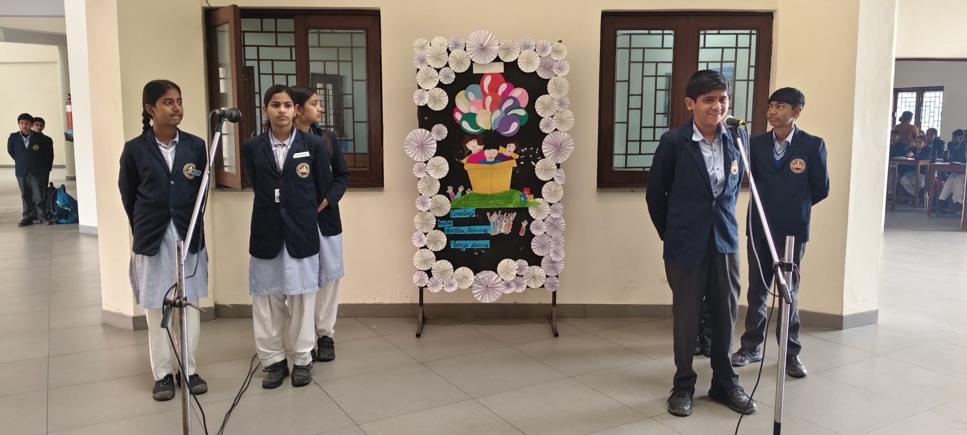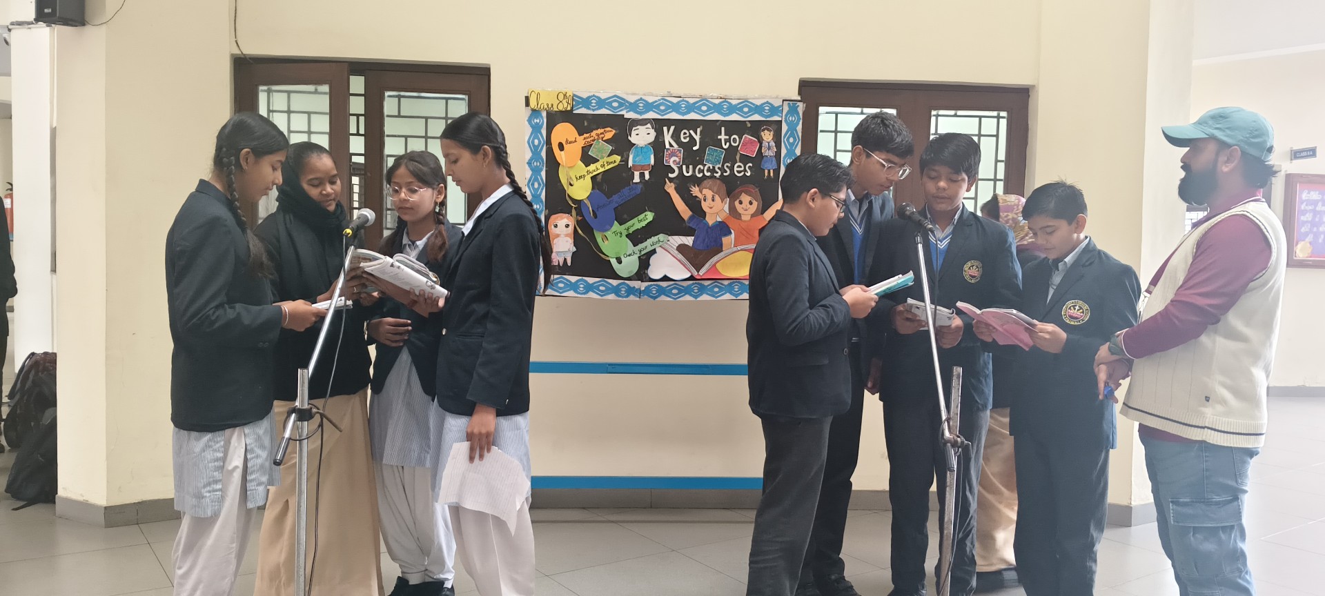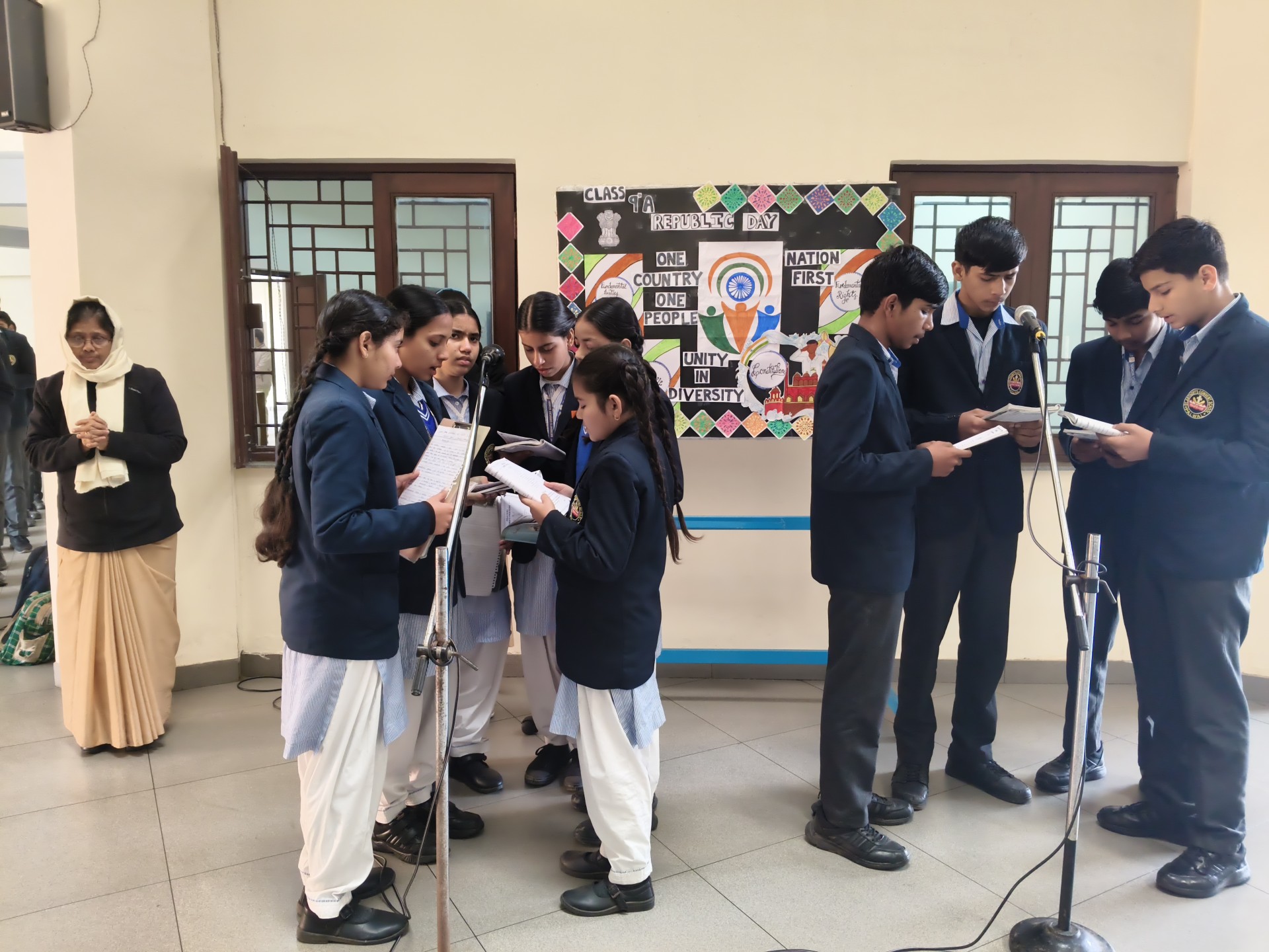 Description: School Assembly Report The school assembly was conducted successfully by different classes on meaningful themes. Class 9th A and 9th B presented a wonderful assembly on the topic One Country One People Republic Day. Students highlighted the importance of unity equality and patriotism. The presentation included speeches and patriotic thoughts that reminded everyone about the values of our Constitution. Class 8th A conducted the assembly on the topic Key to Success. Students explained that hard work determination and positive thinking are essential to achieve success in life. Class 8th B presented their assembly on Consistency and Preparation. They emphasized that regular practice and proper preparation lead to great achievements. All the assemblies were informative inspiring and well appreciated by the Principal and teachers.